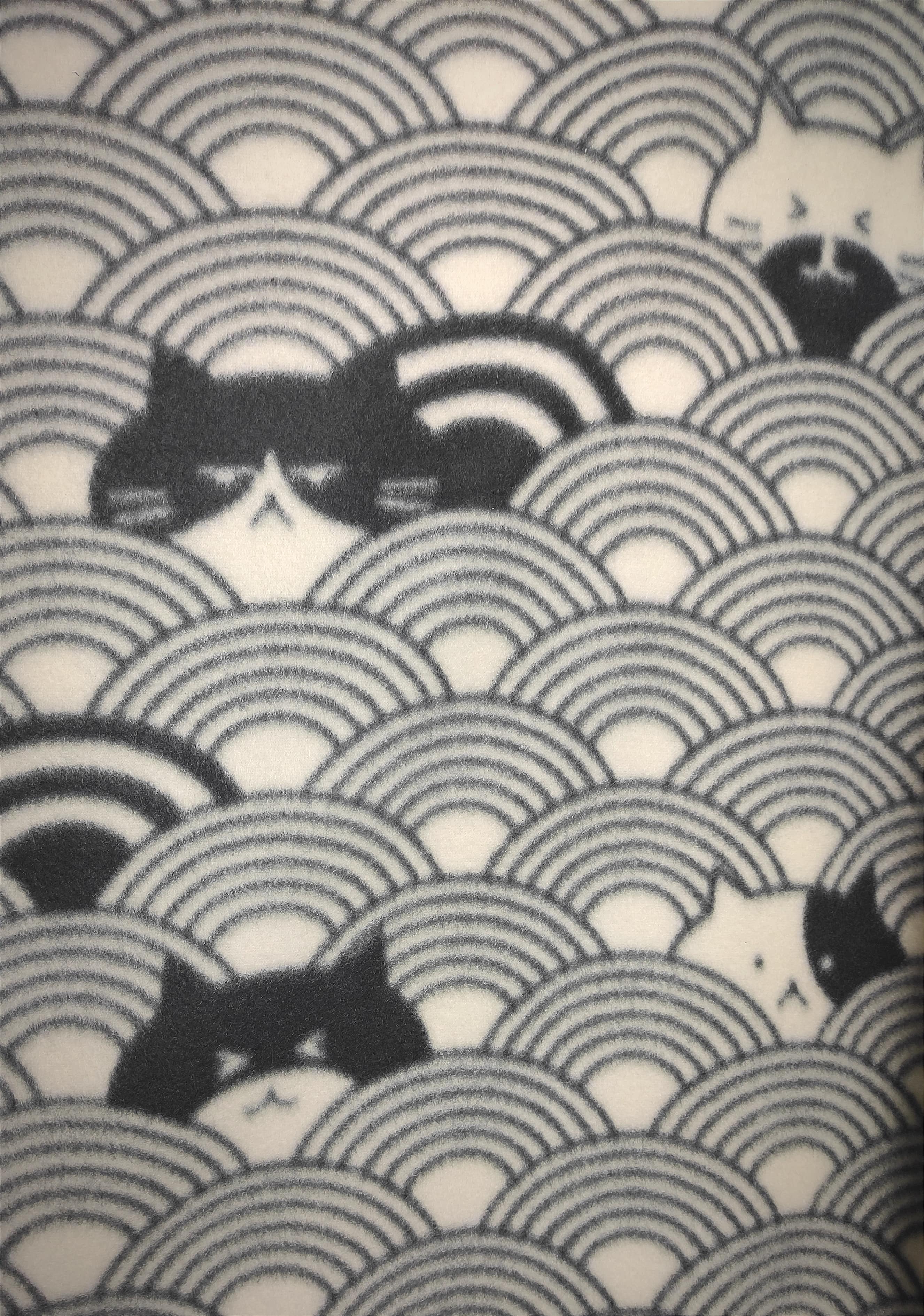 This is a soft medium weight stretchy fleece with cats rising from the circle design. Your choice of black trim or the same trim as the body. Patterns will vary.