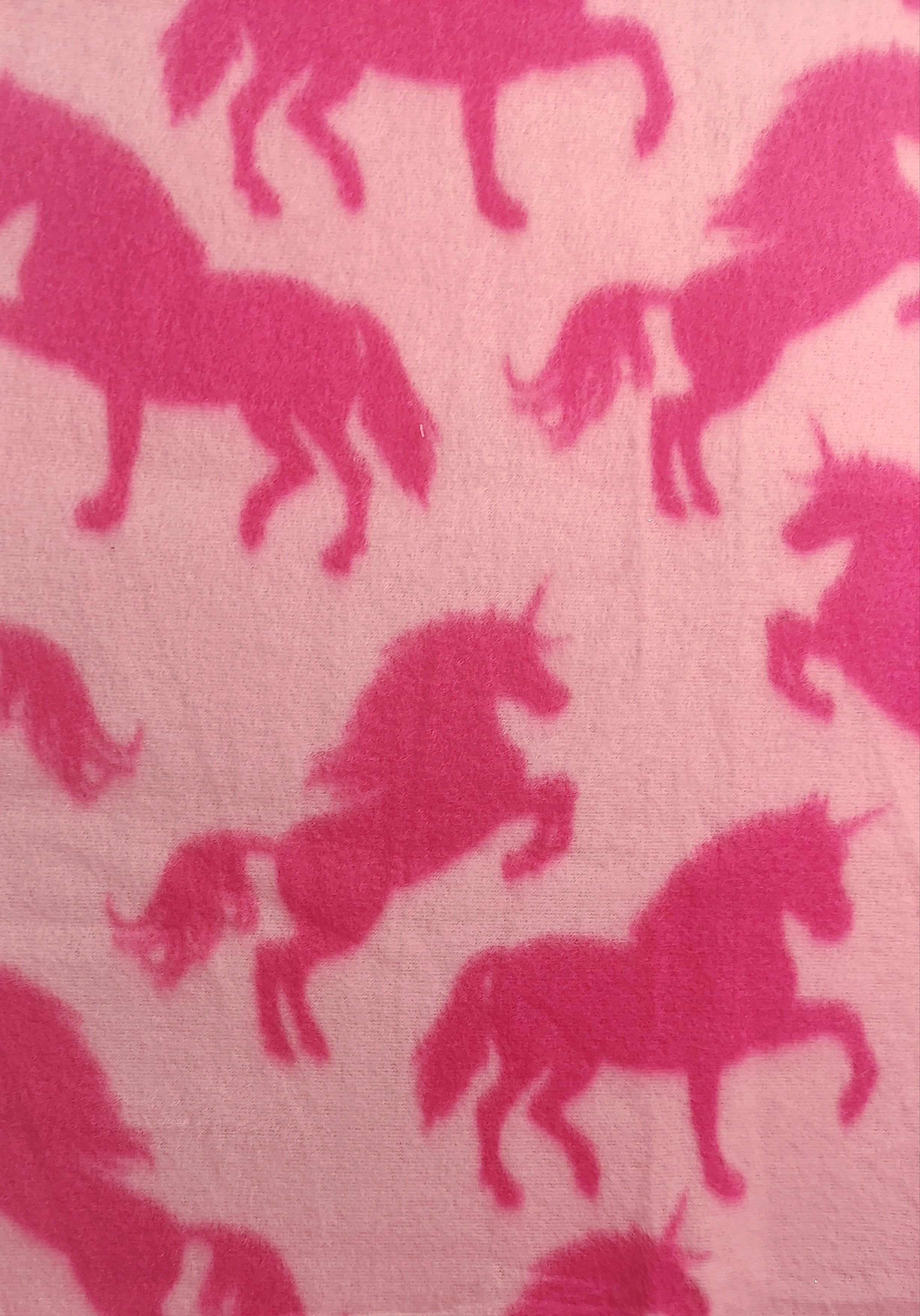 This is a soft lightweight stretchy fleece with bright pink unicorns on light pink background.