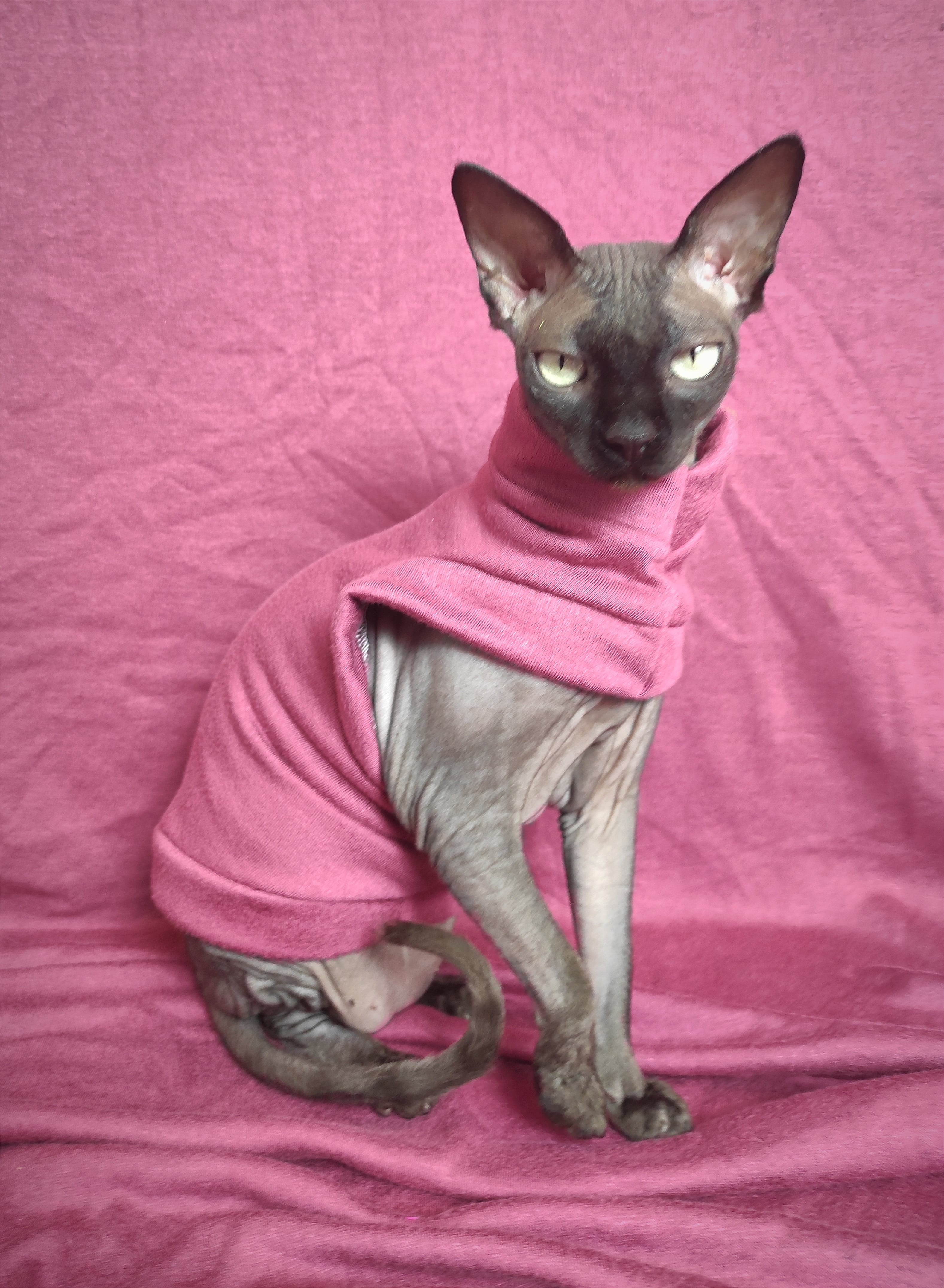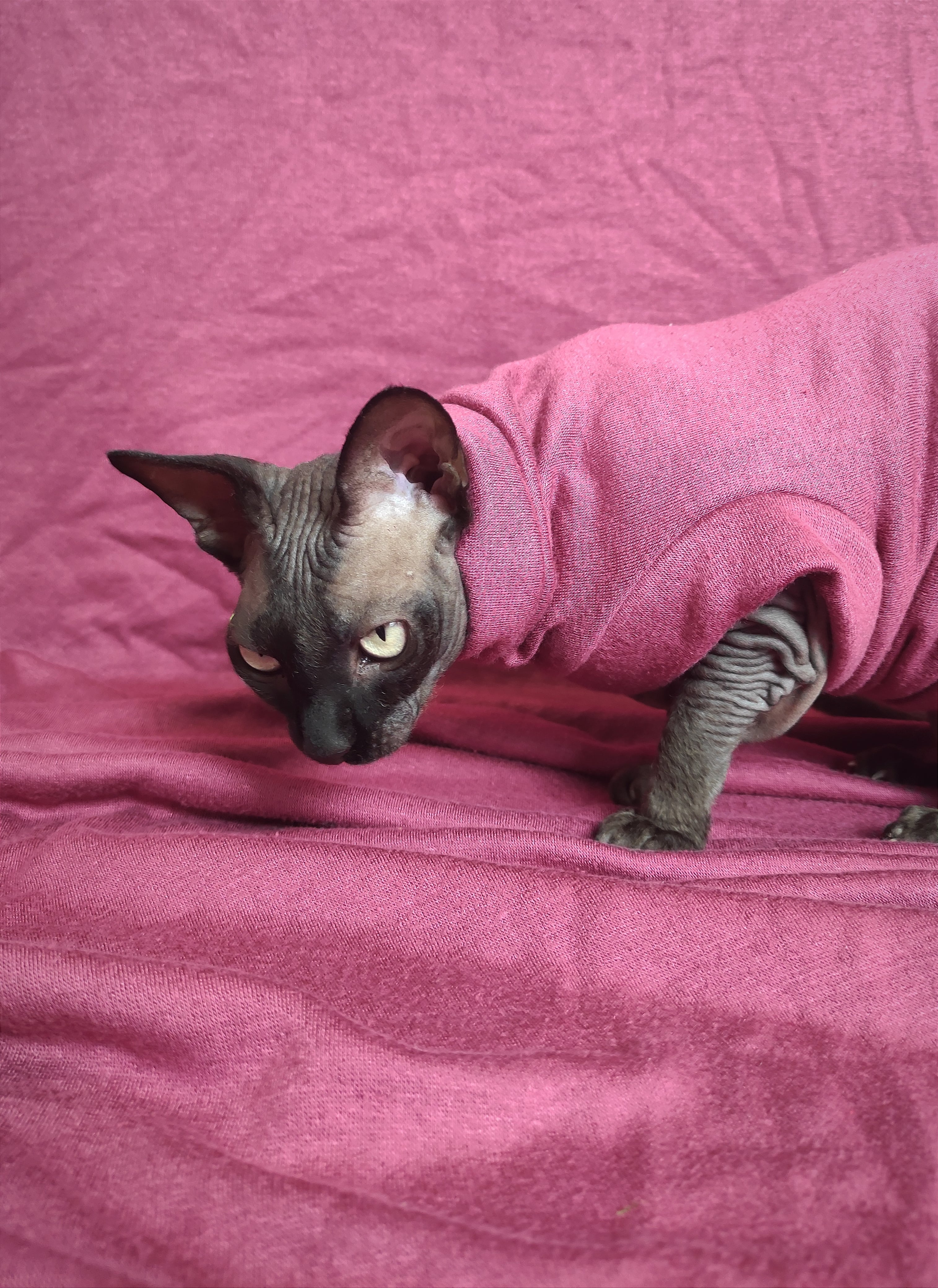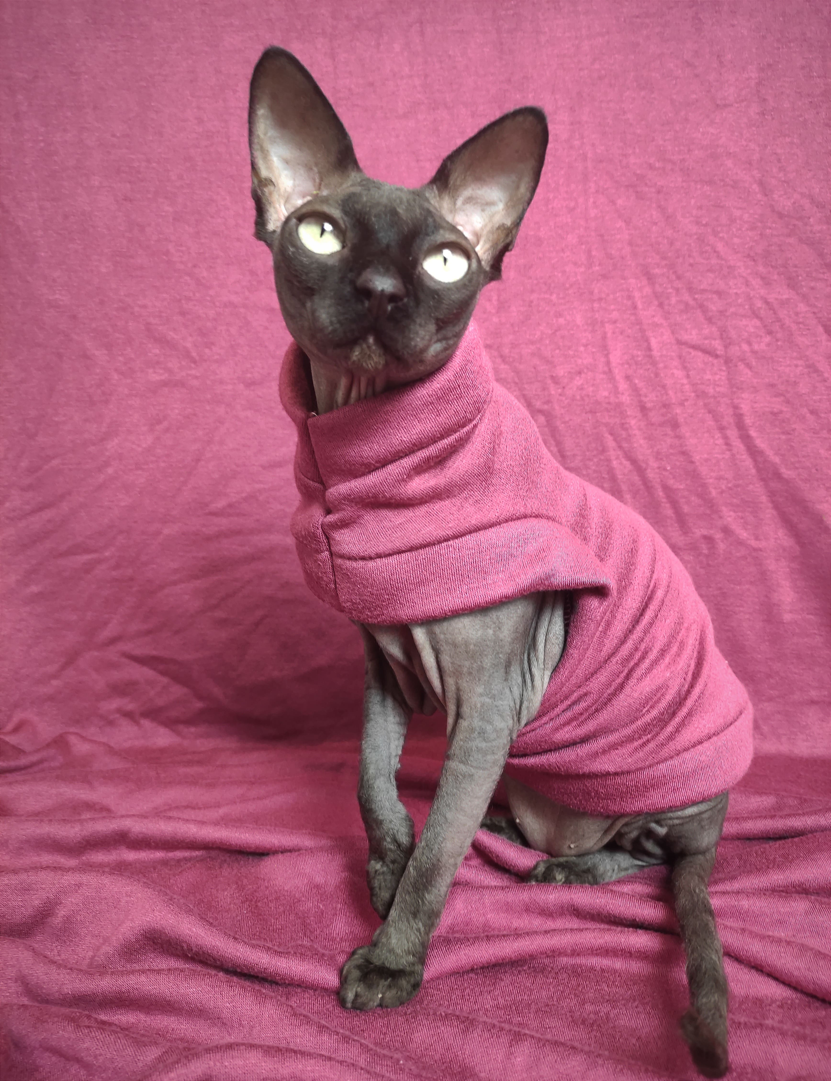 REGULAR size is for most adult hairless cats age 1 to 18. BAMBINO size fits hairless kittens age 6 months to 1 year and smaller adult cats. ANKLE BITER size fits kittens 15 weeks to 6 month olds. LIL NIPPER size fits hairless kittens age 8 weeks to 15 week olds for when they are with the breeder or for the trip home. Custom orders are welcome for larger and smaller cats - pricing is the same - $27.50