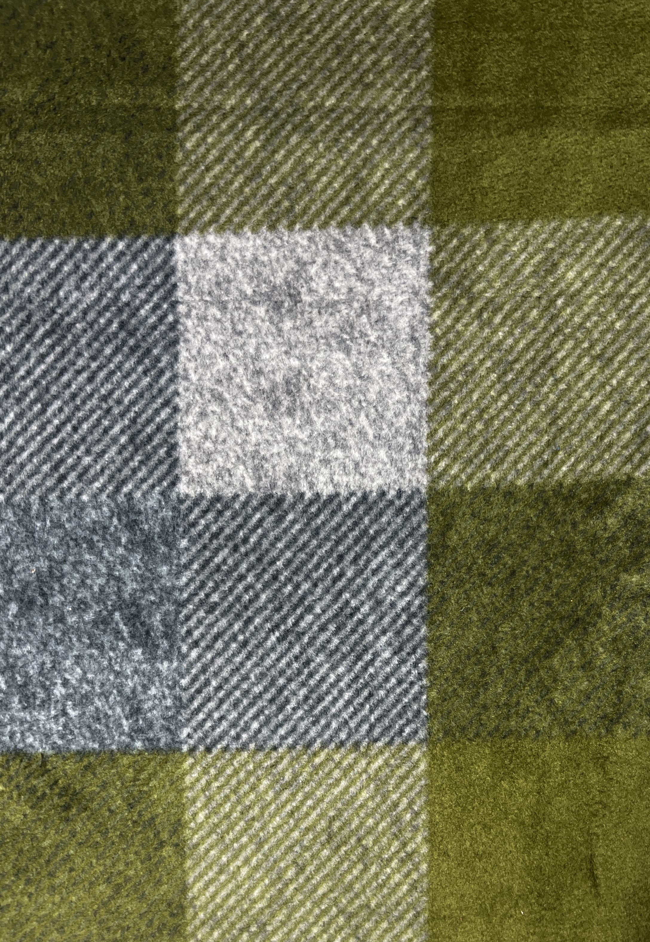 This is a soft heavyweight stretchy luxe fleece with green, grey and white plaid pattern. Print is large and designs will be random.