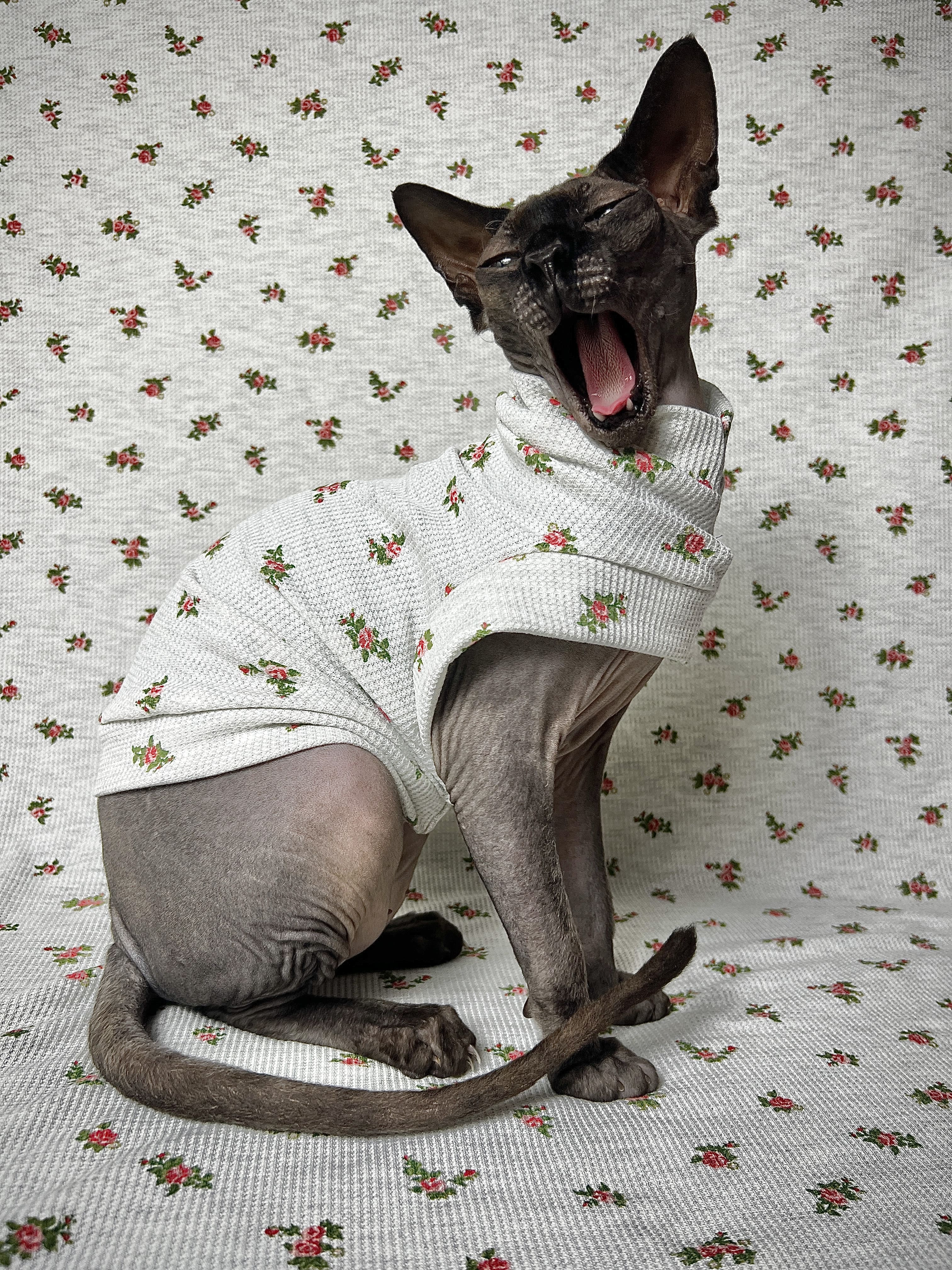 REGULAR size is for most adult hairless cats age 1 to 18. BAMBINO size fits hairless kittens age 6 months to 1 year and smaller adult cats. ANKLE BITER size fits hairless kittens 15 week to 6 month olds. LIL NIPPER size fits hairless kittens age 8 weeks to 15 week olds for when they are with the breeder or for the trip home. Custom orders are welcome for larger and smaller cats - pricing is the same - $27.50