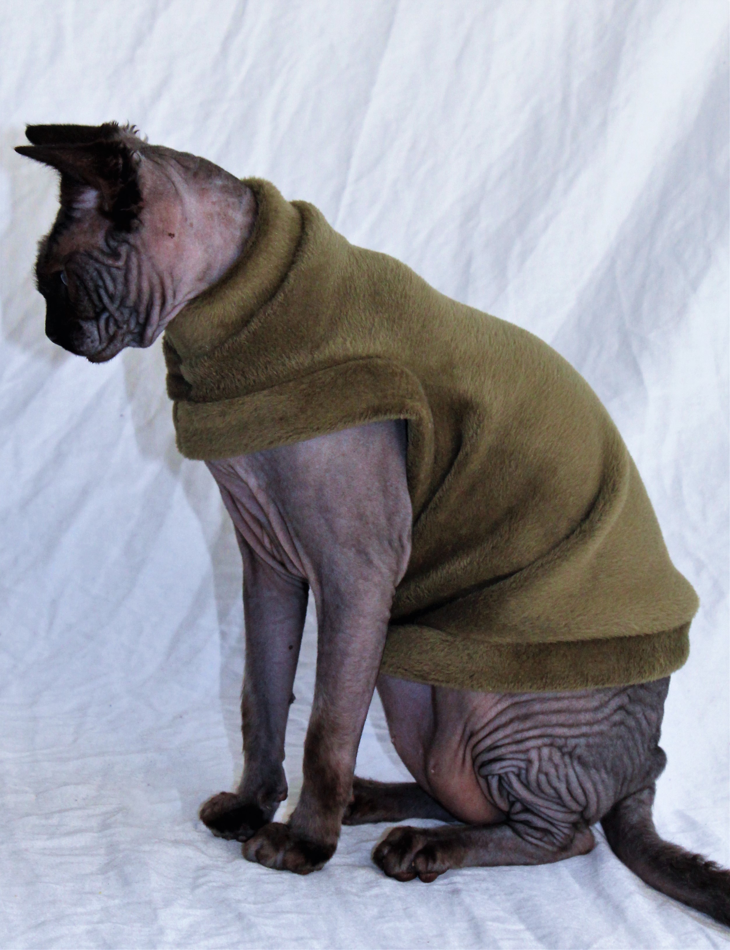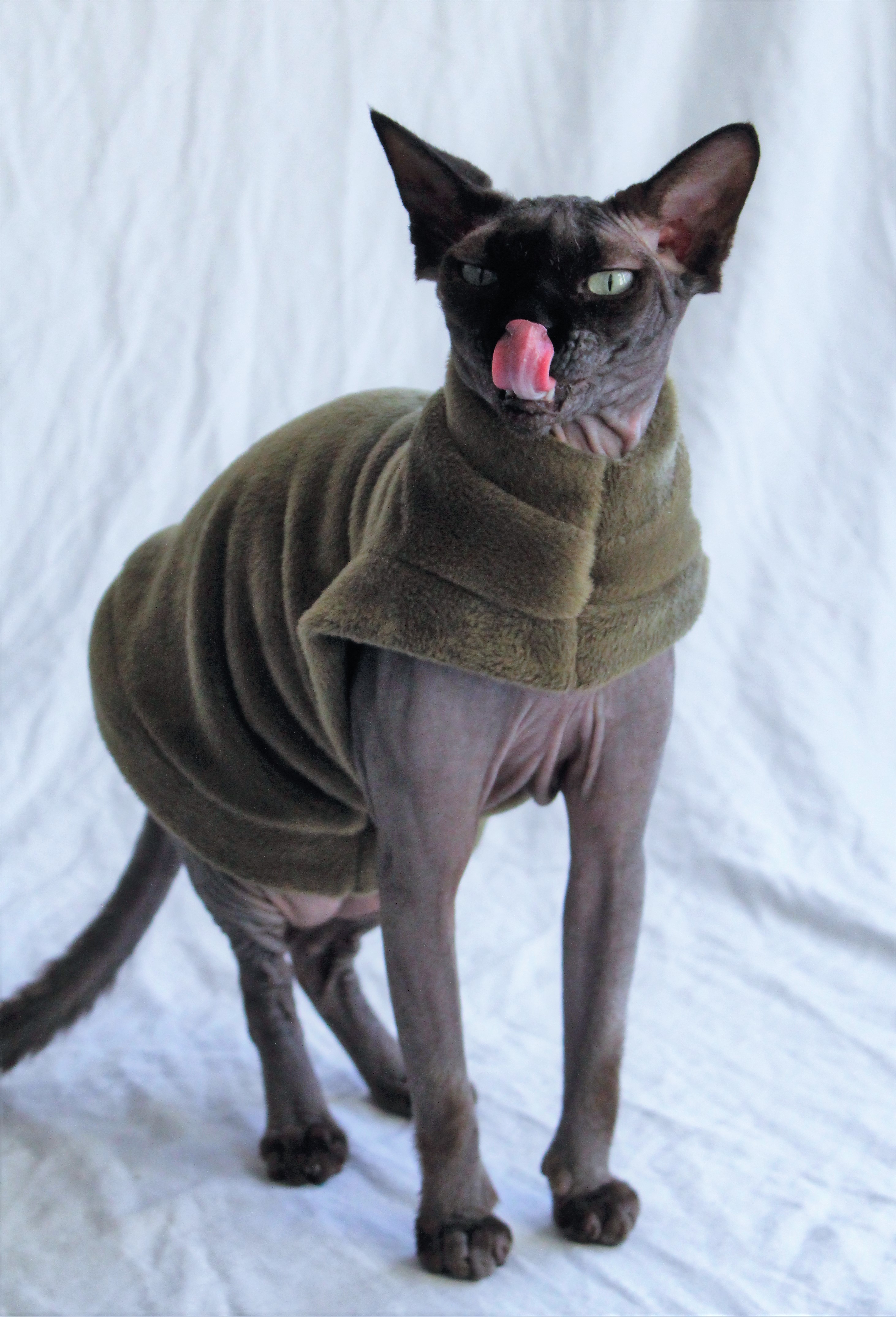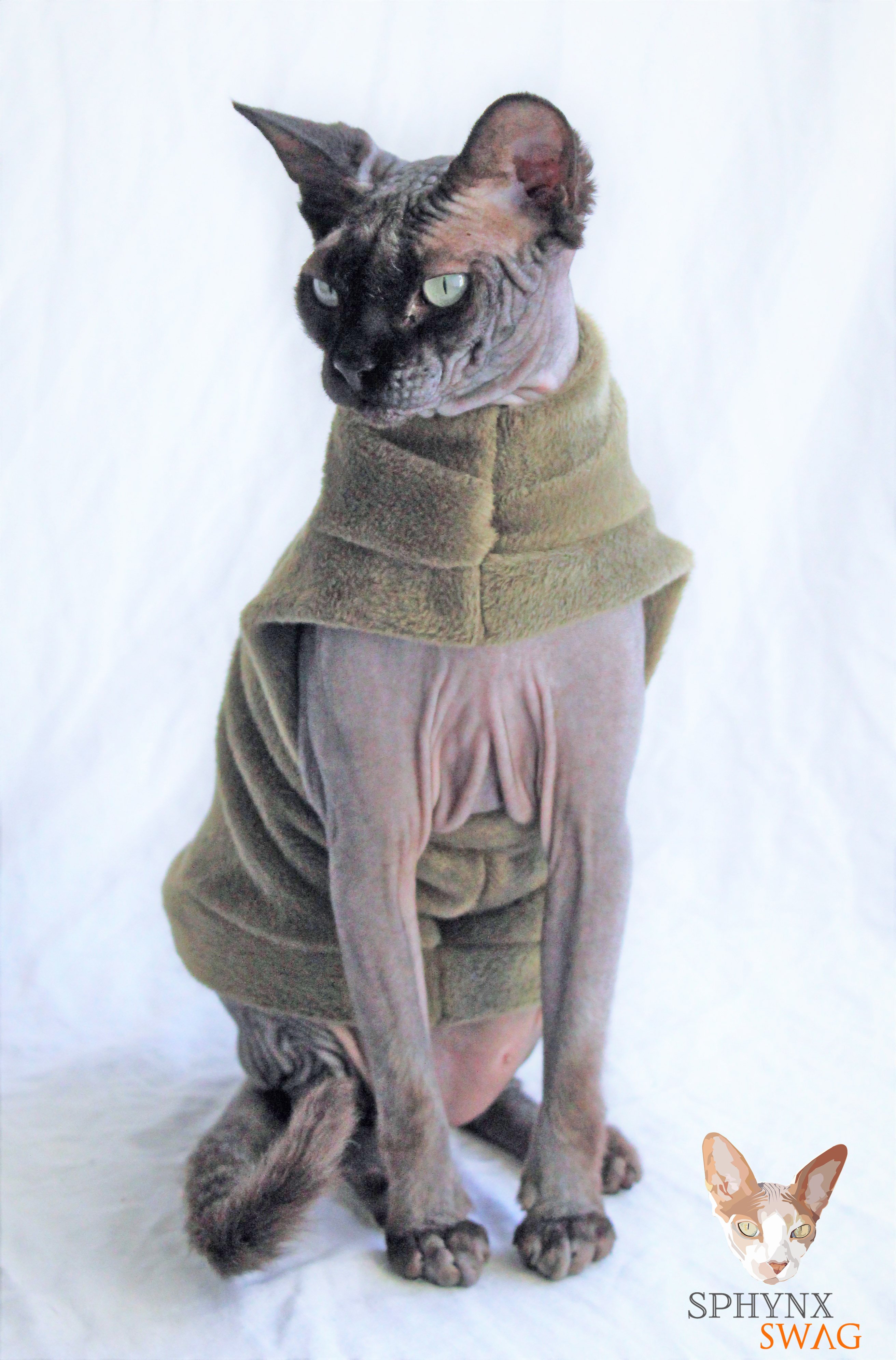 This is a Limited Edition cat shirt / sweater for your hairless Sphynx / Devon Rex / Cornish Rex / Peterbald, and even for some of our stylish furry friends. These sweaters fit like no other sweaters. Our original pattern has one hole for both front legs rather than individual holes. The unique design makes it easy to put on and take off, while allowing for improved mobility of your cat. No annoying Velcro anywhere. No awkward walking. All sweaters are machine washable and dryer safe unless specifically mentioned.