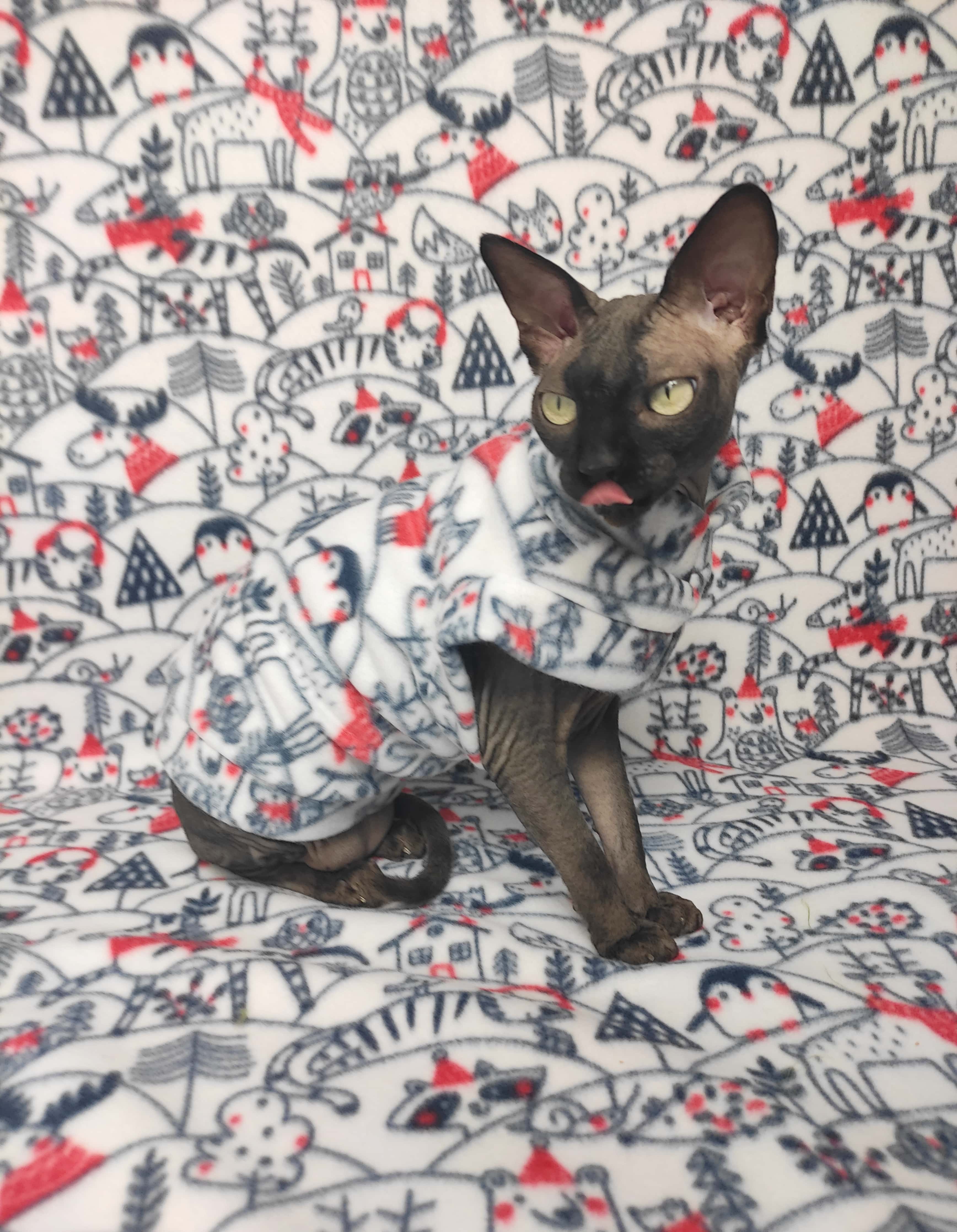 This is the second year we are doing Open Edition cat shirts for Holiday Swag! We will try our best to keep items in stock until Christmas! This is a fun medium weight stretchy fleece with wildlife celebrating the holidays 🎄😻