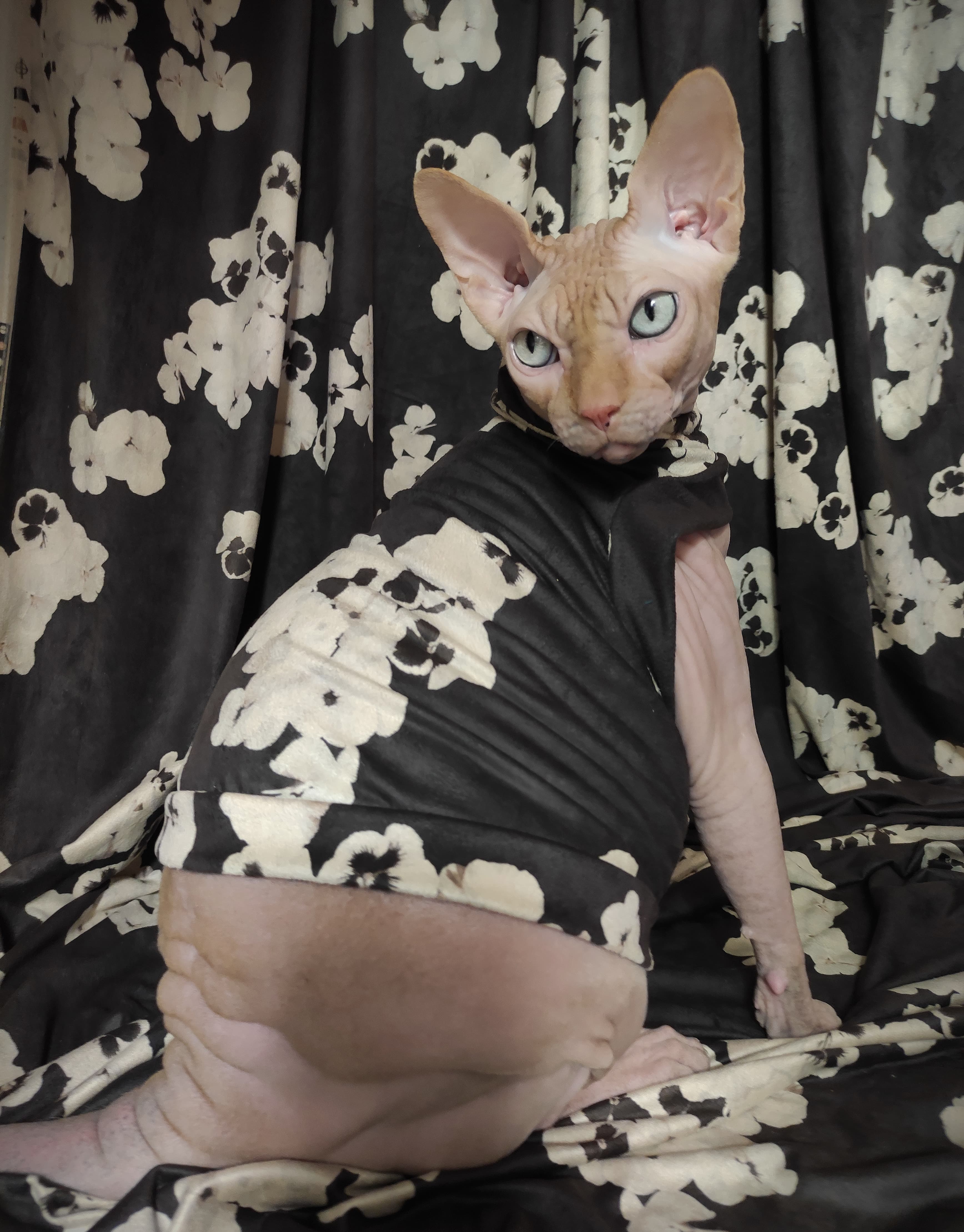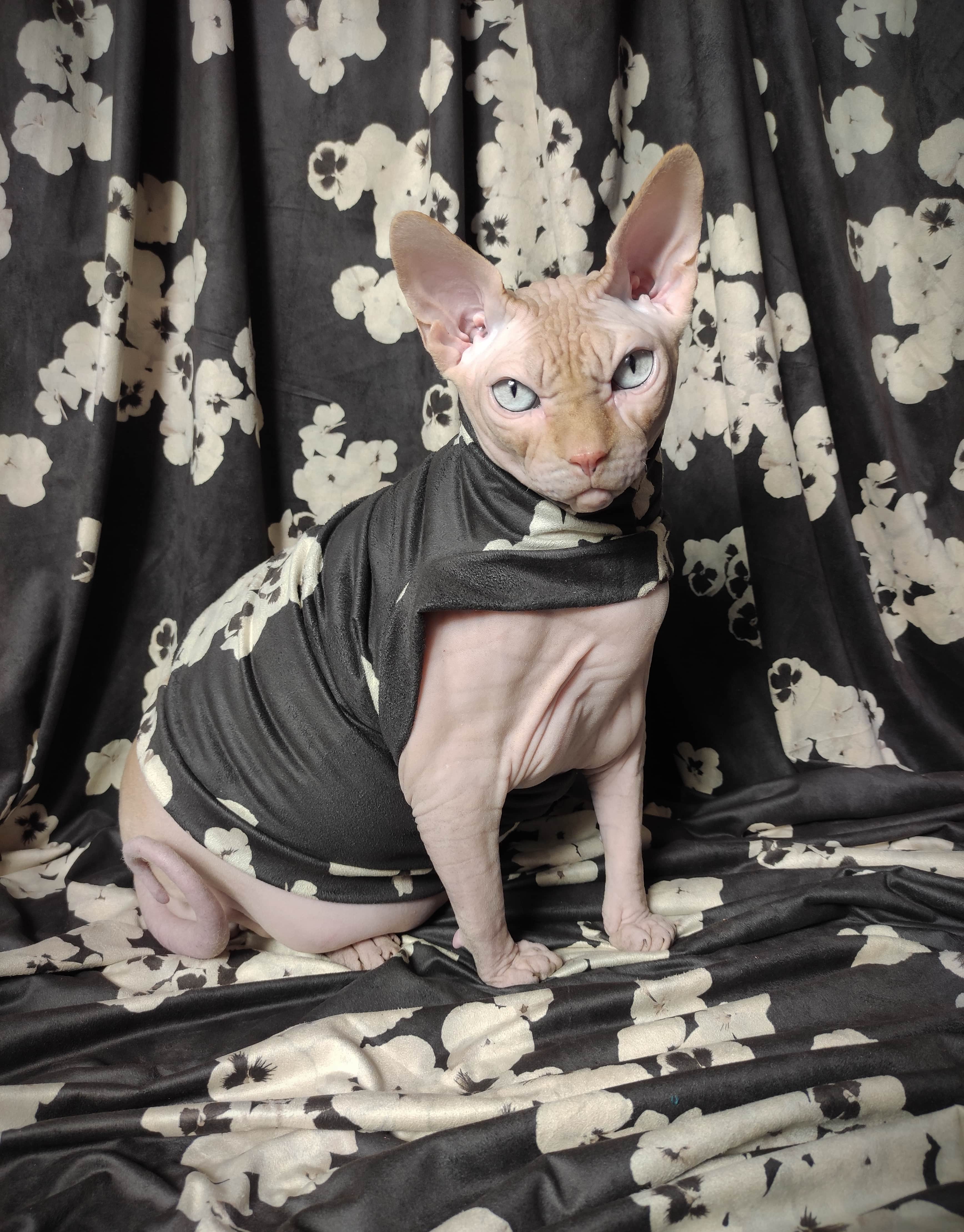 REGULAR size is for most adult hairless cats age 1 to 18. BAMBINO size fits hairless kittens age 6 months to 1 year and smaller adult cats. LIL NIPPER size fits hairless kittens age 8 weeks to 15 week olds for when they are with the breeder or for the trip home. Custom orders are welcome for larger and smaller cats - pricing is the same - $27.50