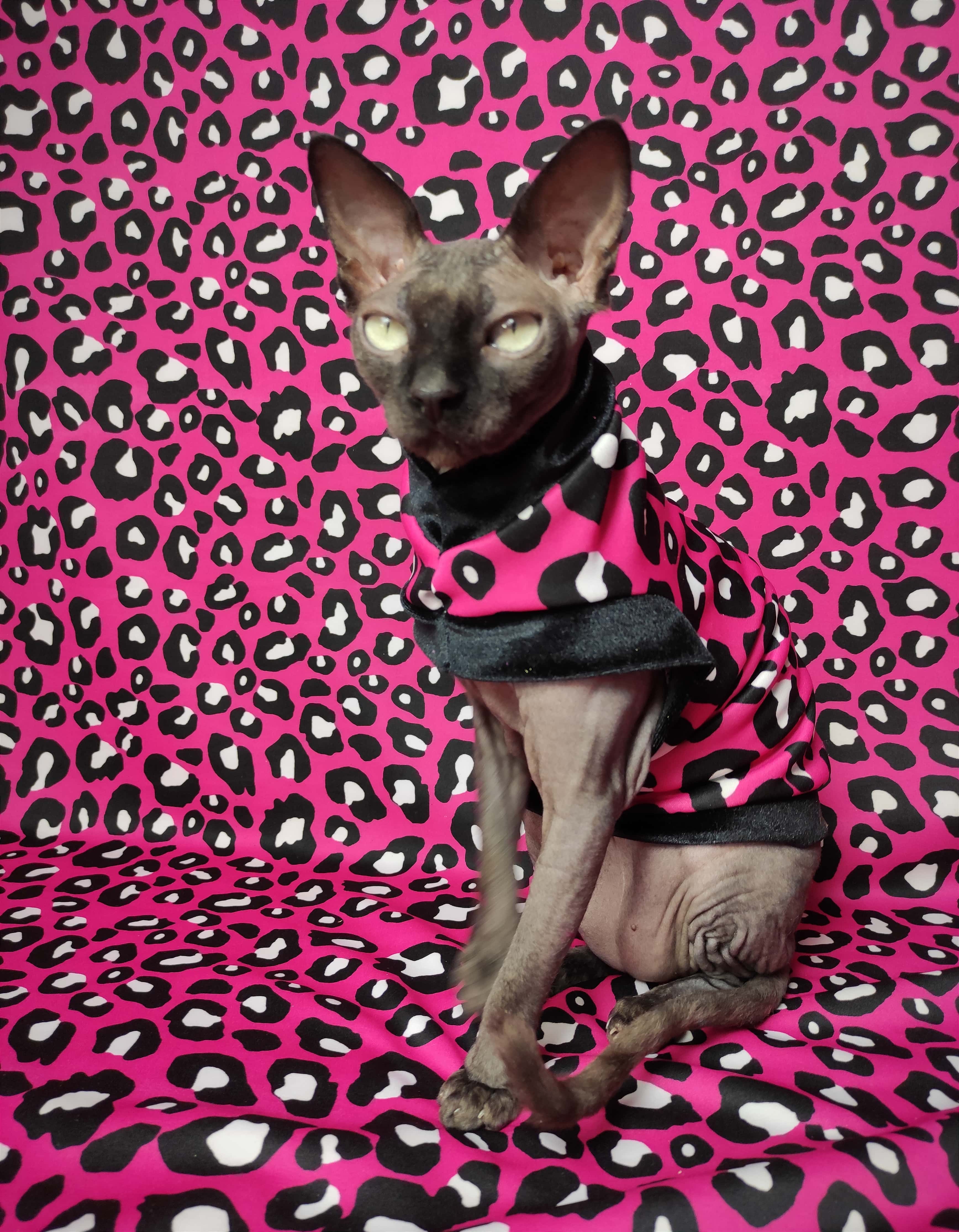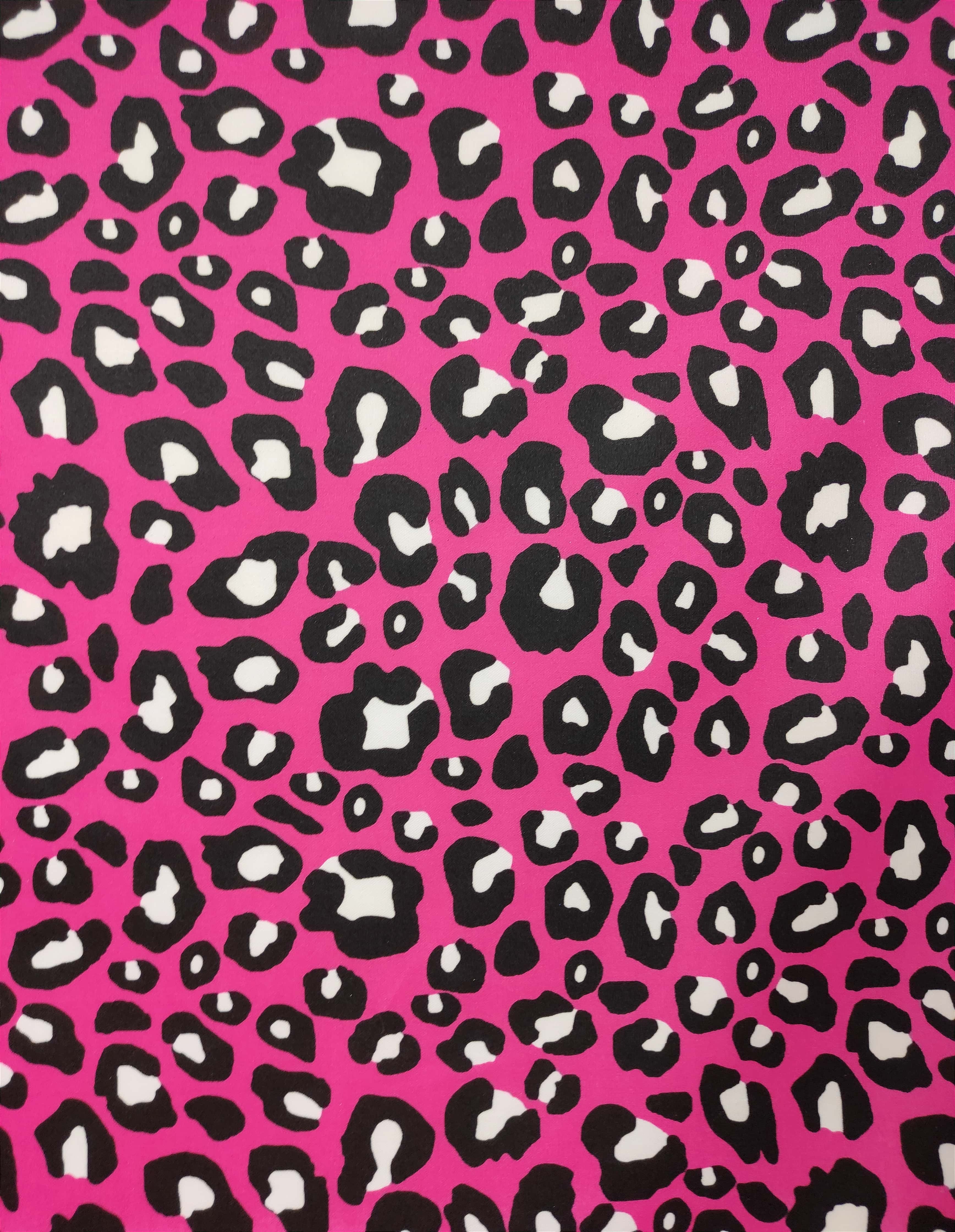 This is a beautiful lightweight stretchy spandex blend fabric with printed pink leopard pattern with black velvet trim. Regular Size limited to only 8. Bambino Size is limited to only 7, Ankle Biter Size is limited to 3, Lil Nipper Size is limited to 2. No more will be made when they are gone.