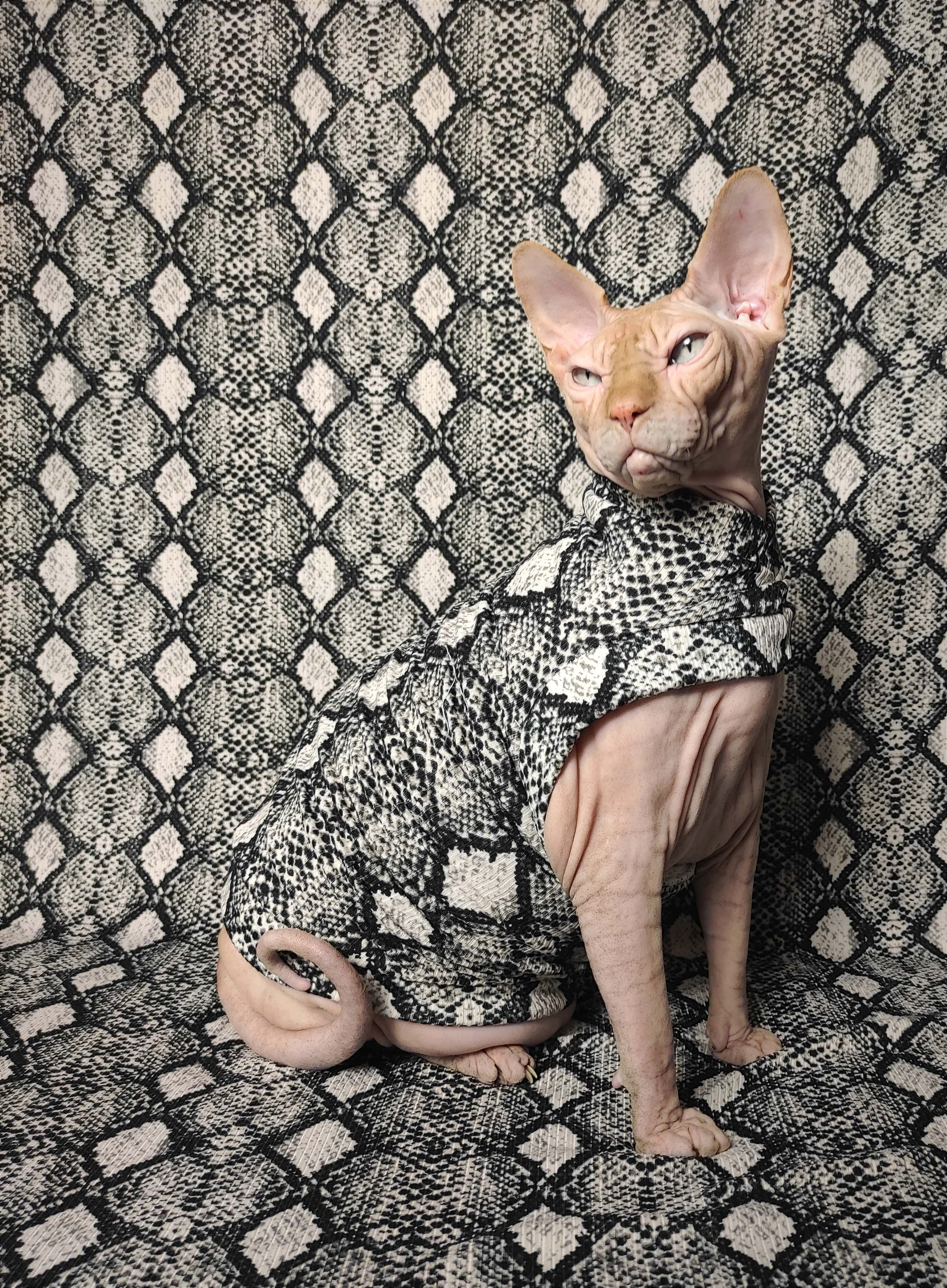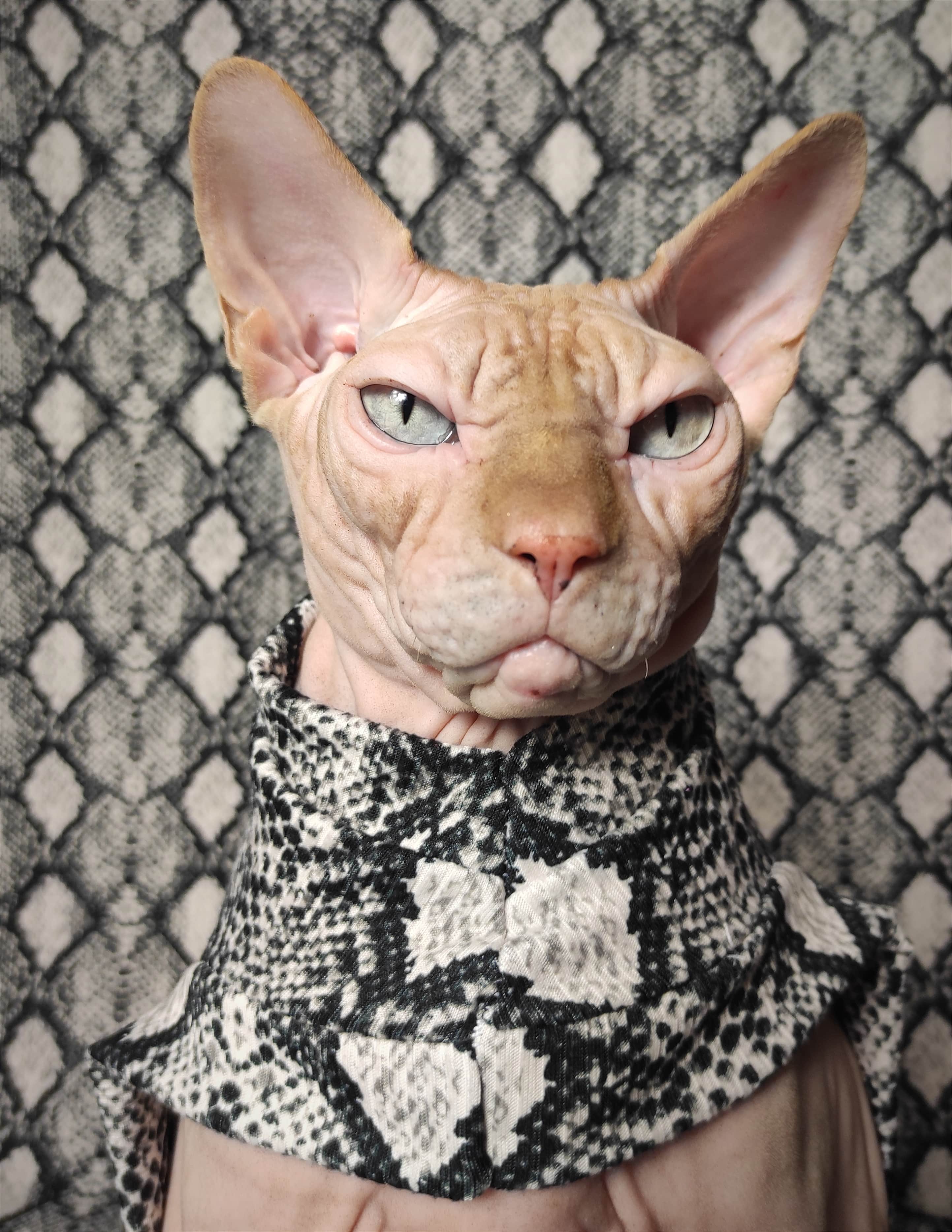 REGULAR size is for most adult hairless cats age 1 to 18. BAMBINO size fits hairless kittens age 6 months to 1 year and smaller adult cats. ANKLE BITER size fits kittens 15 weeks to 6 month olds. LIL NIPPER size fits hairless kittens age 8 weeks to 15 week olds for when they are with the breeder or for the trip home. Custom orders are welcome for larger and smaller cats - pricing is the same - $27.50