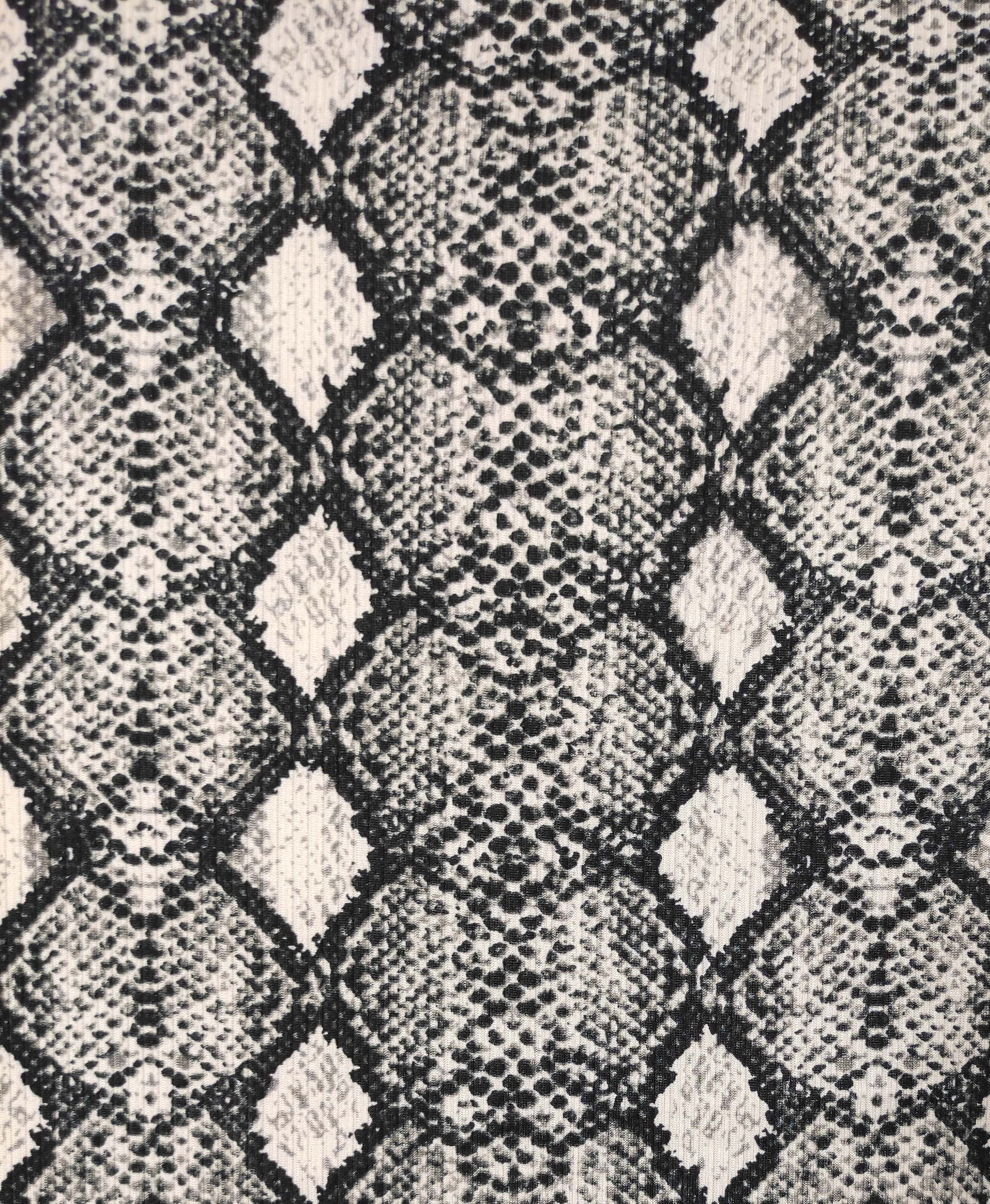 This is a thin ribbed stretchy white fabric with printed snakeskin pattern. Regular Size limited to only 8, Bambino Size is limited to only 8. Ankle Biter Size is limited to 2, Lil Nipper Size is limited to 2. No more will be made when they are gone.