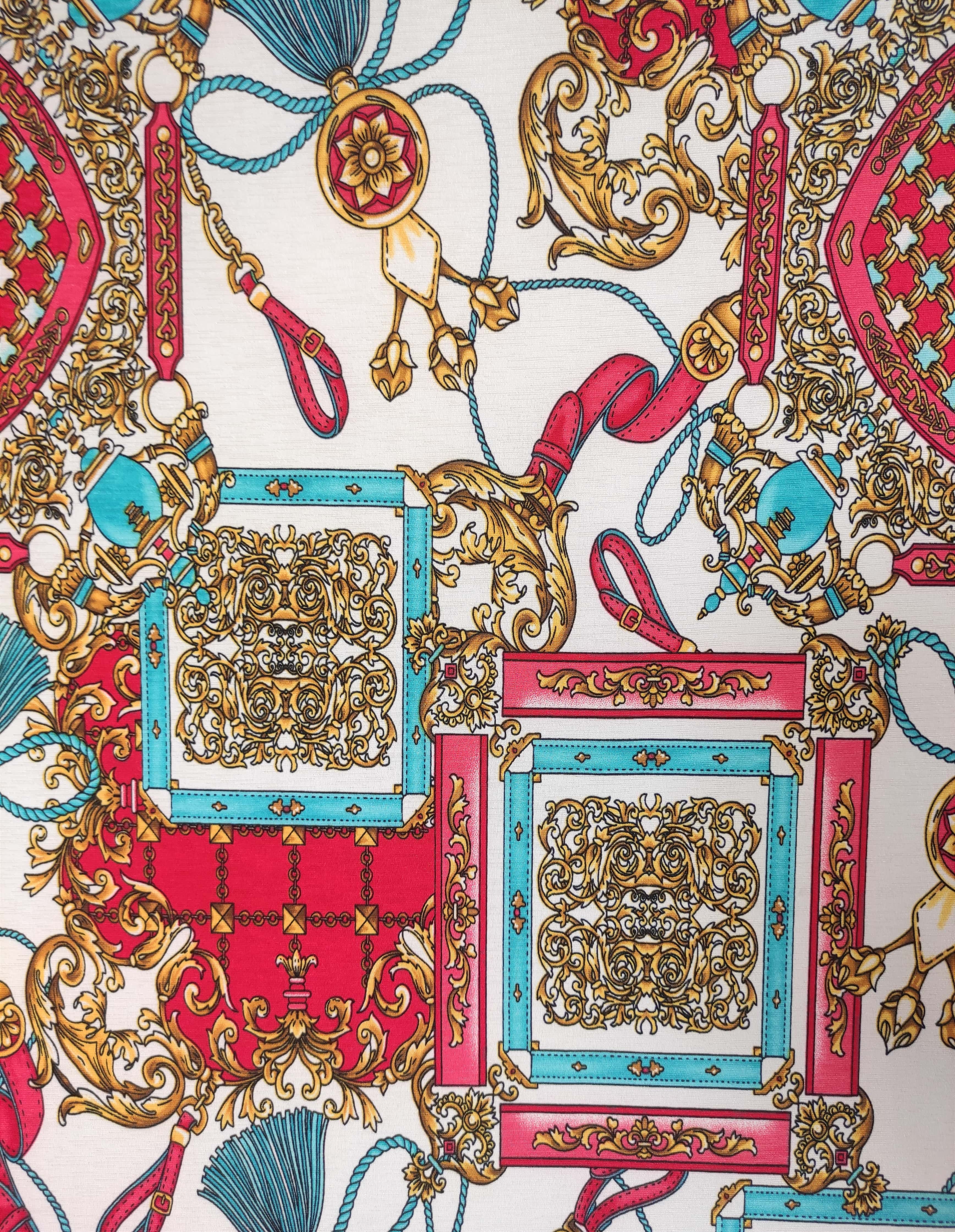 This is a beautiful lightweight stretchy fabric with printed Hermes styled design with bright white crushed velver trim. Regular Size limited to only 9. Bambino Size is limited to only 7, Ankle Biter Size is limited to 2, Lil Nipper Size is limited to 2. No more will be made when they are gone.