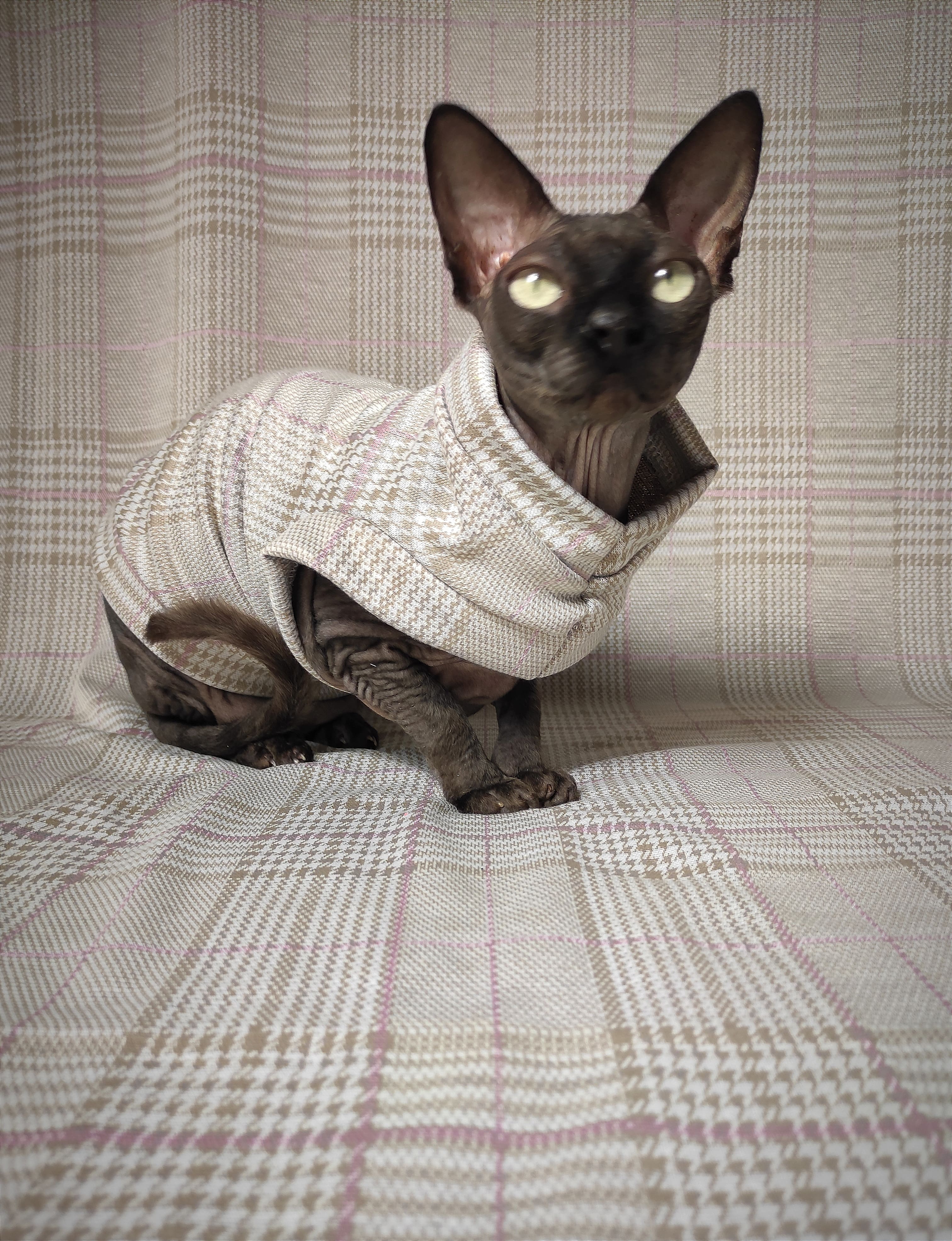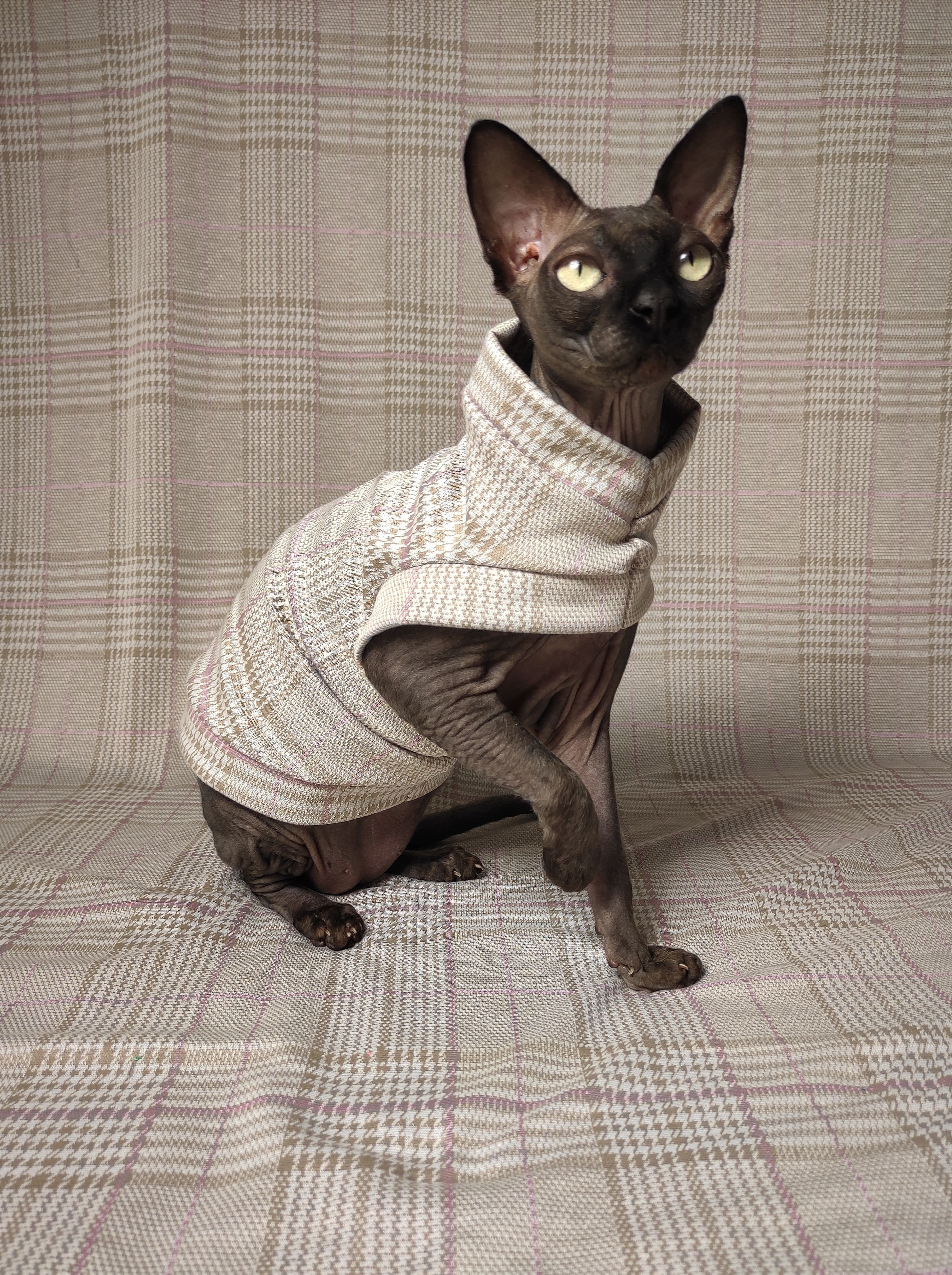 REGULAR size is for most adult hairless cats age 1 to 18. BAMBINO size fits hairless kittens age 6 months to 1 year and smaller adult cats. ANKLE BITER size fits hairless kittens 15 week to 6 month olds. LIL NIPPER size fits hairless kittens age 8 weeks to 15 week olds for when they are with the breeder or for the trip home. Custom orders are welcome for larger and smaller cats - pricing is the same - $27.50