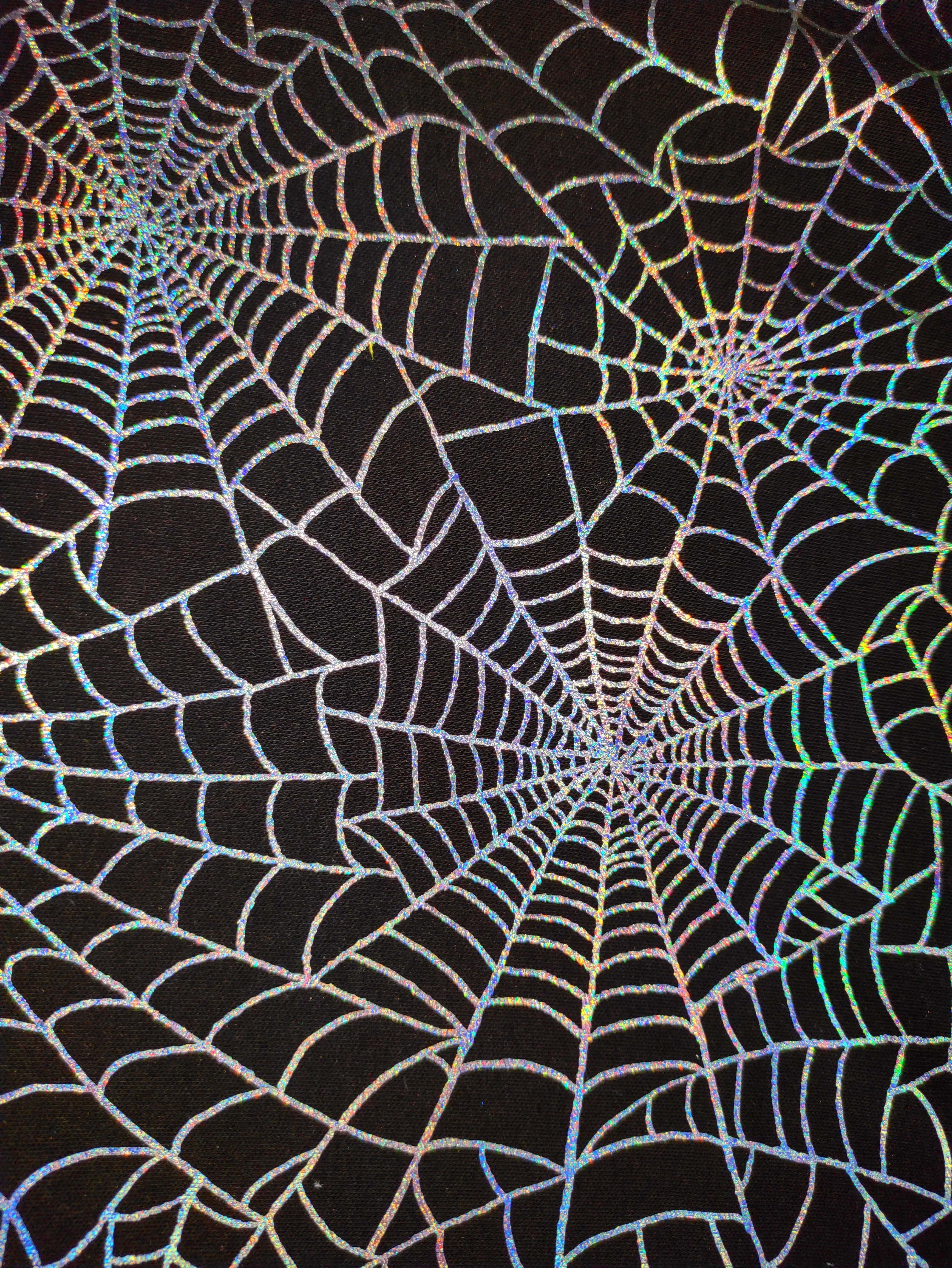 This is a lightweight super stretchy poly spandex blend fabric with printed iridescent spiderweb pattern that has a vintage cracked appearance. This is our third Open Edition and we will try our best to accommodate all orders right up until Halloween.