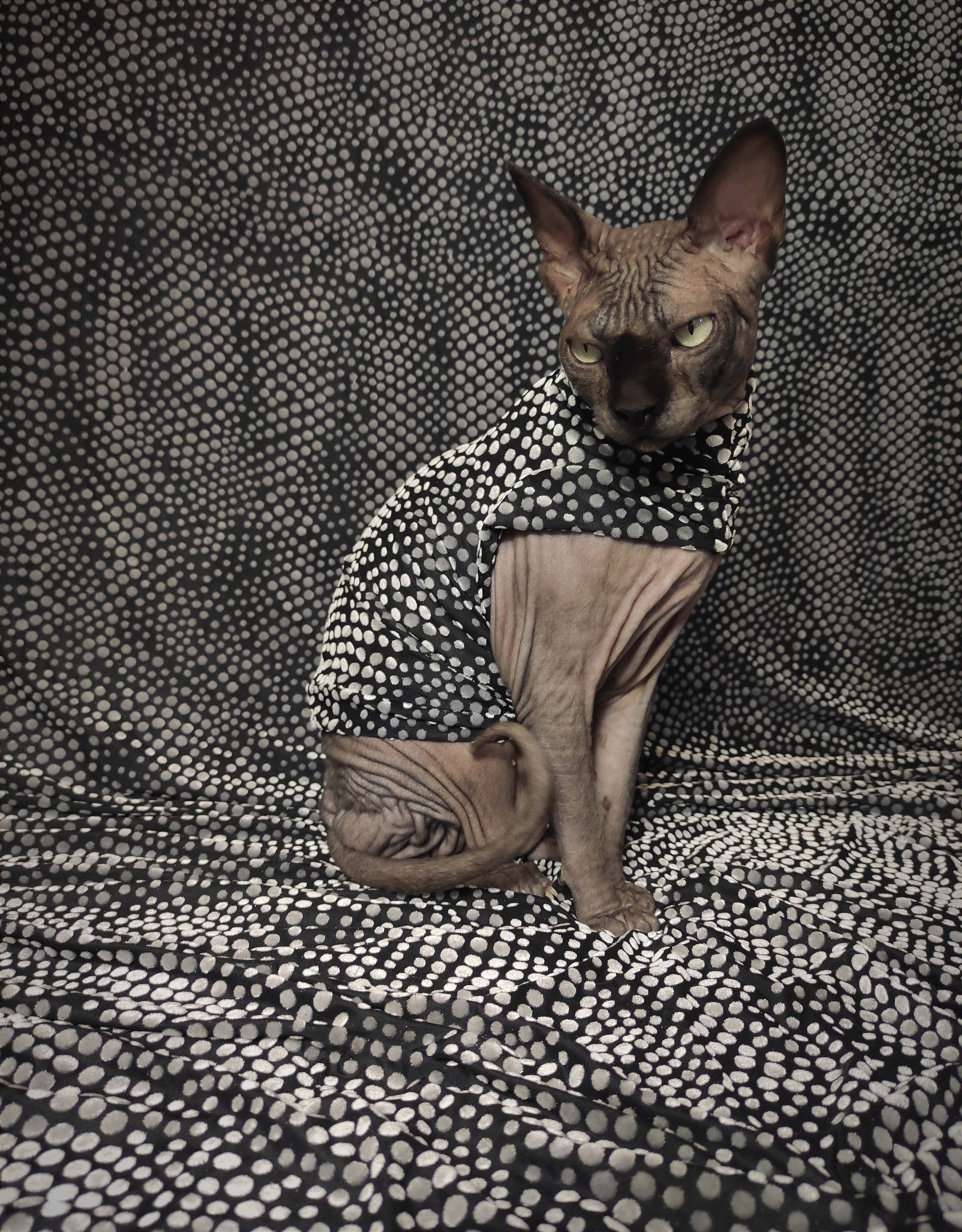 REGULAR size is for most adult hairless cats age 1 to 18. BAMBINO size fits hairless kittens age 6 months to 1 year and smaller adult cats. ANKLE BITER size fits kittens 15 weeks to 6 month olds. LIL NIPPER size fits hairless kittens age 8 weeks to 15 week olds for when they are with the breeder or for the trip home. Custom orders are welcome for larger and smaller cats - pricing is the same - $27.50