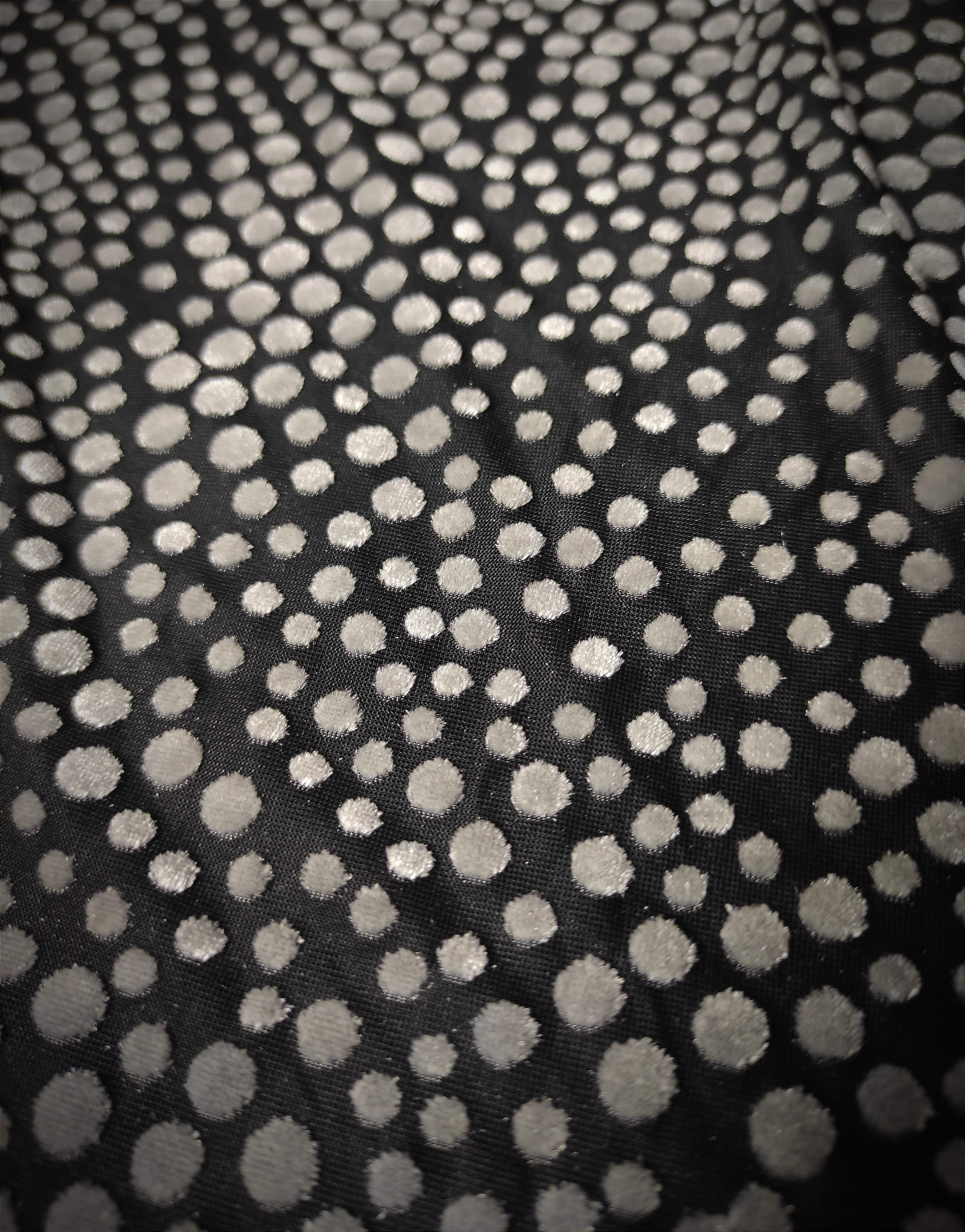 This is an amazing stretchy lightweight woven fabric with putty colored background and white holes that have a psychedelic pattern 😻 Regular Size limited to only 8, Bambino Size is limited to only 7, Ankle Biter Size is limited to 2. Lil Nipper Size is limited to 2. No more will be made when they are gone.