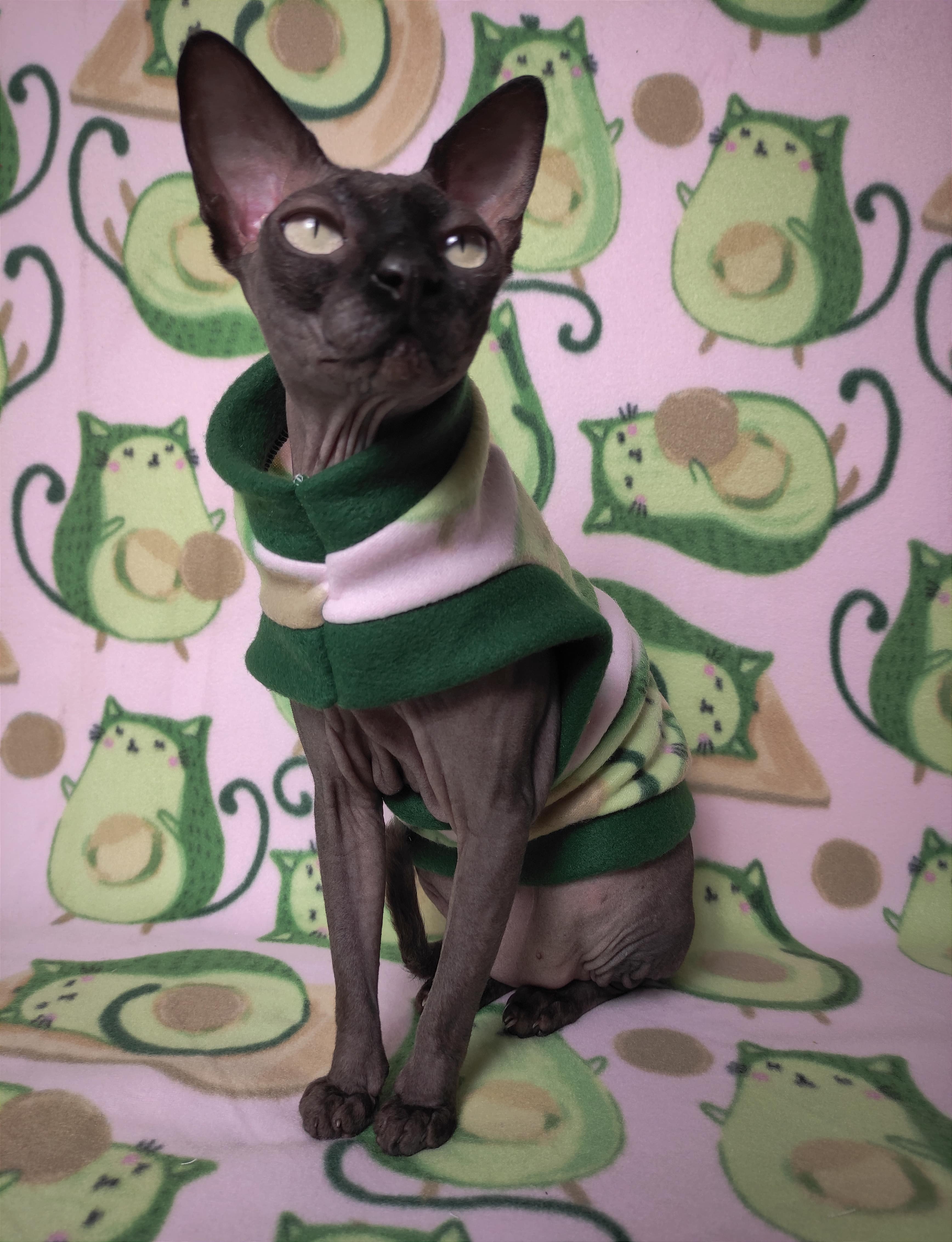This is a soft medium weight stretchy fleece with avo-cat-o's with green fleece trim or same trim as body. Patterns will be random ;) Regular Size limited to only 8. Bambino Size is limited to only 7, Ankle Biter Size is limited to 2. Lil Nipper Size is limited to 2. No more will be made when they are gone.