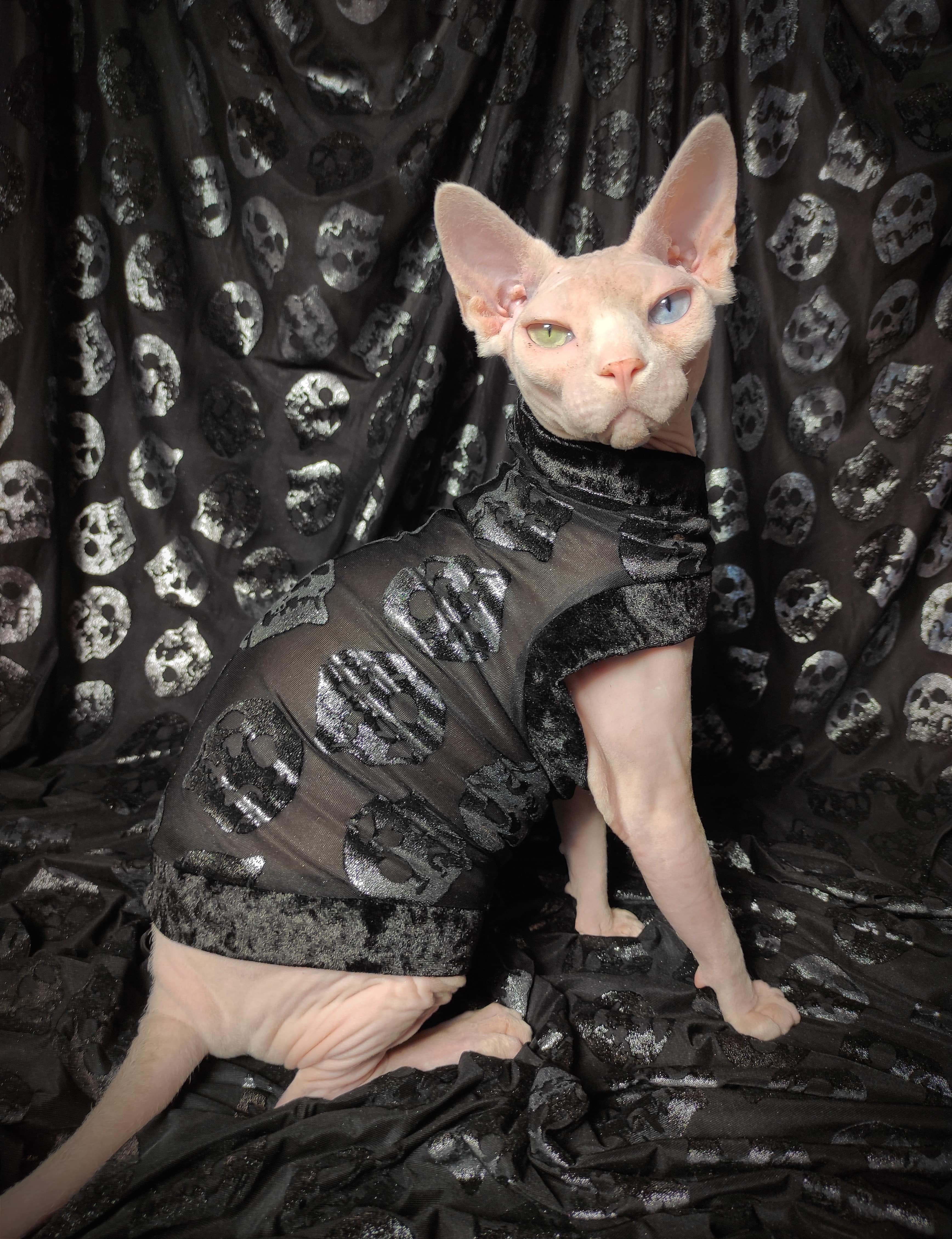 This is an amazing stretchy lightweight woven see through fabric with silver black velvet skulls and we pick what trim you will get but we promise it will be good 😻 Regular Size limited to only 8, Bambino Size is limited to only 7, Ankle Biter Size is limited to 2. Lil Nipper Size is limited to 2. No more will be made when they are gone.