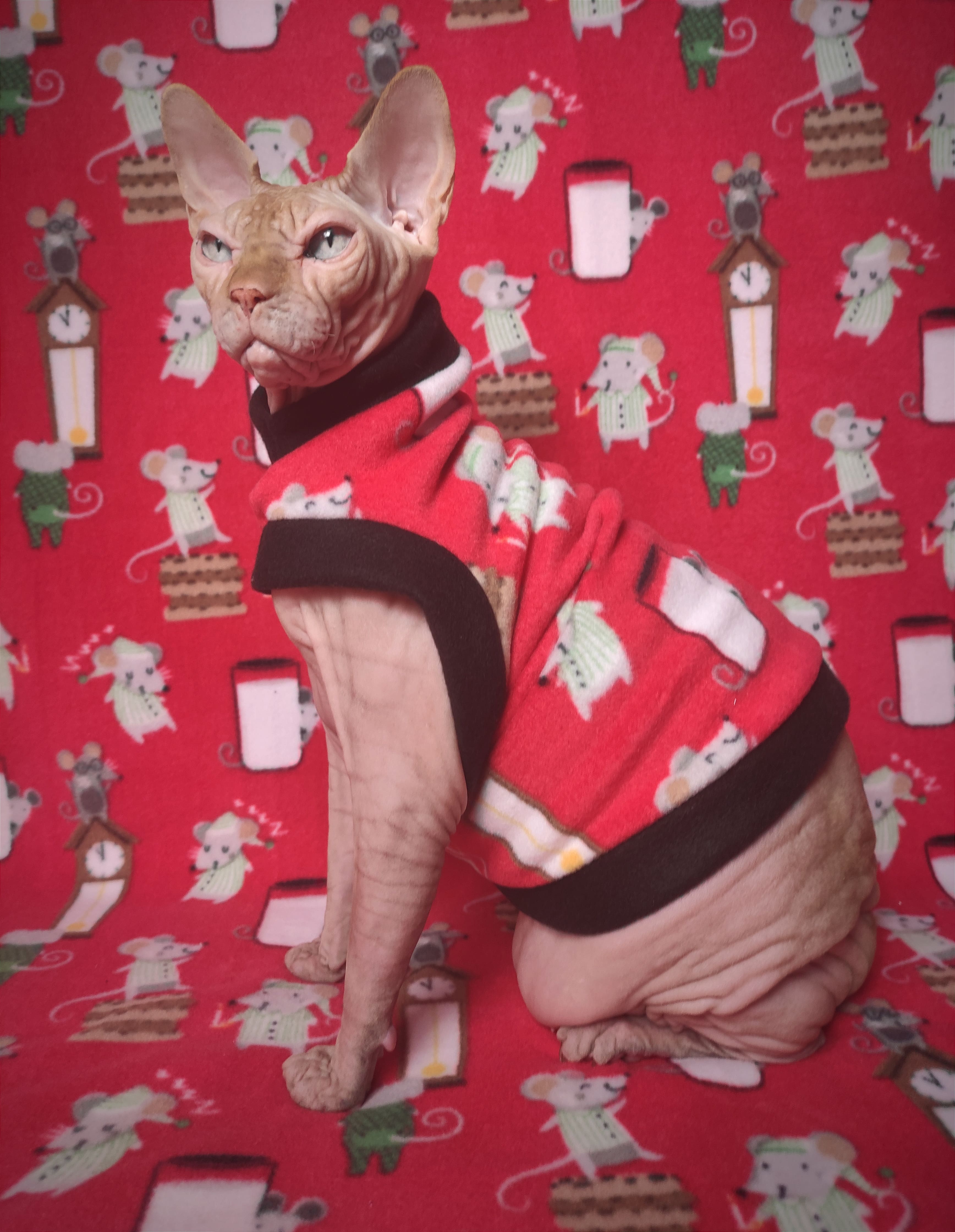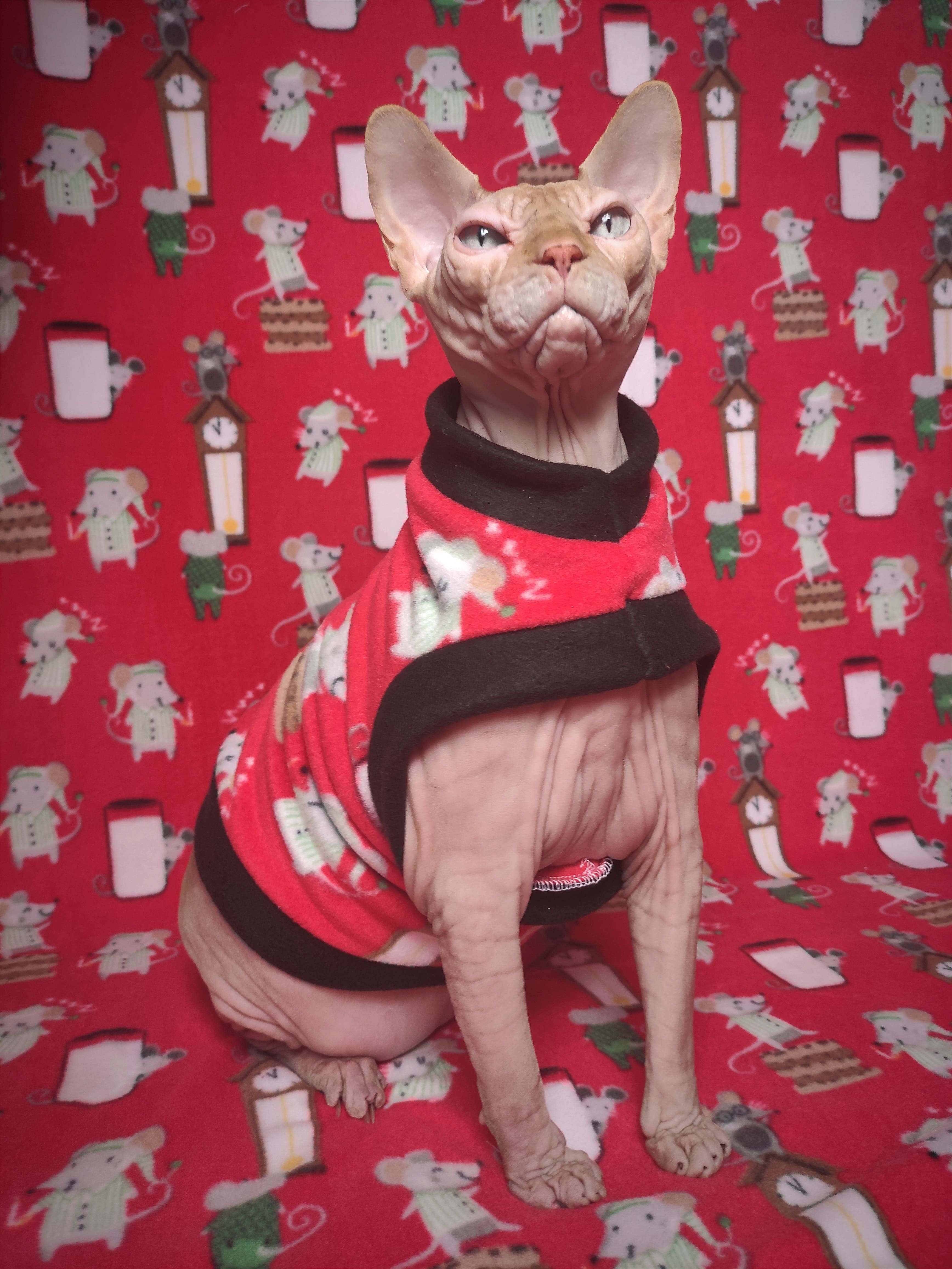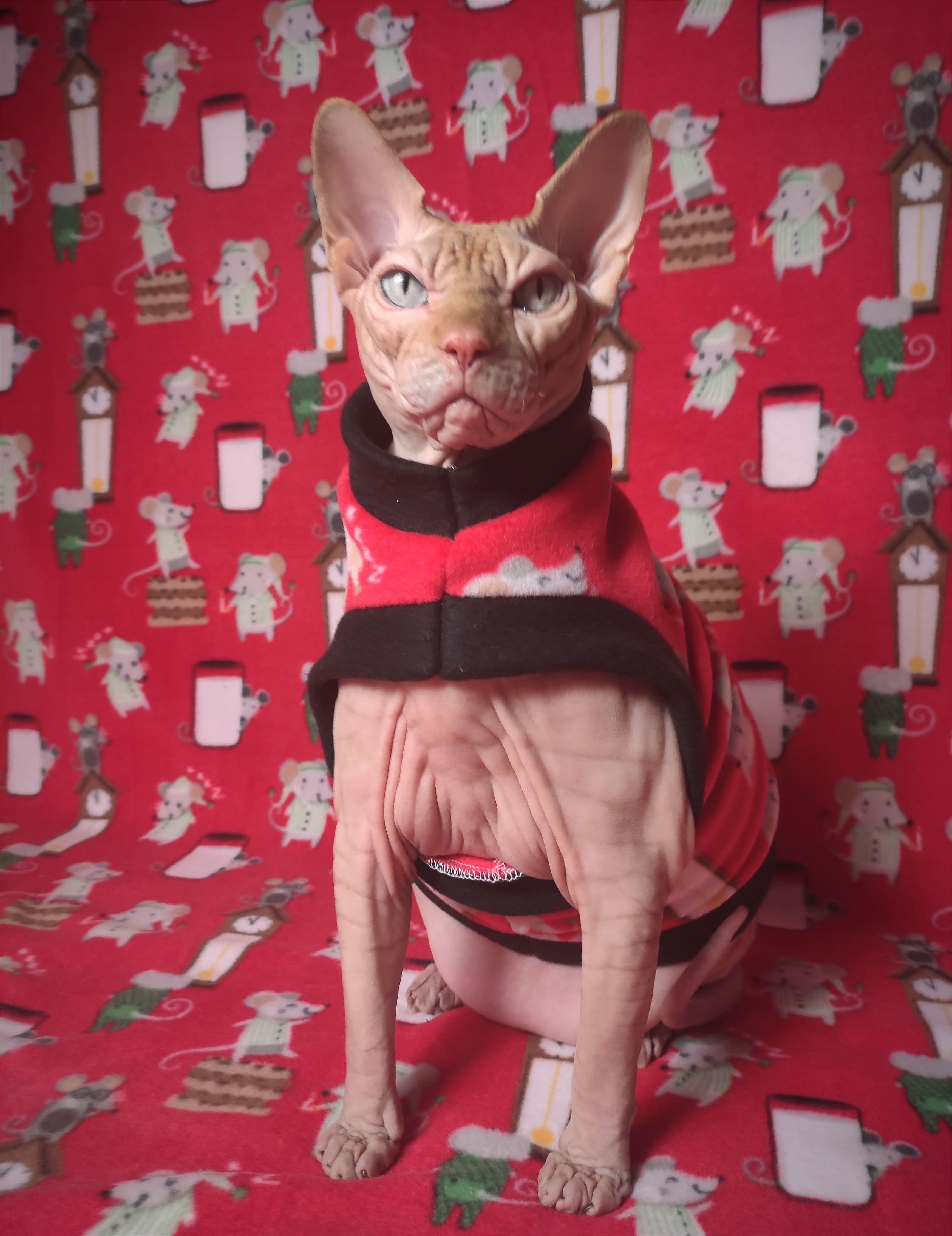 REGULAR size is for most adult hairless cats age 1 to 18. BAMBINO size fits hairless kittens age 6 months to 1 year and smaller adult cats. LIL NIPPER size fits hairless kittens age 8 weeks to 15 week olds for when they are with the breeder or for the trip home. Custom orders are welcome for larger and smaller cats - pricing is the same - $27.50
