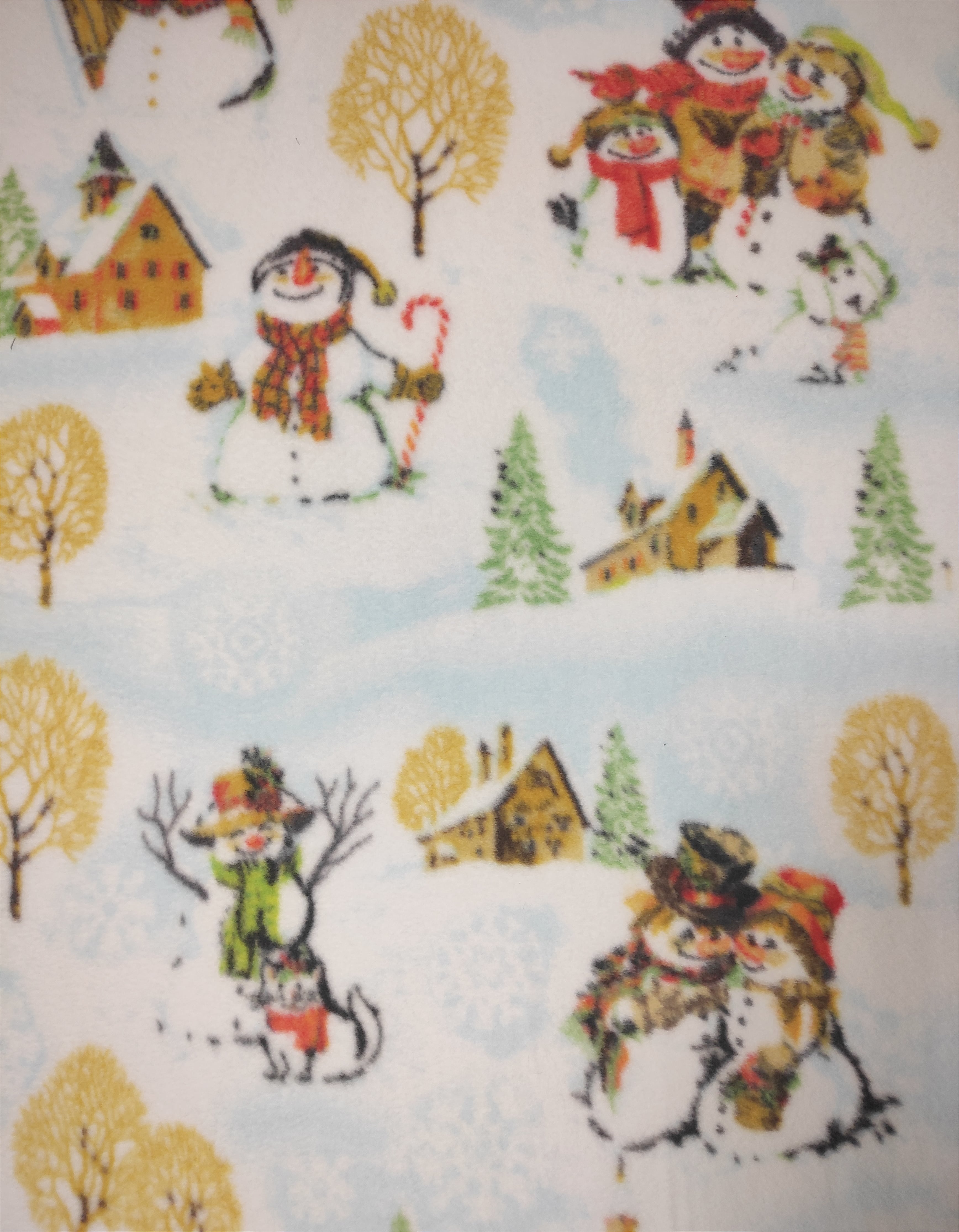 This is the third year we are doing Open Edition cat shirts for Holiday Swag! We will try our best to keep items in stock until Christmas! This is an amazing medium weight stretchy vintage looking holiday pattern fleece fabric with various snowmen on white background, with brown fleece.