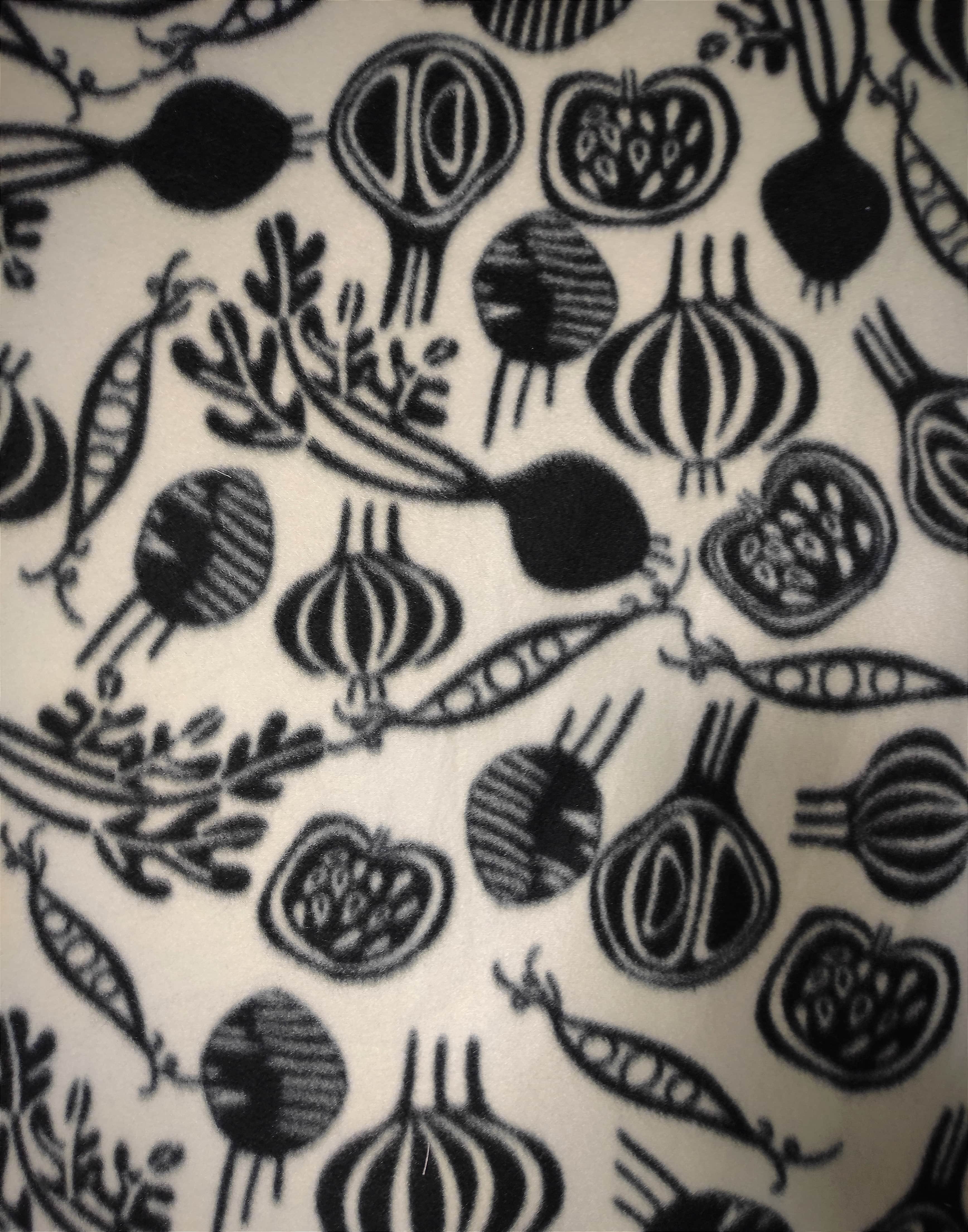 This is a soft medium weight stretchy fleece with various vegetable suitable for cooking😻