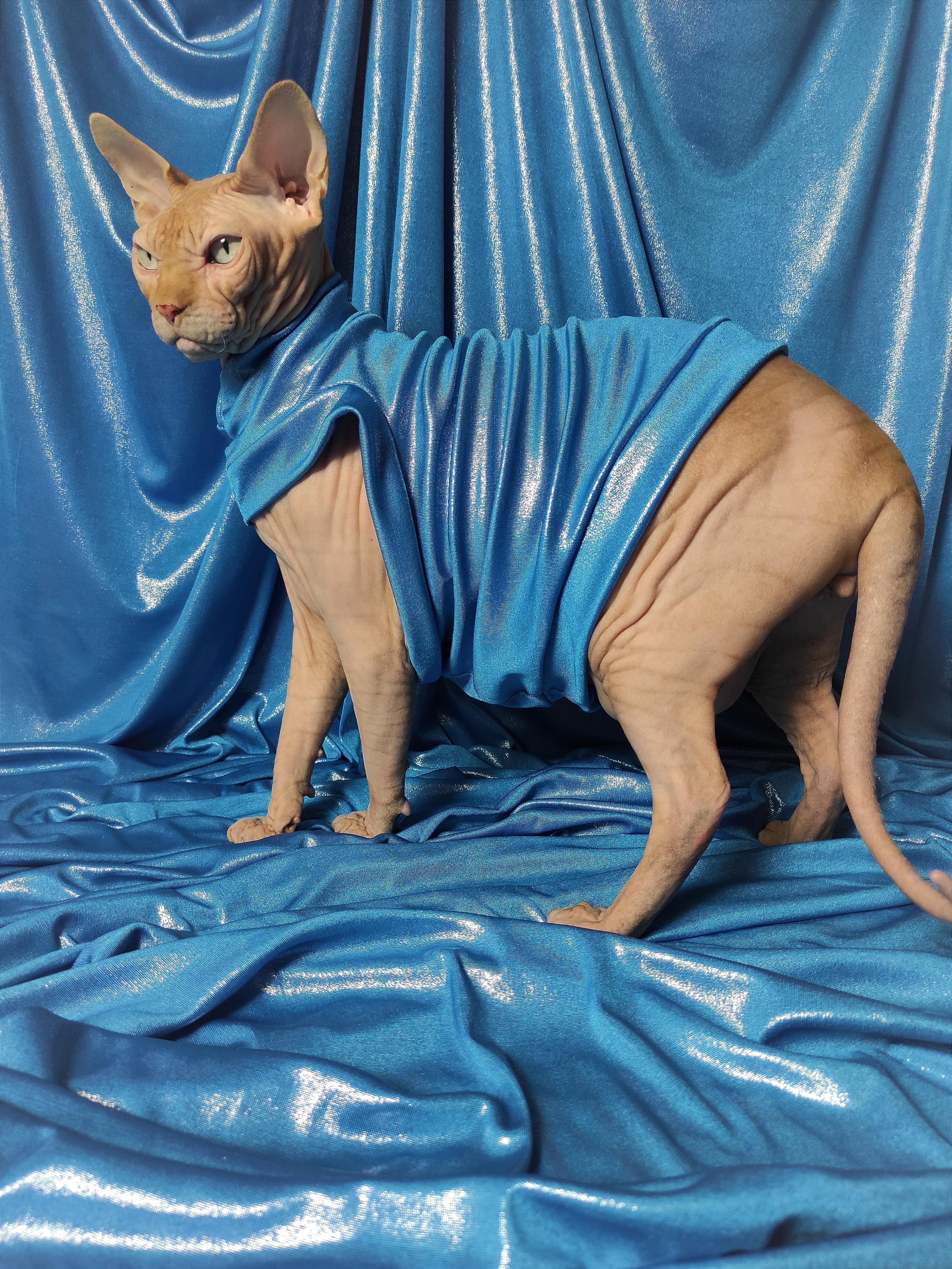 REGULAR size is for most adult hairless cats age 1 to 18. BAMBINO size fits hairless kittens age 6 months to 1 year and smaller adult cats. ANKLE BITER size fits kittens 15 weeks to 6 month olds. LIL NIPPER size fits hairless kittens age 8 weeks to 15 week olds for when they are with the breeder or for the trip home. Custom orders are welcome for larger and smaller cats - pricing is the same - $27.50