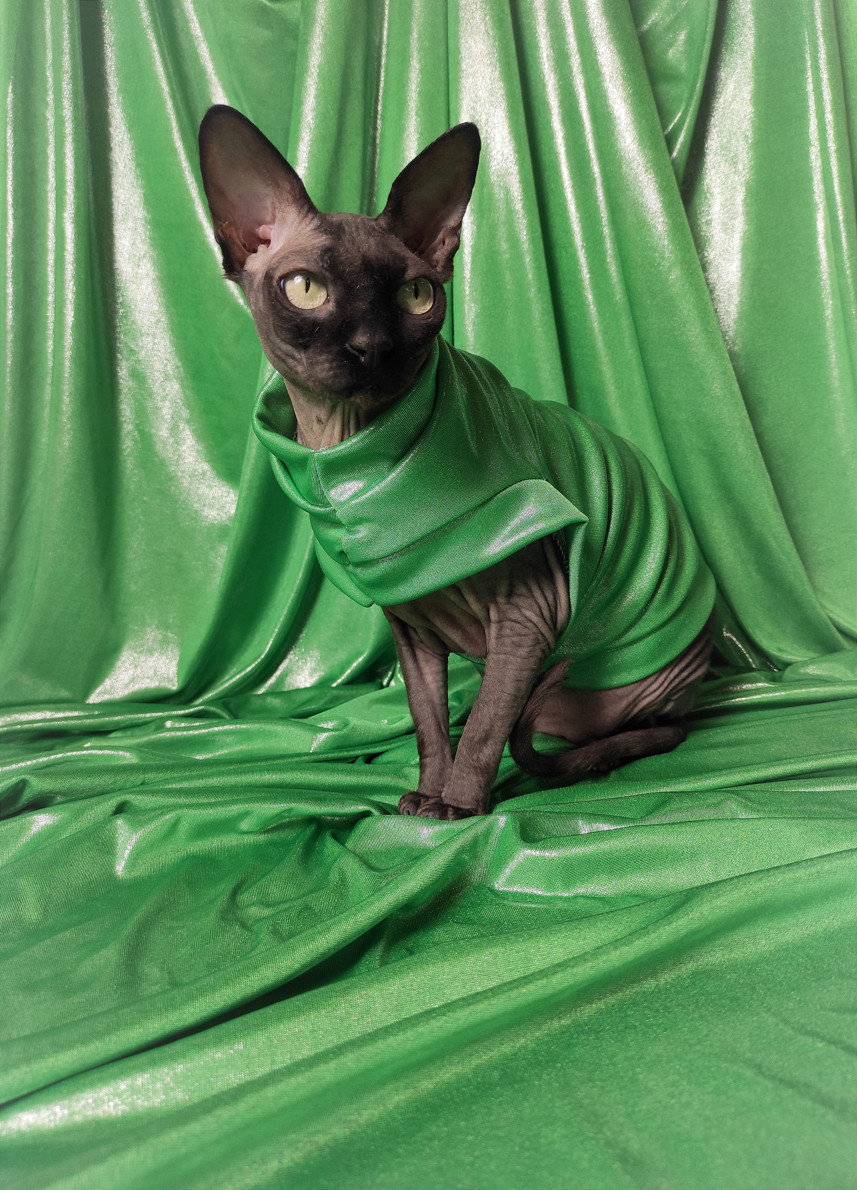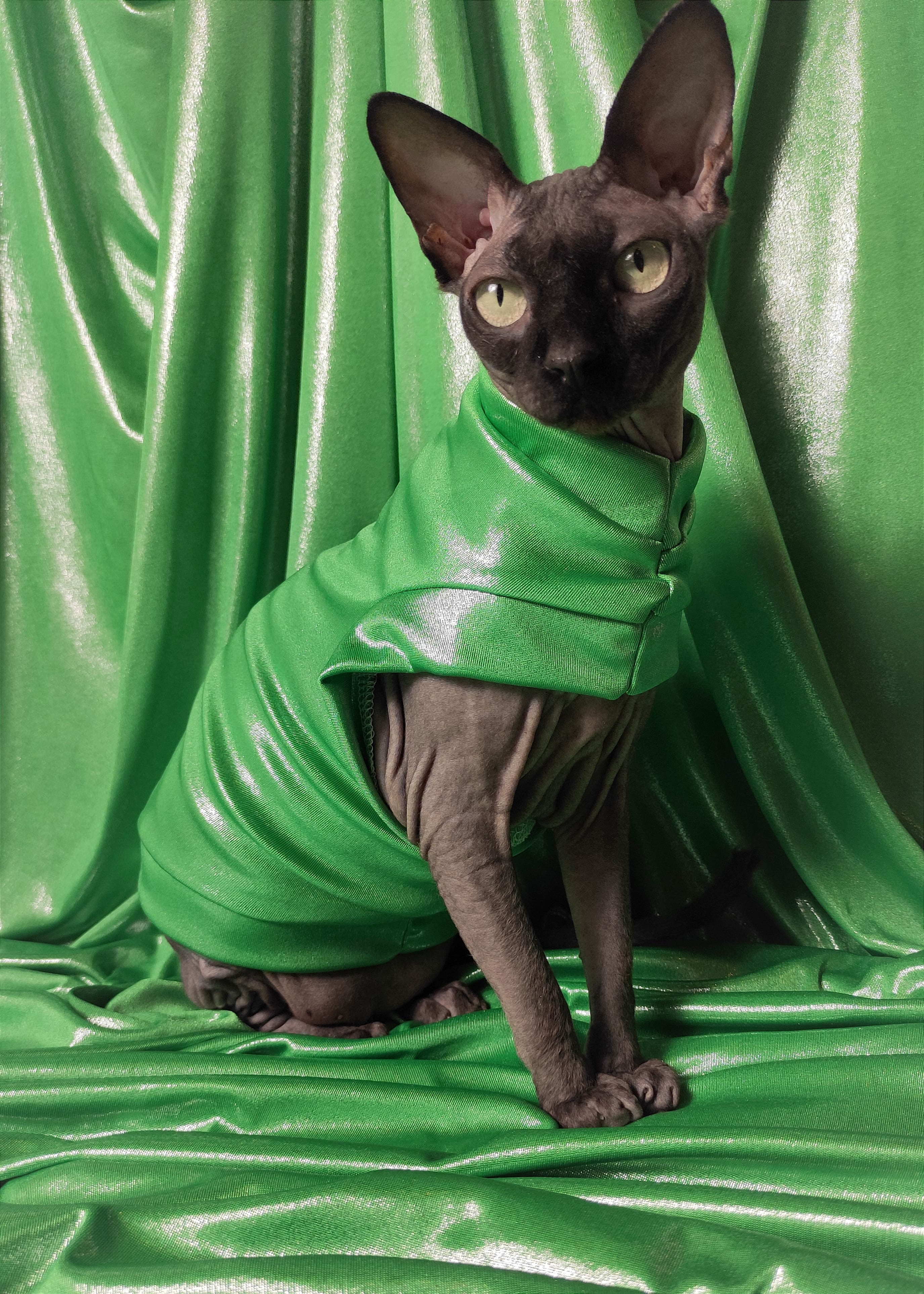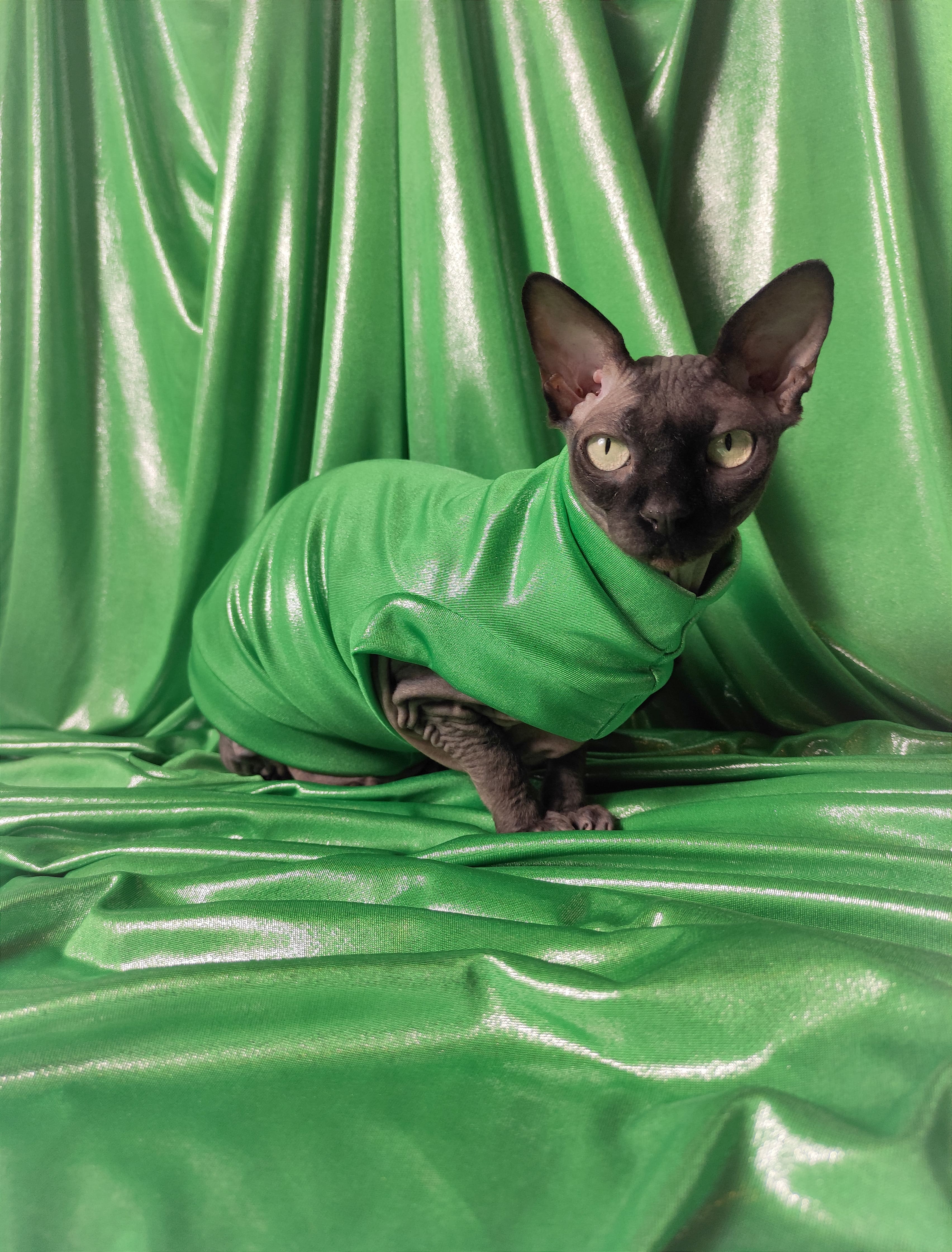 This is an stretchy thin blend green fabric screenprinted with silver which gives it a liquid look😻 Regular Size limited to only 8, Bambino Size is limited to only 7, Ankle Biter Size is limited to 2. Lil Nipper Size is limited to 2. No more will be made when they are gone.