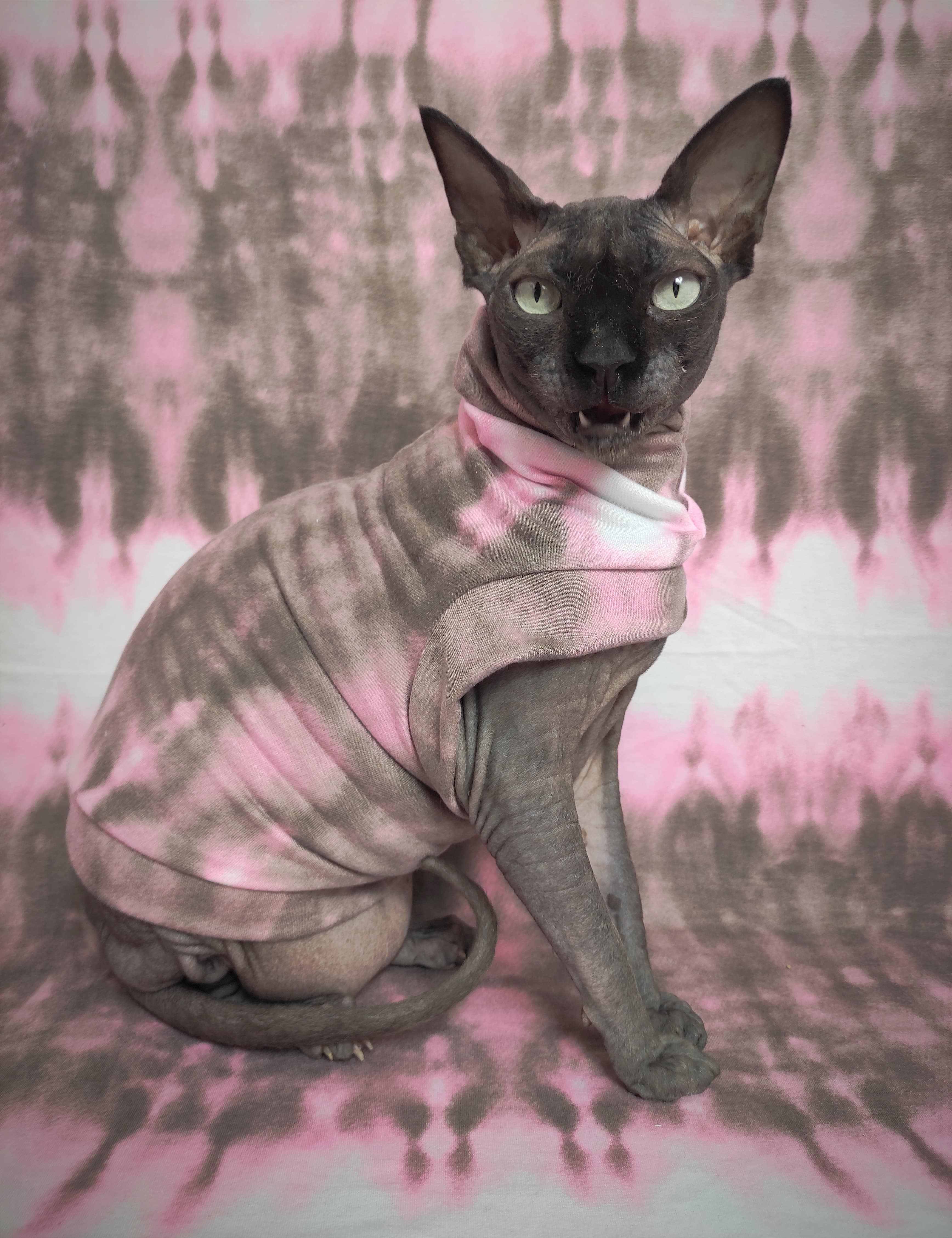 REGULAR size is for most adult hairless cats age 1 to 18. BAMBINO size fits hairless kittens age 6 months to 1 year and smaller adult cats. ANKLE BITER size fits kittens 15 weeks to 6 month olds. LIL NIPPER size fits hairless kittens age 8 weeks to 15 week olds for when they are with the breeder or for the trip home. Custom orders are welcome for larger and smaller cats - pricing is the same - $27.50