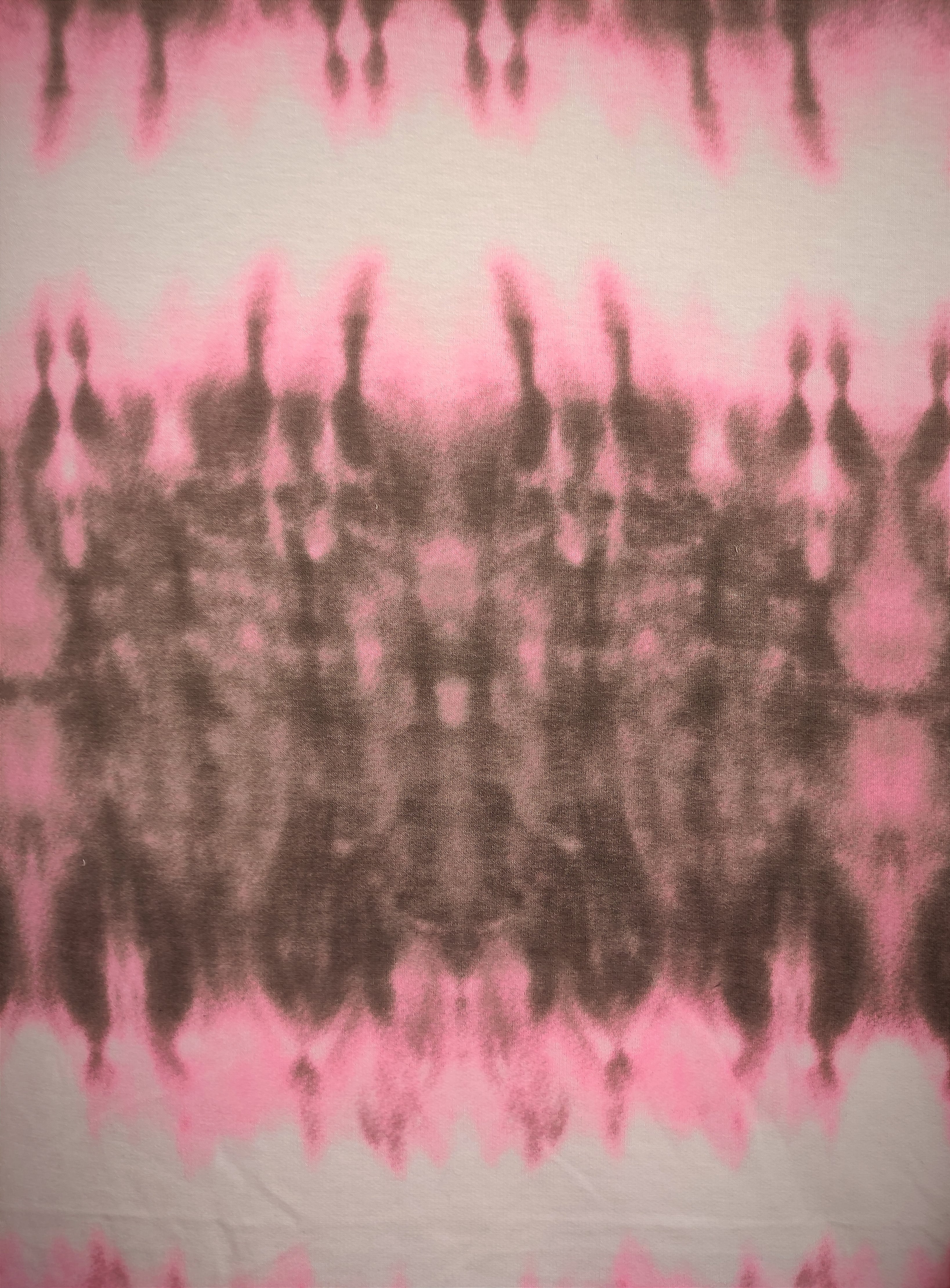 This is a beautiful lightweight stretchy cotton blend fabric printed with pink and brown tie dye design. Regular Size limited to only 8, Bambino Size is limited to only 7, Ankle Biter Size is limited to 2. Lil Nipper Size is limited to 2. No more will be made when they are gone.