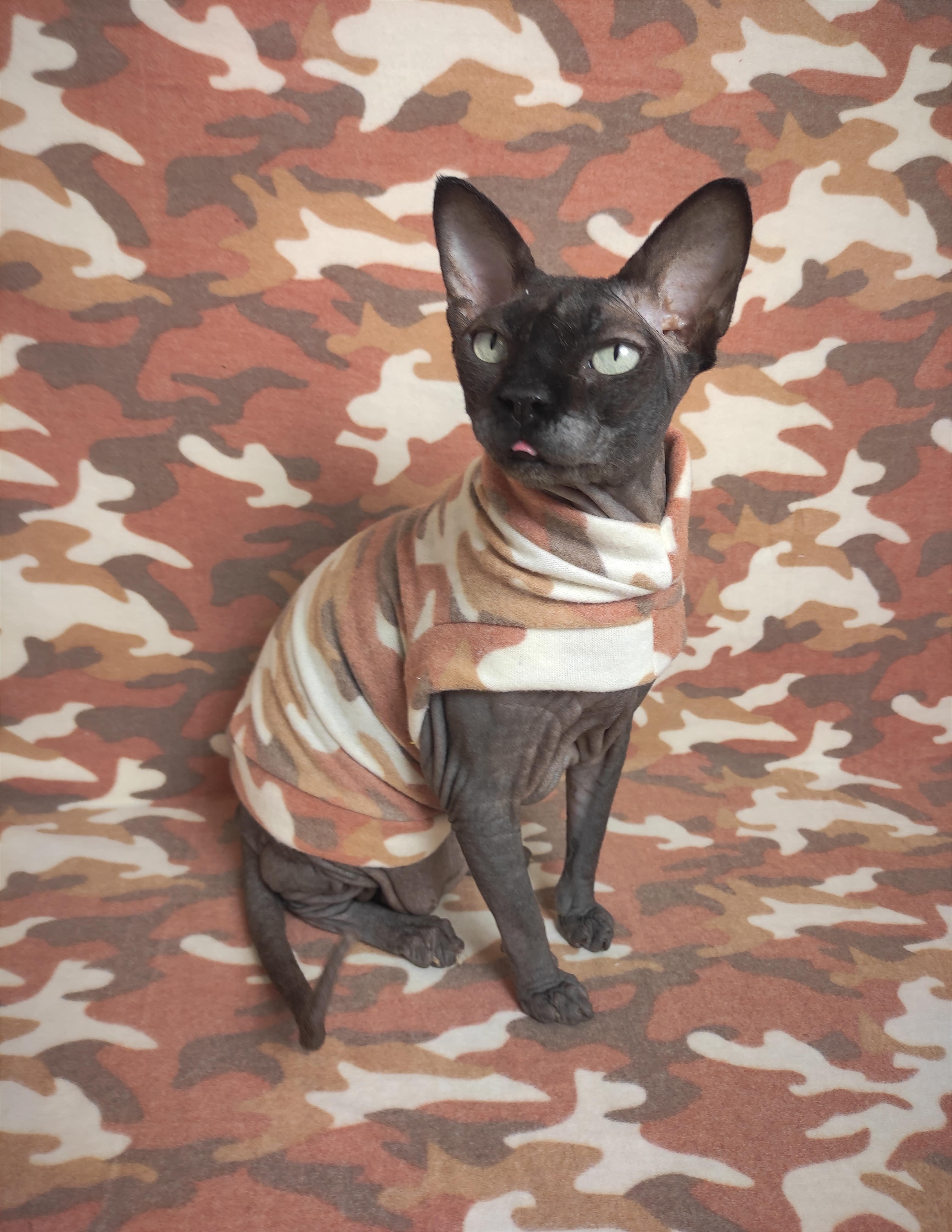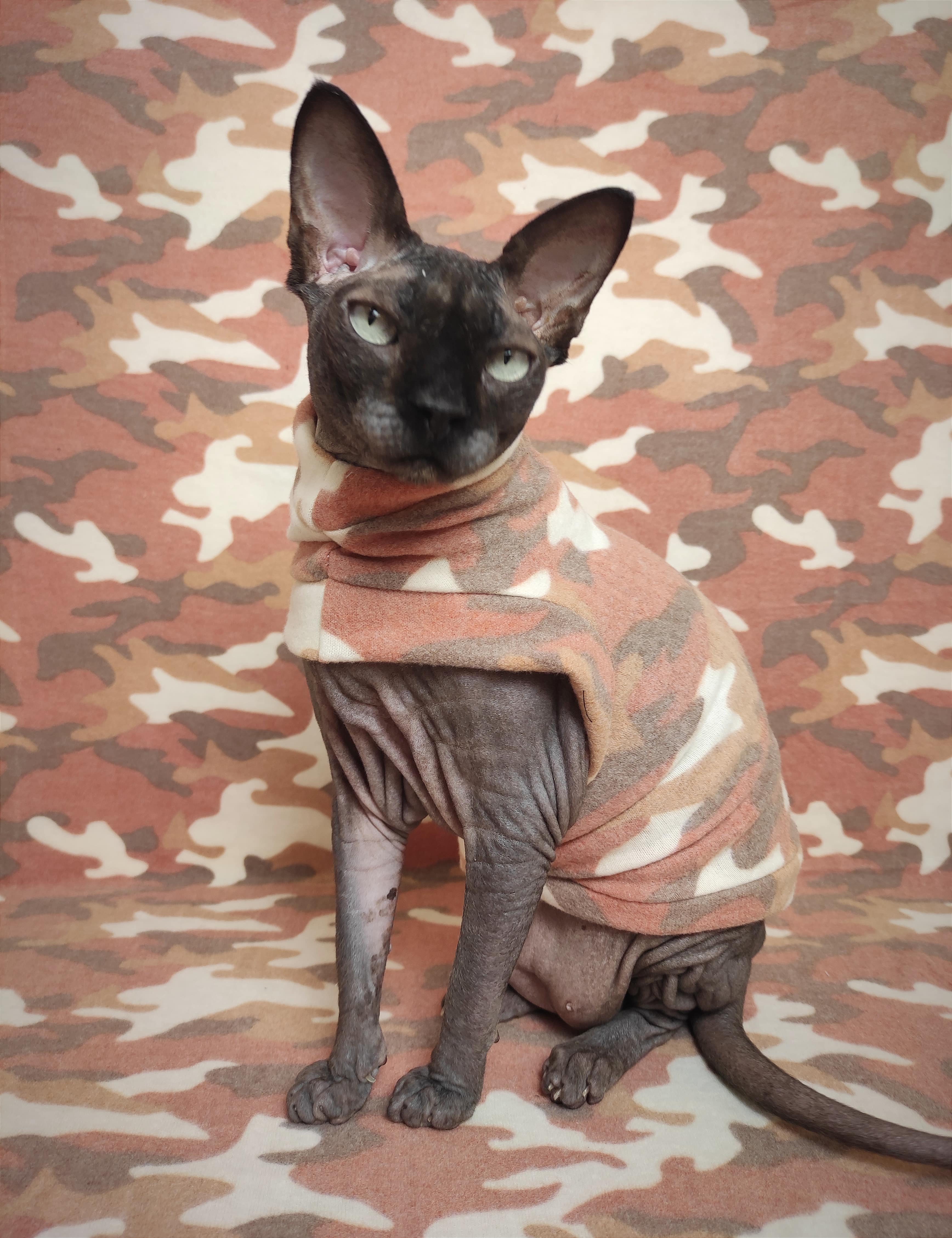 REGULAR size is for most adult hairless cats age 1 to 18. BAMBINO size fits hairless kittens age 6 months to 1 year and smaller adult cats. ANKLE BITER size fits kittens 15 weeks to 6 month olds. LIL NIPPER size fits hairless kittens age 8 weeks to 15 week olds for when they are with the breeder or for the trip home. Custom orders are welcome for larger and smaller cats - pricing is the same - $27.50