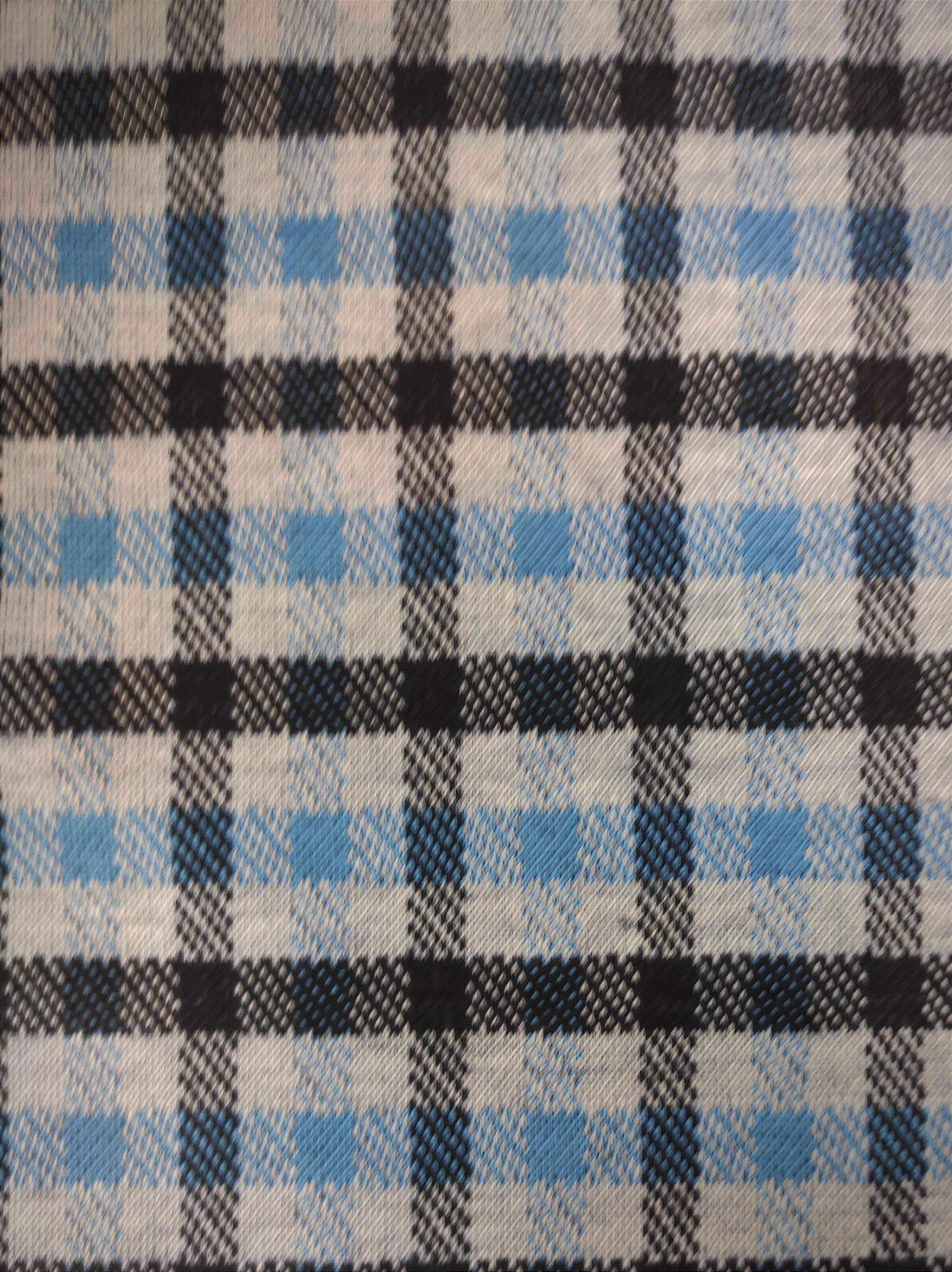 This is a lightweight plaid knit fabric with woven grey, blue and black pattern. Regular Size limited to only 7. Bambino Size limited to only 8. Ankle Biter Size limited to only 2. Lil Nipper size limited to only 2. No more will be made when they are gone.