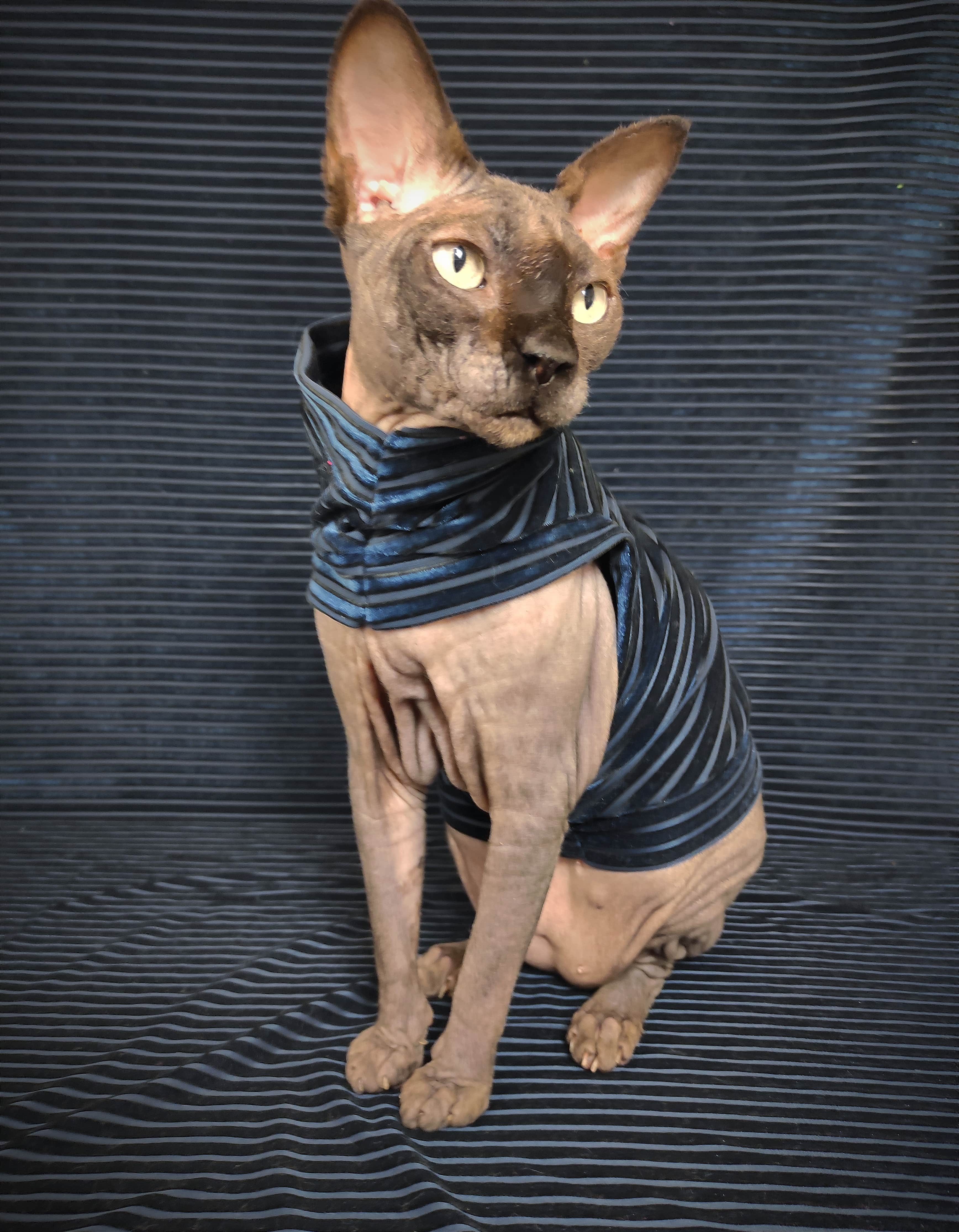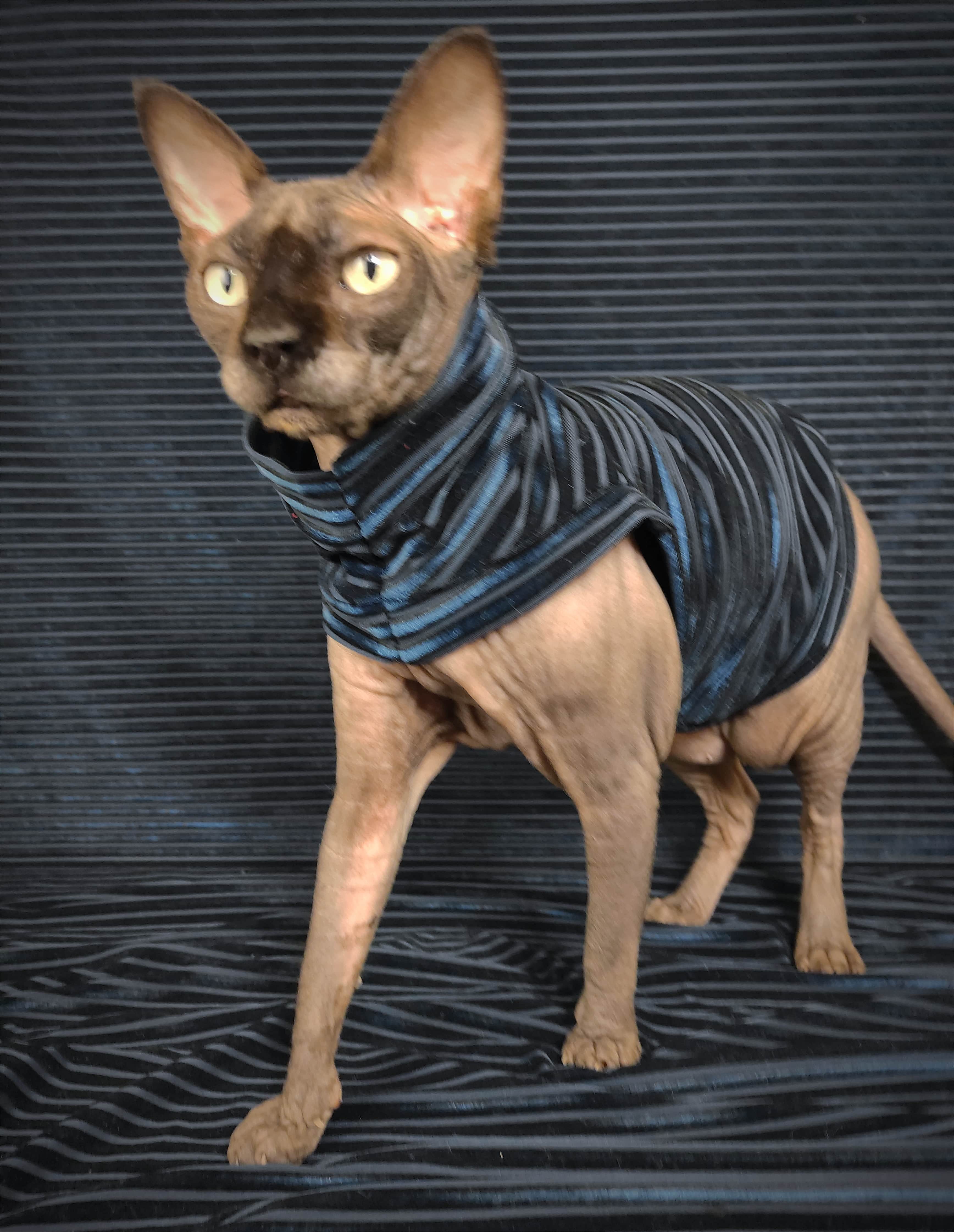 REGULAR size is for most adult hairless cats age 1 to 18. BAMBINO size fits hairless kittens age 6 months to 1 year and smaller adult cats. ANKLE BITER size fits kittens 15 weeks to 6 month olds. LIL NIPPER size fits hairless kittens age 8 weeks to 15 week olds for when they are with the breeder or for the trip home. Custom orders are welcome for larger and smaller cats - pricing is the same - $27.50
