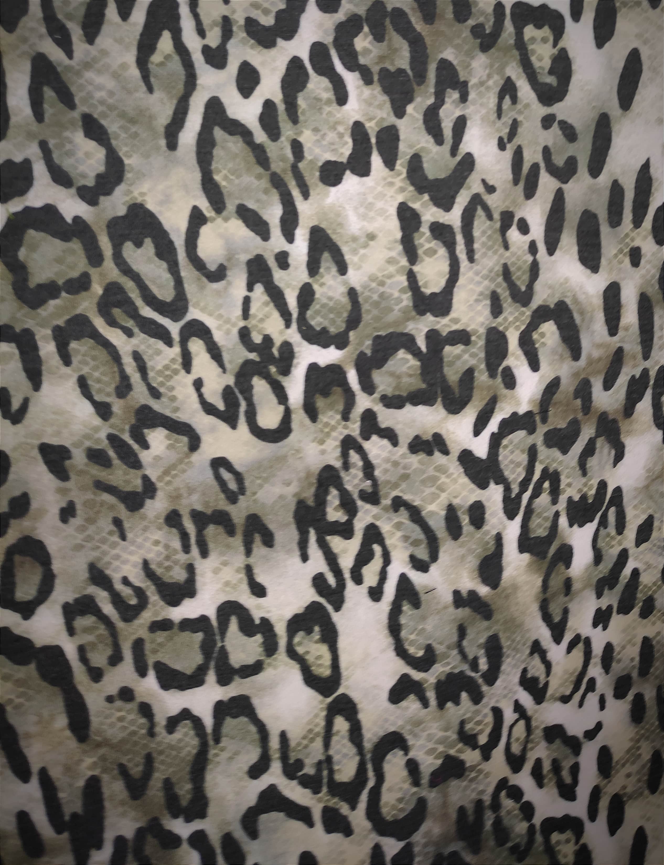 This is a comfy medium weight stretchy cotton blend fabric with printed snakeskin pattern under leopard print. Regular Size limited to only 8, Bambino Size is limited to only 8, Ankle Biter Size is limited to 2, Lil Nipper Size is limited to 2. No more will be made when they are gone.