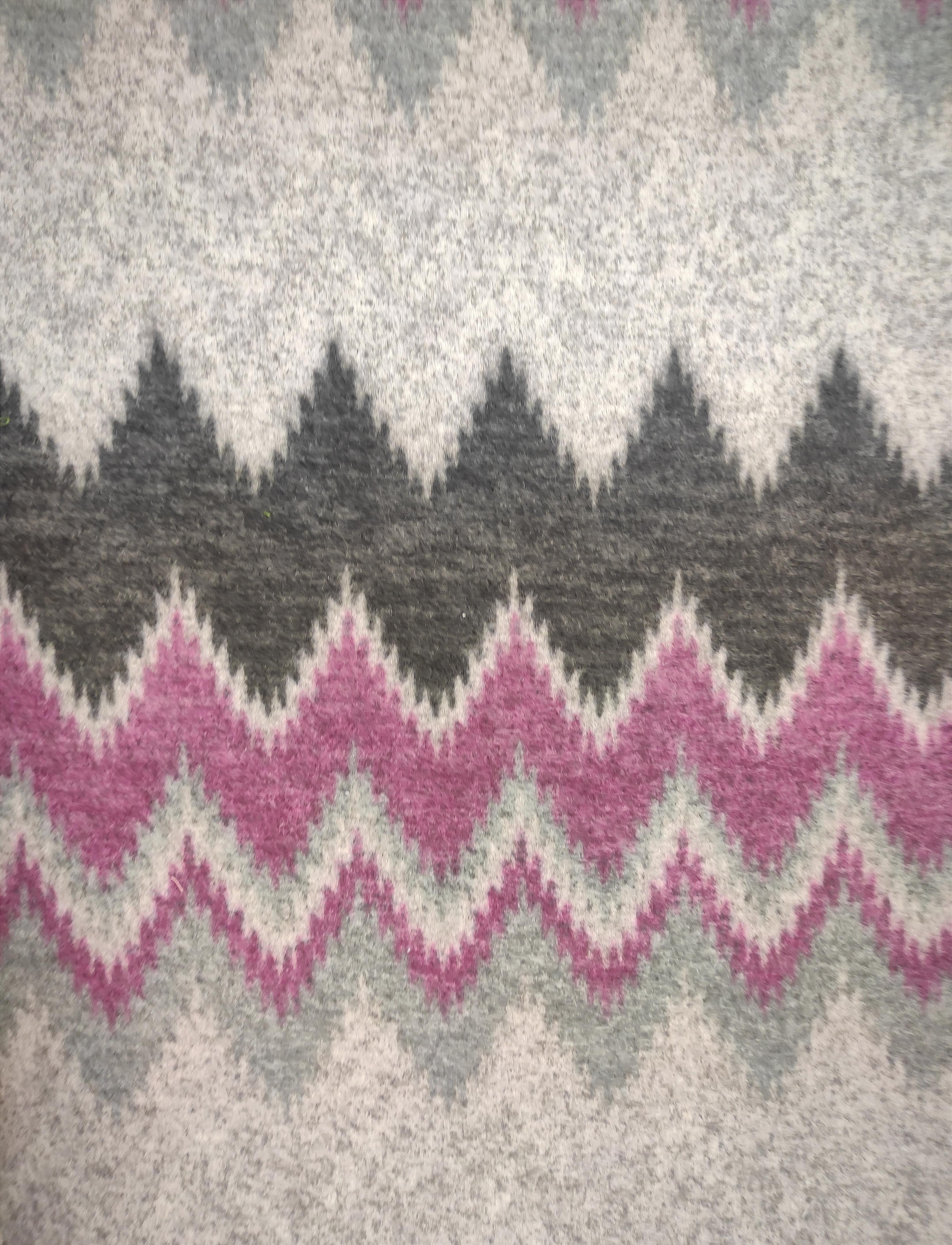 This is a beautiful lightweight fuzzy knit fabric with stretch that features a light and dark grey heather, purple and black zig zag pattern. Regular Size limited to only 9. Bambino Size is limited to only 7, Ankle Biter Size is limited to 2, Lil Nipper Size is limited to 2. No more will be made when they are gone.