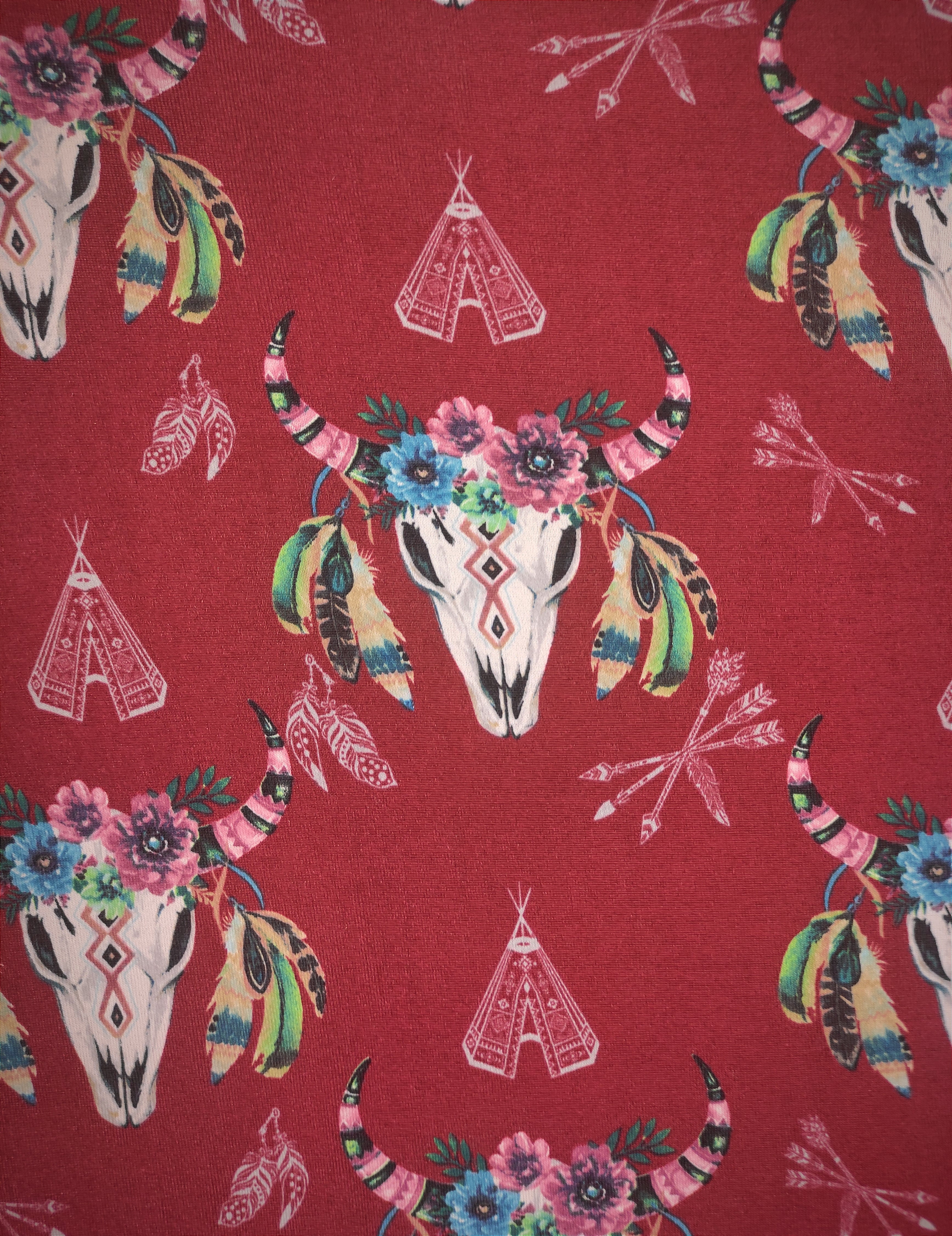This is a very stretchy lightweight knit fabric with printed southwestern motif. Regular Size limited to only 7. Bambino Size limited to only 8. Ankle Biter Size limited to only 2. Lil Nipper size limited to only 2. No more will be made when they are gone.