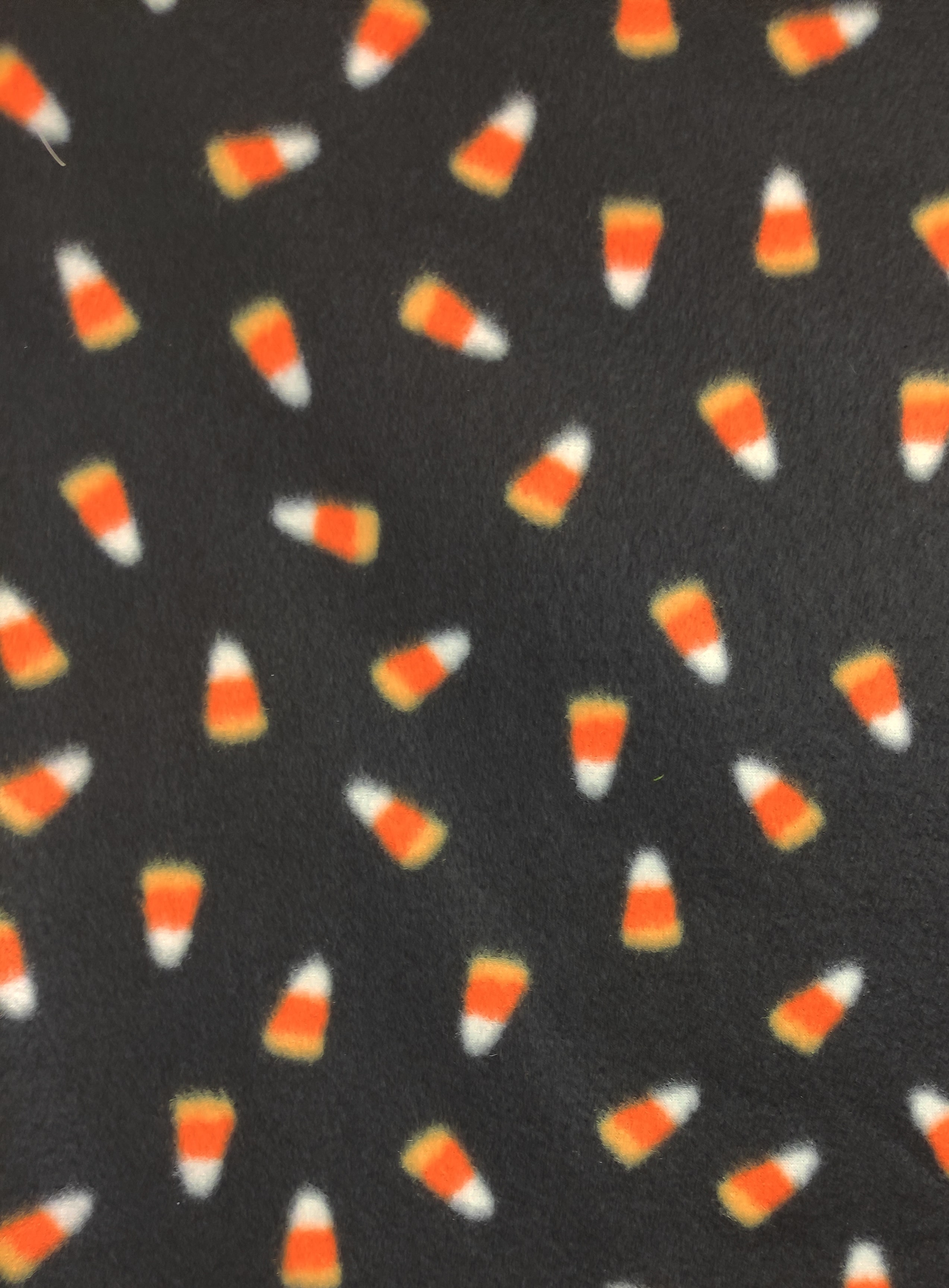 This is a soft medium weight stretchy fleece with candy corn on black background 😻