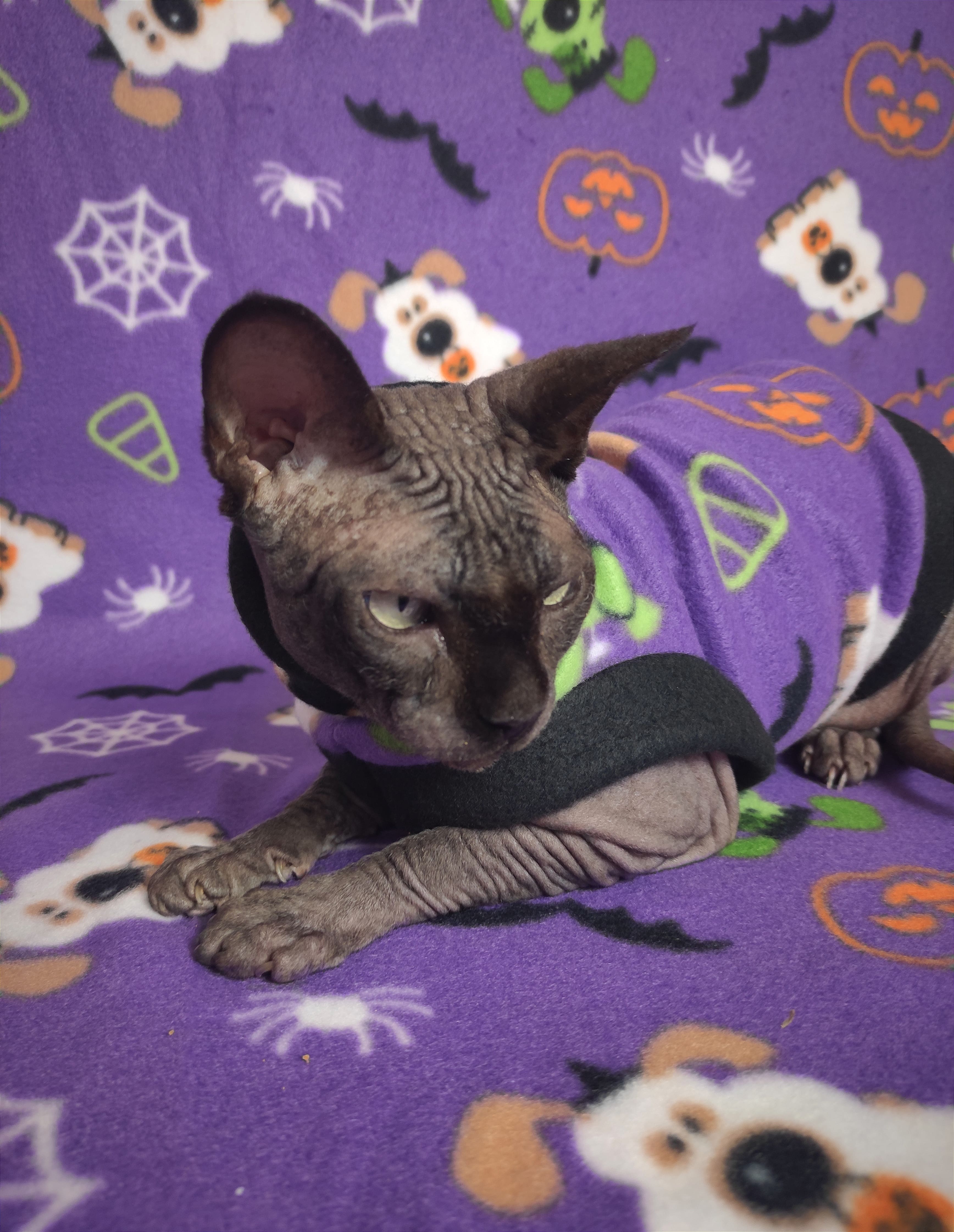 REGULAR size is for most adult hairless cats age 1 to 18. BAMBINO size fits hairless kittens age 6 months to 1 year and smaller adult cats. LIL NIPPER size fits hairless kittens age 8 weeks to 15 week olds for when they are with the breeder or for the trip home. Custom orders are welcome for larger and smaller cats - pricing is the same - $27.50