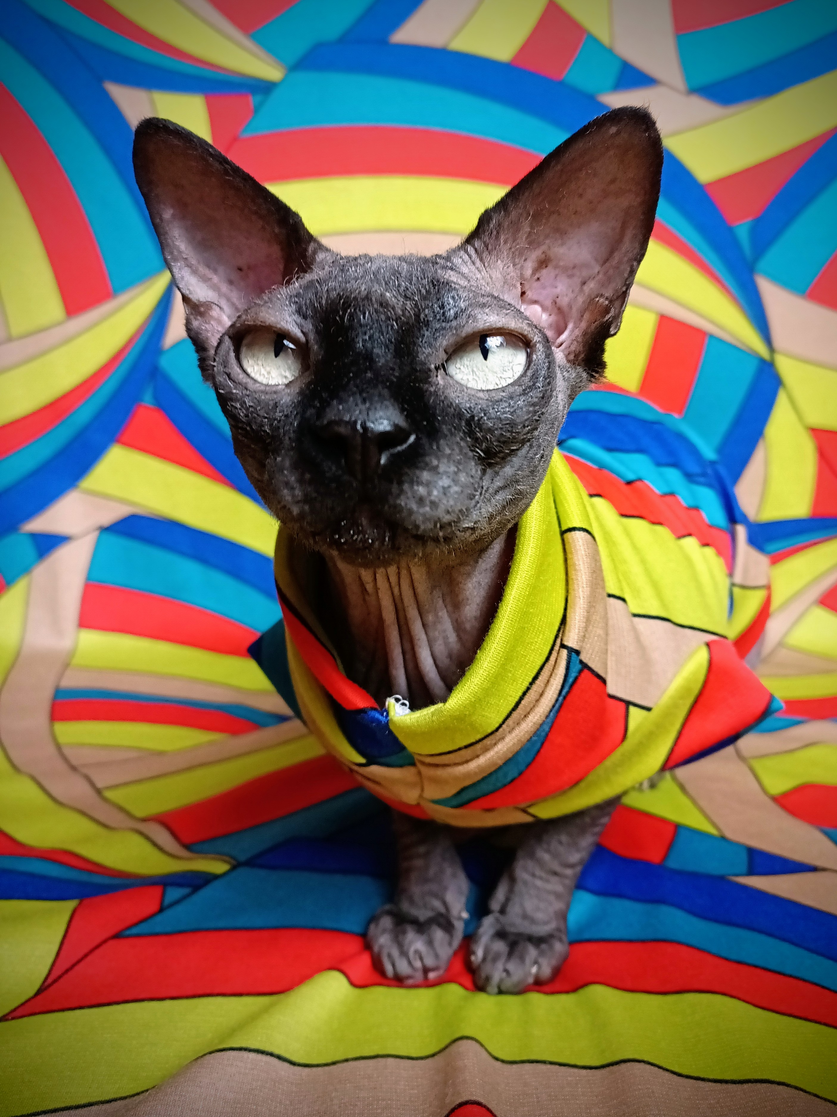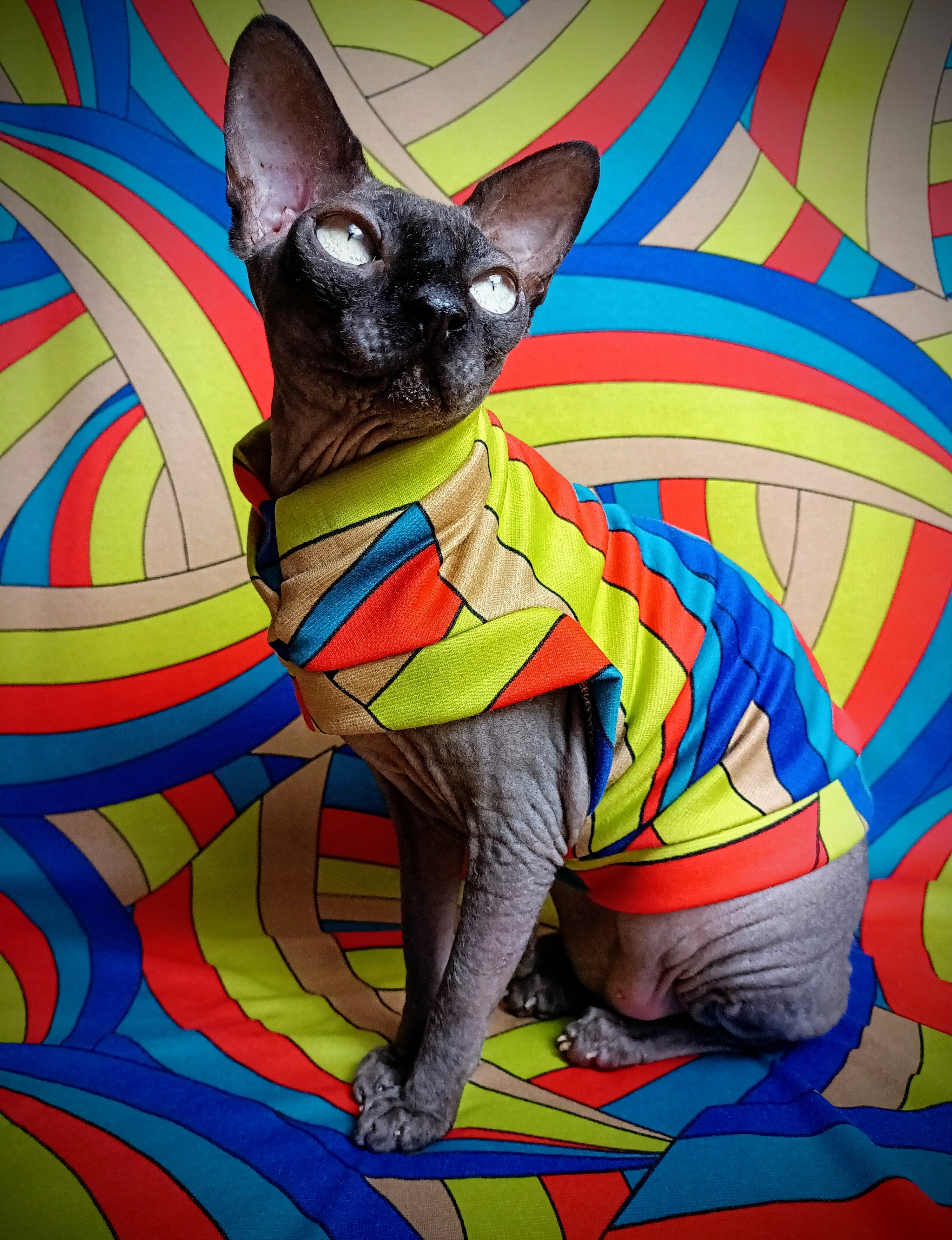 REGULAR size is for most adult hairless cats age 1 to 18. BAMBINO size fits hairless kittens age 6 months to 1 year and smaller adult cats. ANKLE BITER size fits kittens 15 weeks to 6 month olds. LIL NIPPER size fits hairless kittens age 8 weeks to 15 week olds for when they are with the breeder or for the trip home. Custom orders are welcome for larger and smaller cats - pricing is the same - $27.50