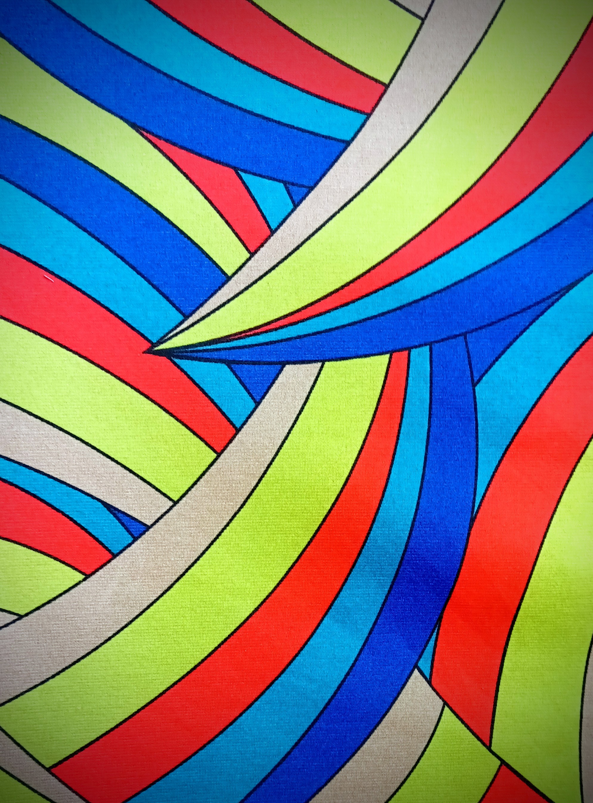 This is a beautiful and comfy medium weight stretchy poly blend fabric with printed abstract wave design in bright colors. Size limited to only 8, Bambino Size is limited to only 8, Ankle Biter Size is limited to 2, Lil Nipper Size is limited to 2. No more will be made when they are gone.