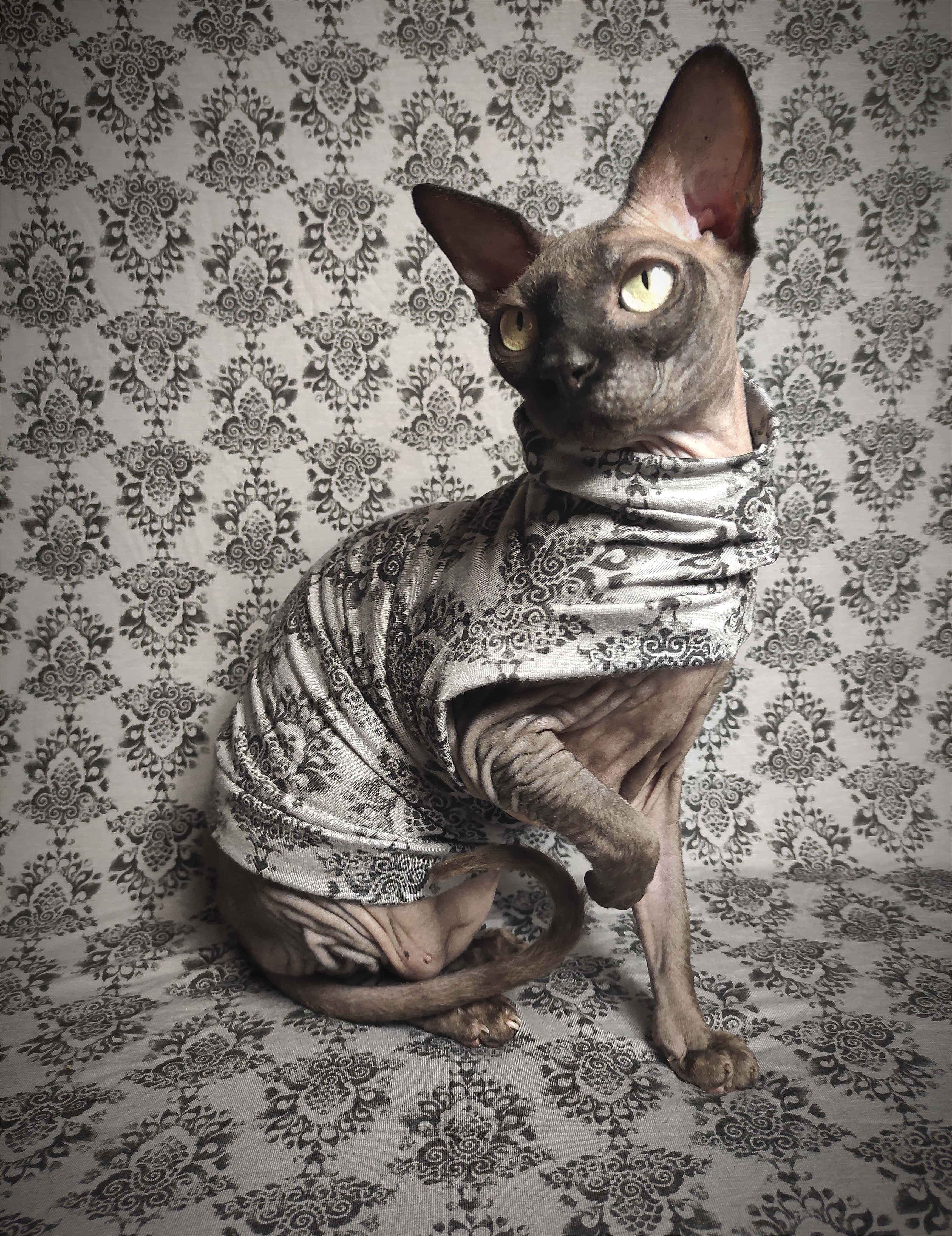 REGULAR size is for most adult hairless cats age 1 to 18. BAMBINO size fits hairless kittens age 6 months to 1 year and smaller adult cats. ANKLE BITER size fits kittens 15 weeks to 6 month olds. LIL NIPPER size fits hairless kittens age 8 weeks to 15 week olds for when they are with the breeder or for the trip home. Custom orders are welcome for larger and smaller cats - pricing is the same - $27.50