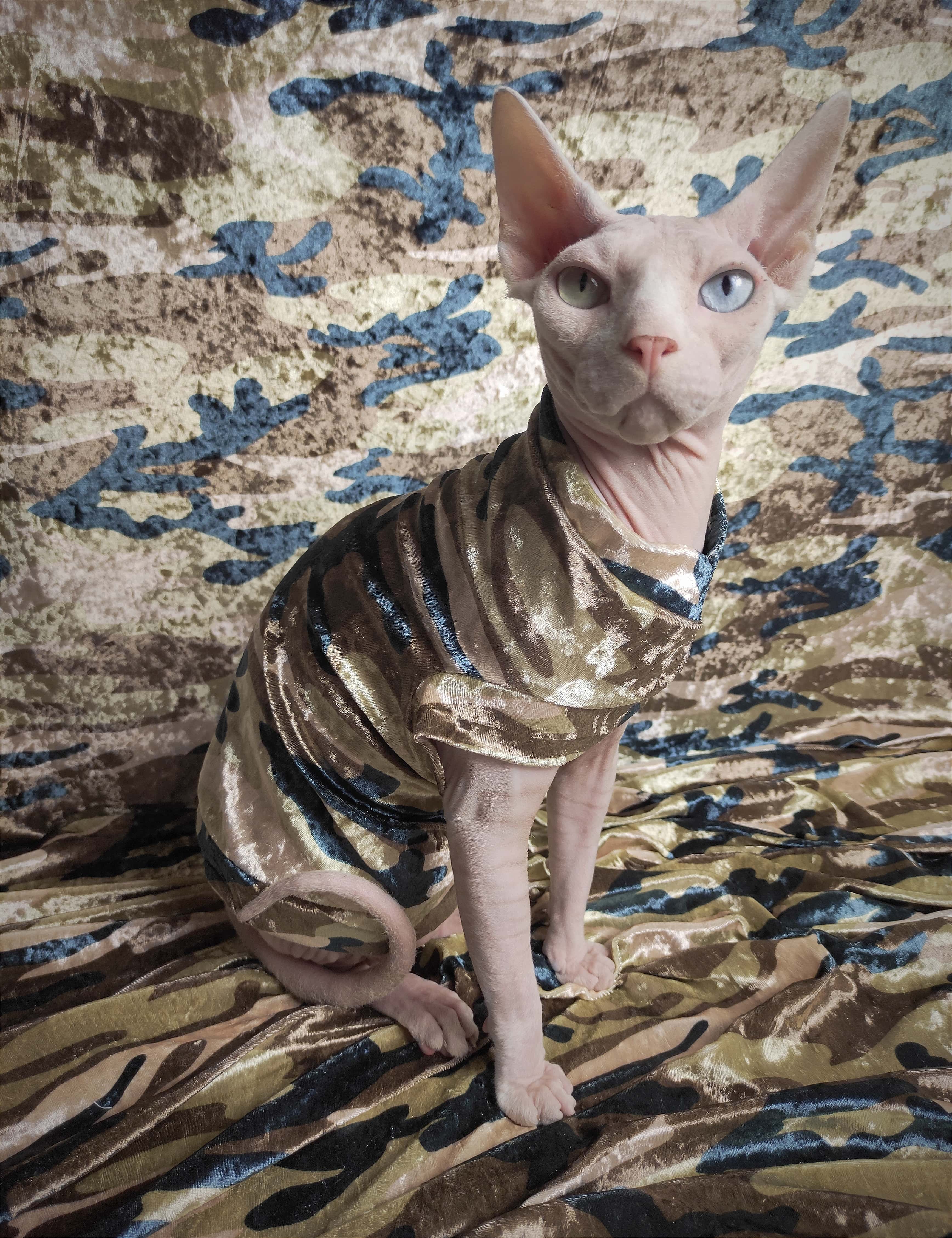 REGULAR size is for most adult hairless cats age 1 to 18. BAMBINO size fits hairless kittens age 6 months to 1 year and smaller adult cats. ANKLE BITER size fits kittens 15 weeks to 6 month olds. LIL NIPPER size fits hairless kittens age 8 weeks to 15 week olds for when they are with the breeder or for the trip home. Custom orders are welcome for larger and smaller cats - pricing is the same - $27.50
