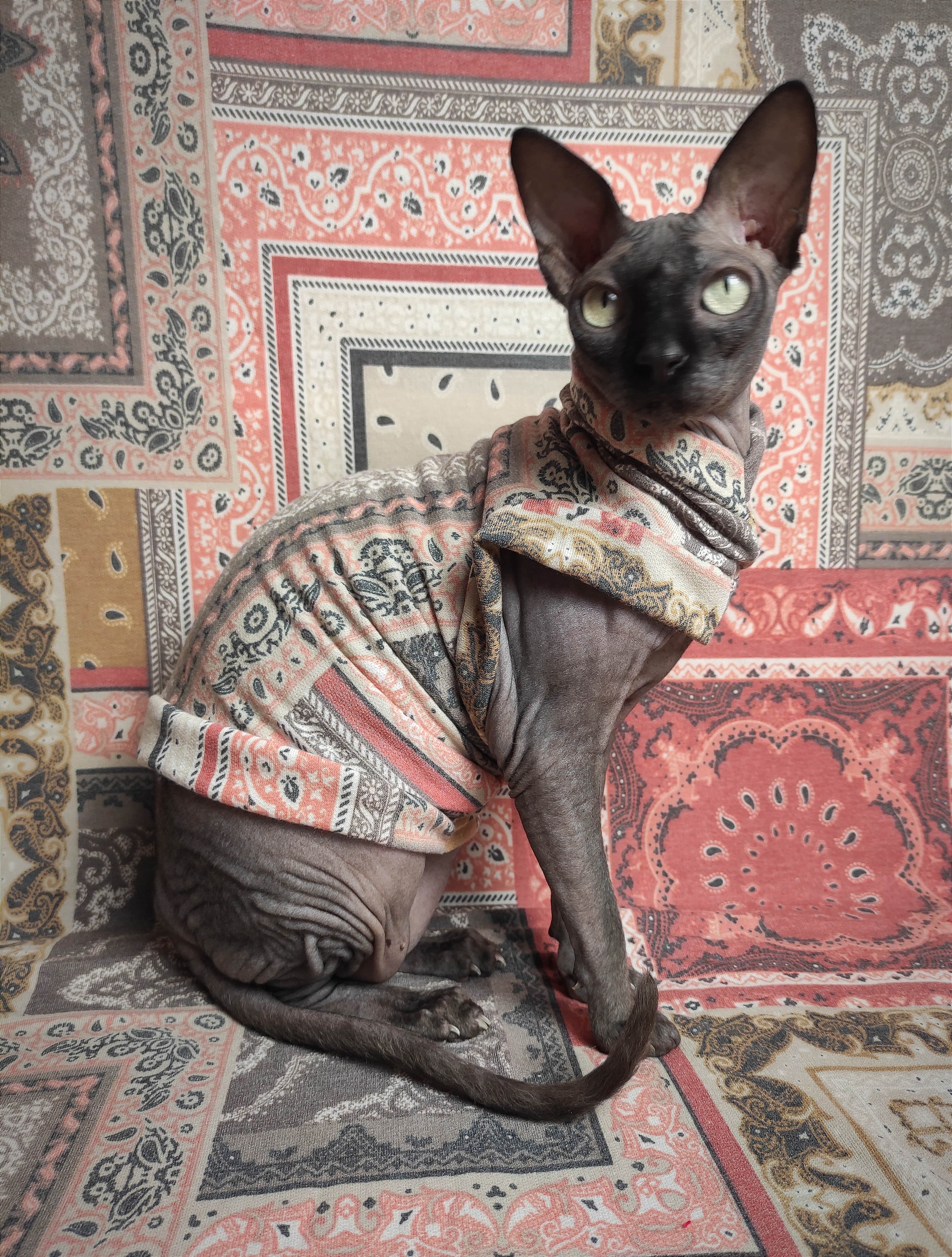 REGULAR size is for most adult hairless cats age 1 to 18. BAMBINO size fits hairless kittens age 6 months to 1 year and smaller adult cats. ANKLE BITER size fits kittens 15 weeks to 6 month olds. LIL NIPPER size fits hairless kittens age 8 weeks to 15 week olds for when they are with the breeder or for the trip home. Custom orders are welcome for larger and smaller cats - pricing is the same - $27.50