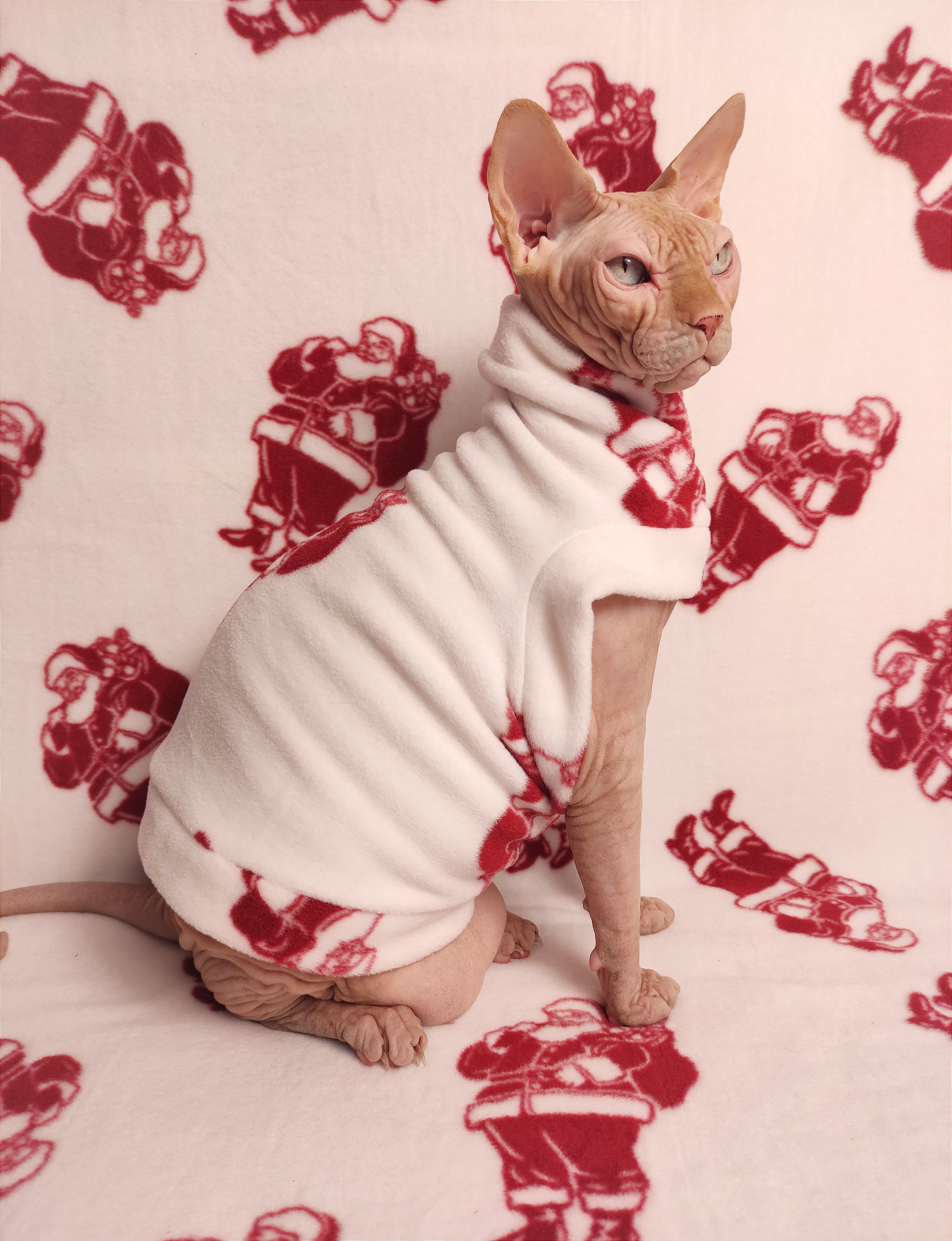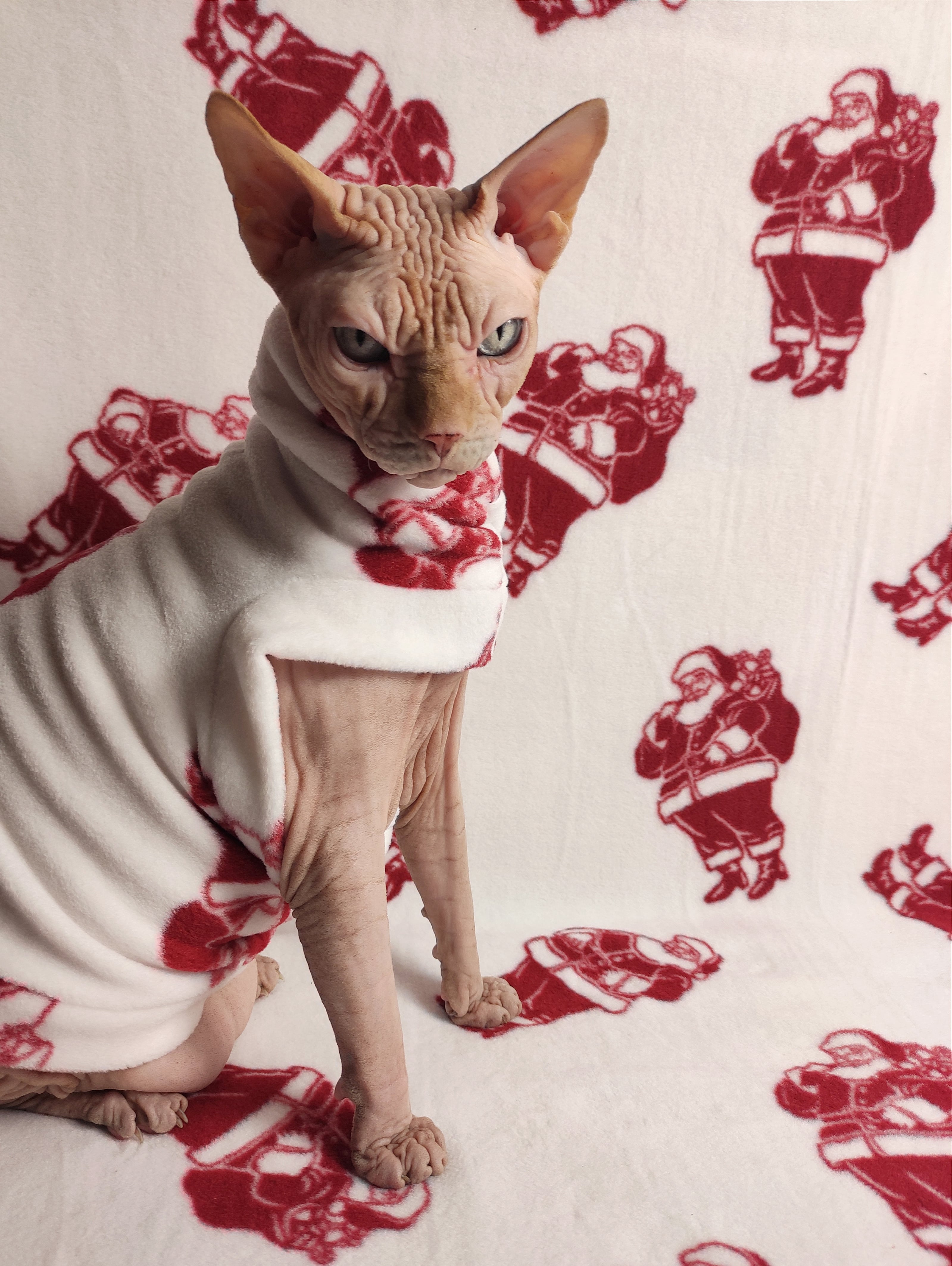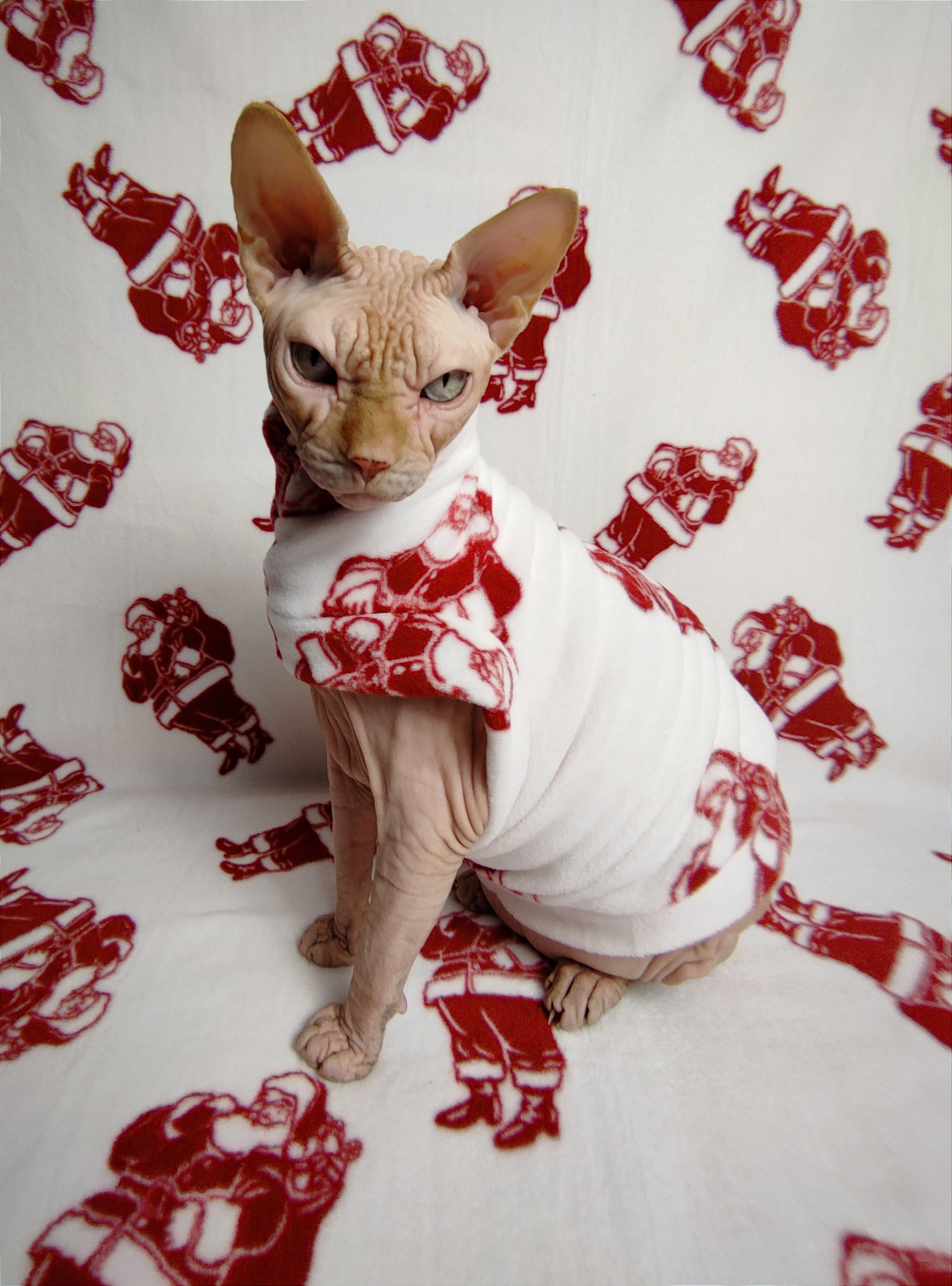 REGULAR size is for most adult hairless cats age 1 to 18. BAMBINO size fits hairless kittens age 6 months to 1 year and smaller adult cats. LIL NIPPER size fits hairless kittens age 8 weeks to 15 week olds for when they are with the breeder or for the trip home. Custom orders are welcome for larger and smaller cats - pricing is the same - $27.50
