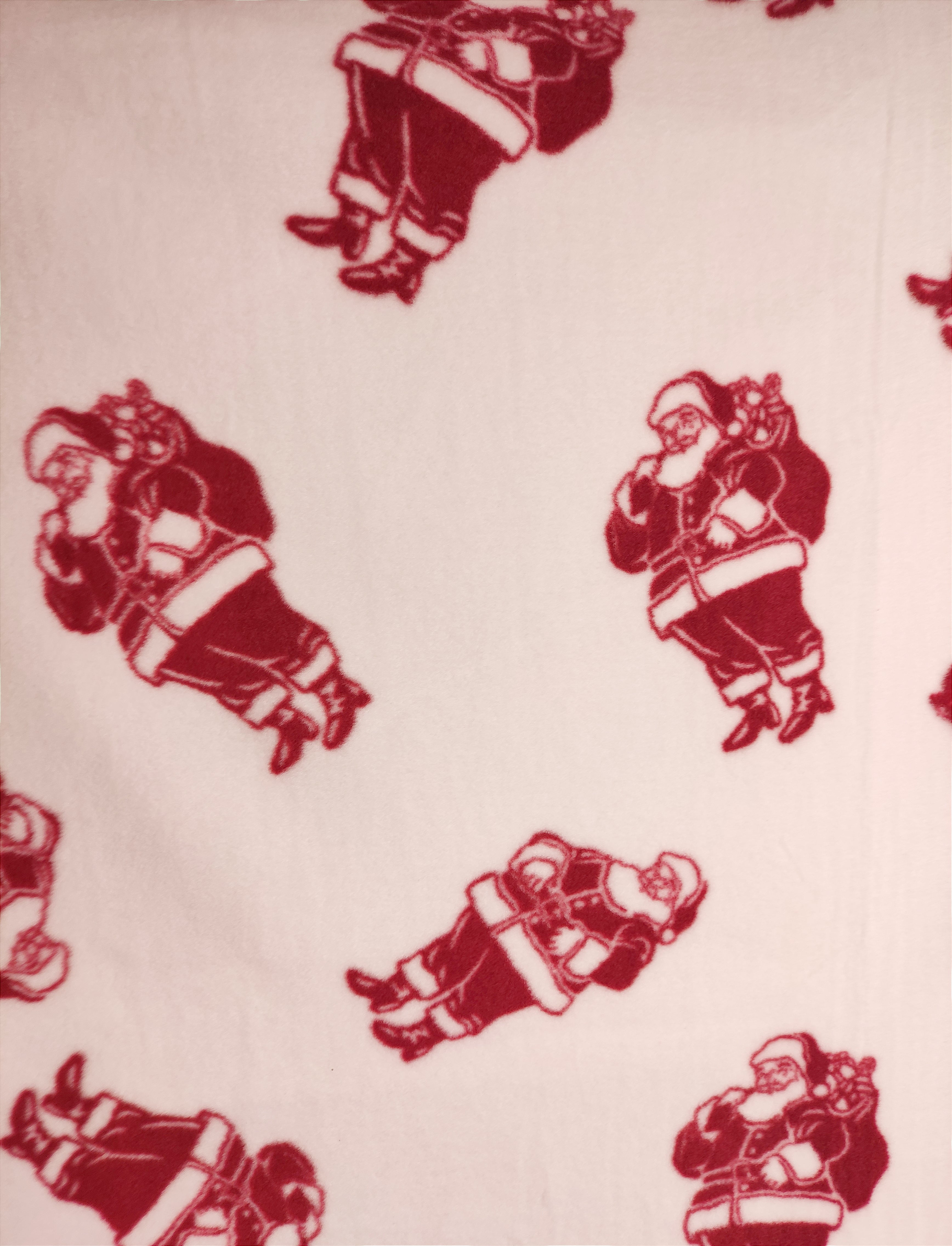 This is a very soft medium weight stretchy luxe fleece with red Santa's on bright white background. The pattern is large and all Swag will be very different.