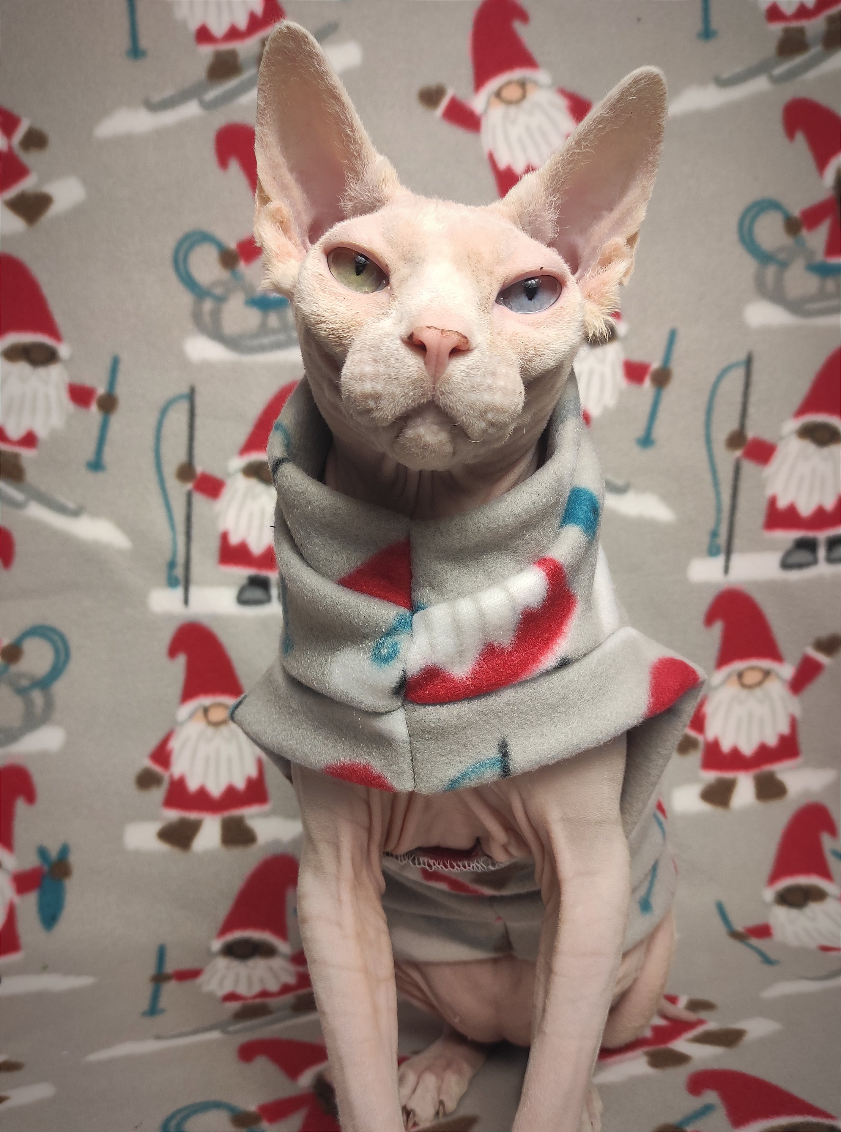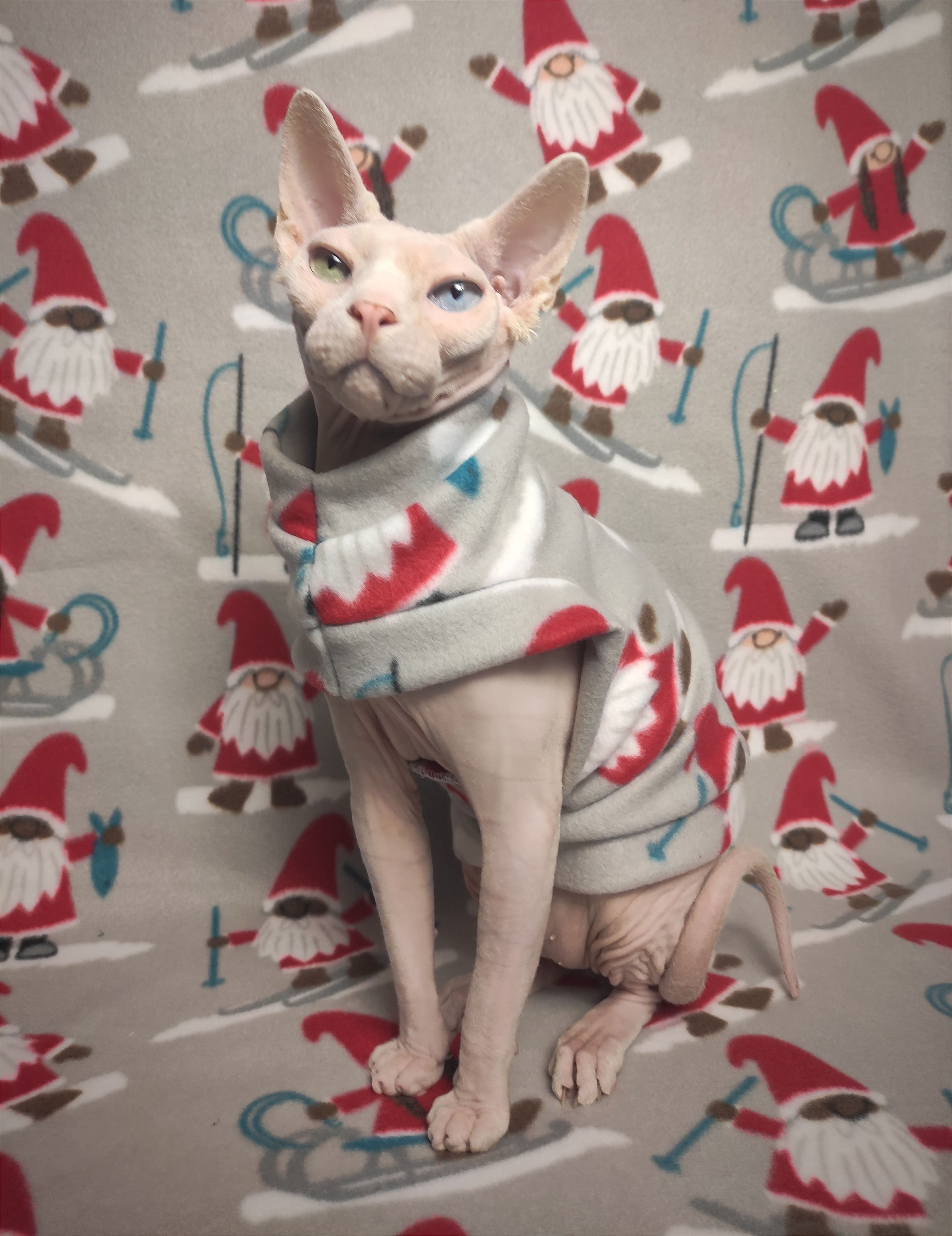 REGULAR size is for most adult hairless cats age 1 to 18. BAMBINO size fits hairless kittens age 6 months to 1 year and smaller adult cats. LIL NIPPER size fits hairless kittens age 8 weeks to 15 week olds for when they are with the breeder or for the trip home. Custom orders are welcome for larger and smaller cats - pricing is the same - $27.50