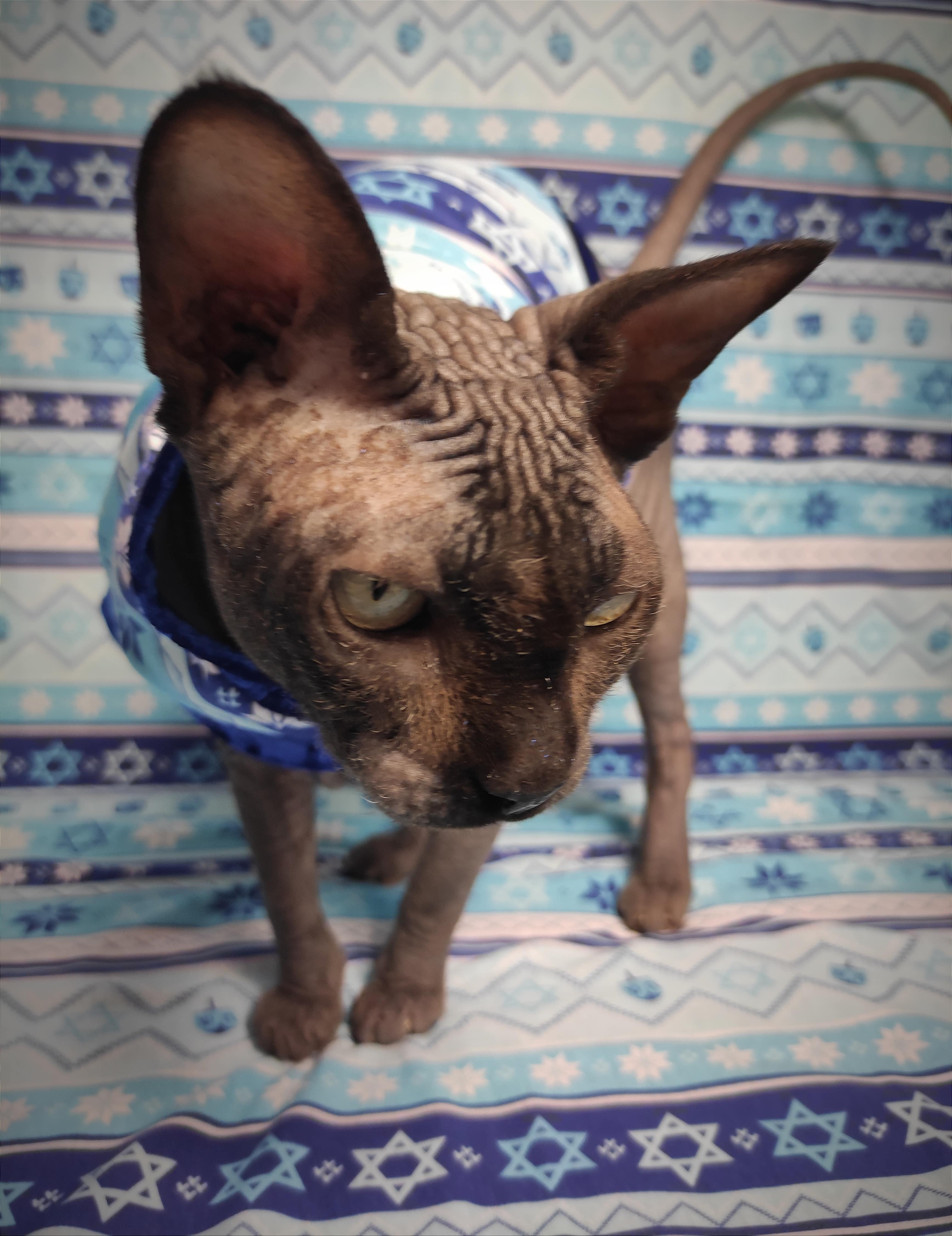 REGULAR size is for most adult hairless cats age 1 to 18. BAMBINO size fits hairless kittens age 6 months to 1 year and smaller adult cats. ANKLE BITER size fits kittens 15 weeks to 6 month olds. LIL NIPPER size fits hairless kittens age 8 weeks to 15 week olds for when they are with the breeder or for the trip home. Custom orders are welcome for larger and smaller cats - pricing is the same - $27.50