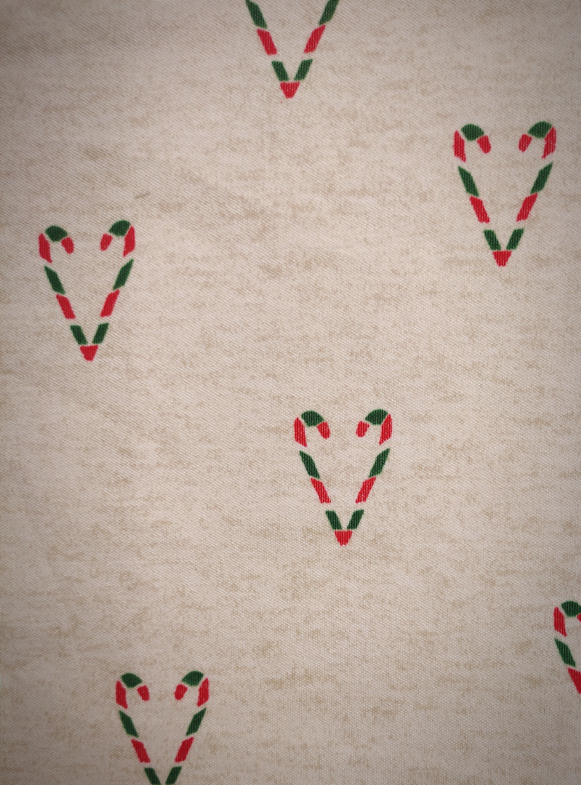 This is an amazing stretchy lightweight cotton spandex heather fabric printed with red and green candy canes that make up hearts with red velvet trim.😻 Regular Size limited to only 8, Bambino Size is limited to only 7, Ankle Biter Size is limited to 2. Lil Nipper Size is limited to 2. No more will be made when they are gone.