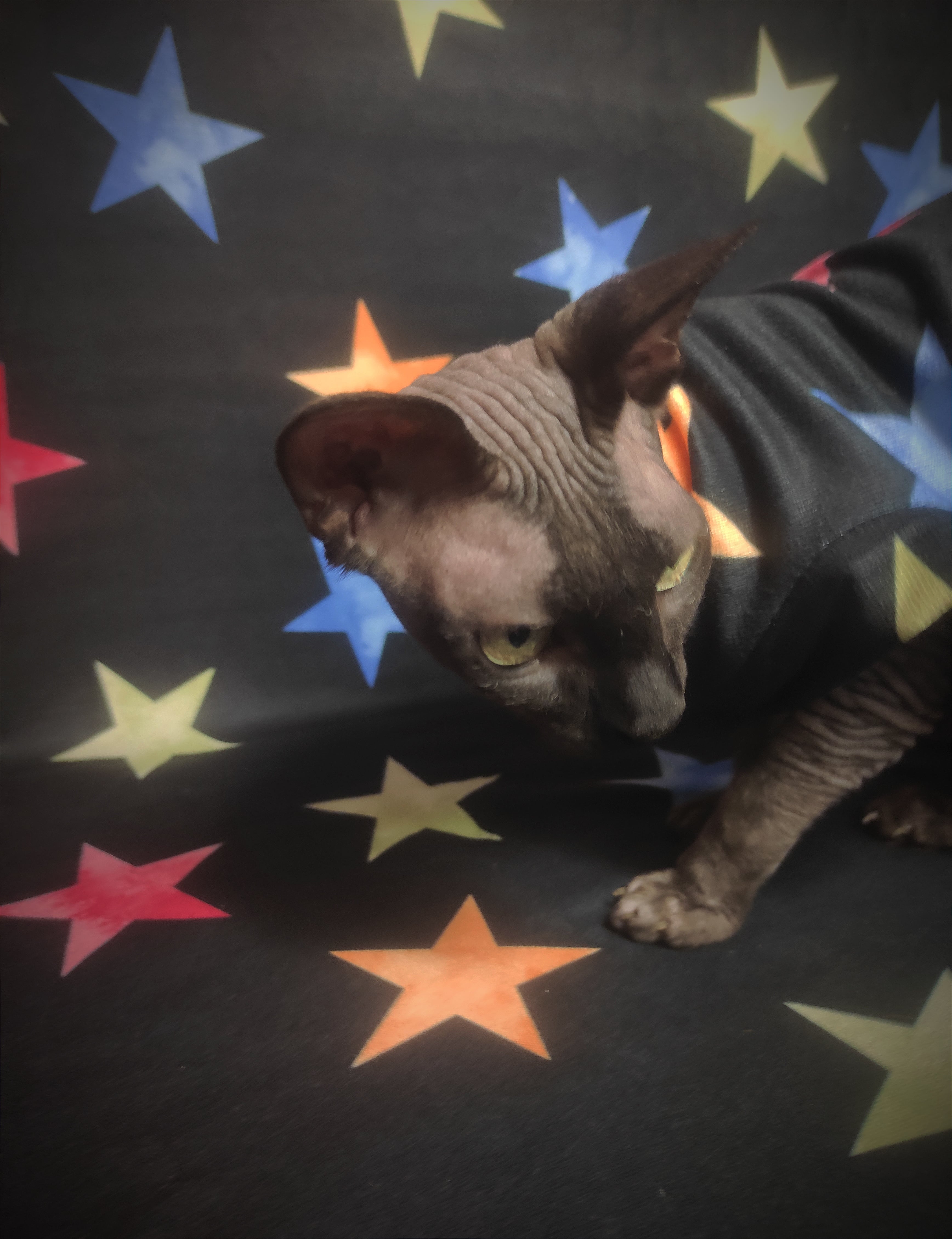 REGULAR size is for most adult hairless cats age 1 to 18. BAMBINO size fits hairless kittens age 6 months to 1 year and smaller adult cats. ANKLE BITER size fits hairless kittens 15 week to 6 month olds. LIL NIPPER size fits hairless kittens age 8 weeks to 15 week olds for when they are with the breeder or for the trip home. Custom orders are welcome for larger and smaller cats - pricing is the same - $27.50