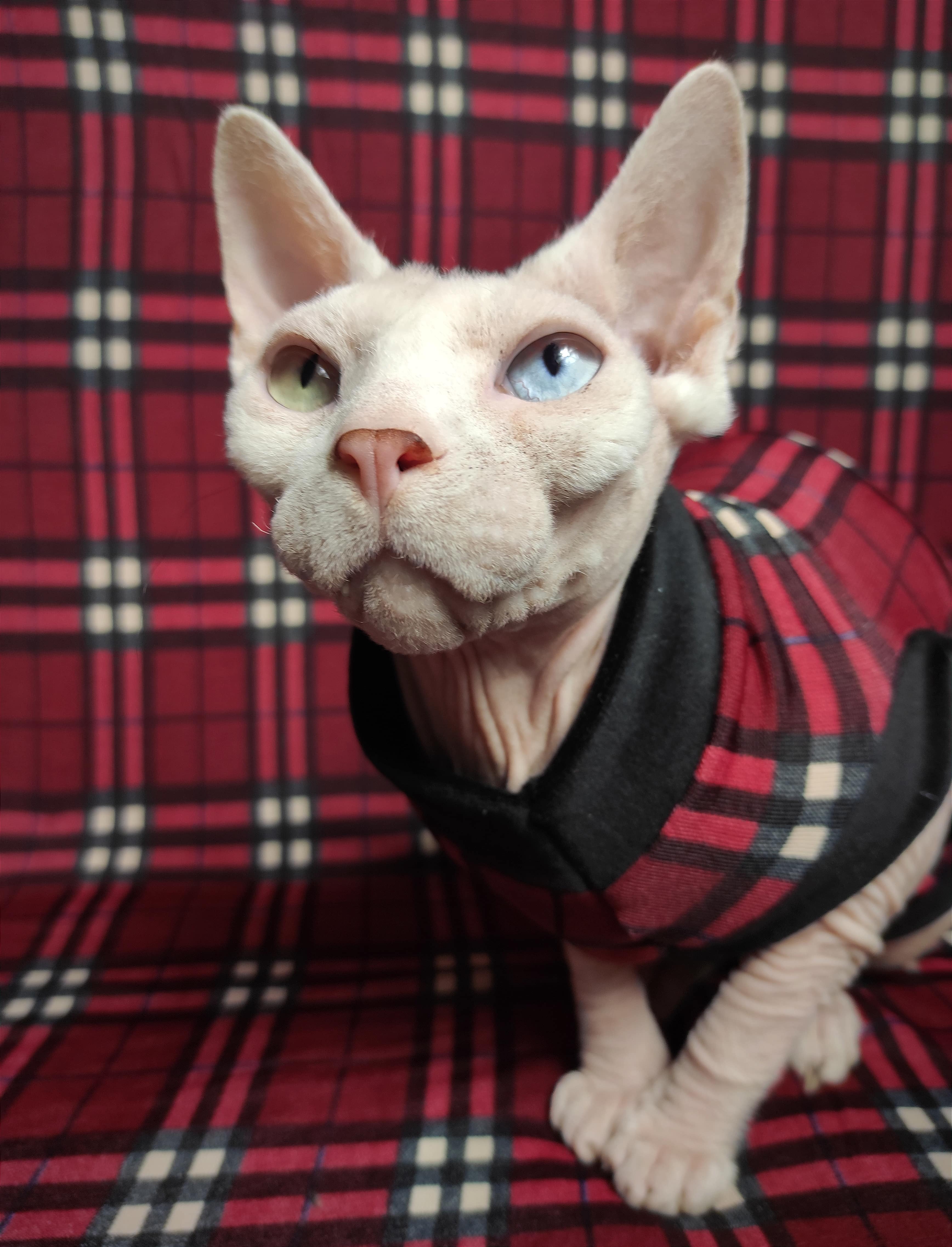 REGULAR size is for most adult hairless cats age 1 to 18. BAMBINO size fits hairless kittens age 6 months to 1 year and smaller adult cats. ANKLE BITER size fits kittens 15 weeks to 6 month olds. LIL NIPPER size fits hairless kittens age 8 weeks to 15 week olds for when they are with the breeder or for the trip home. Custom orders are welcome for larger and smaller cats - pricing is the same - $27.50
