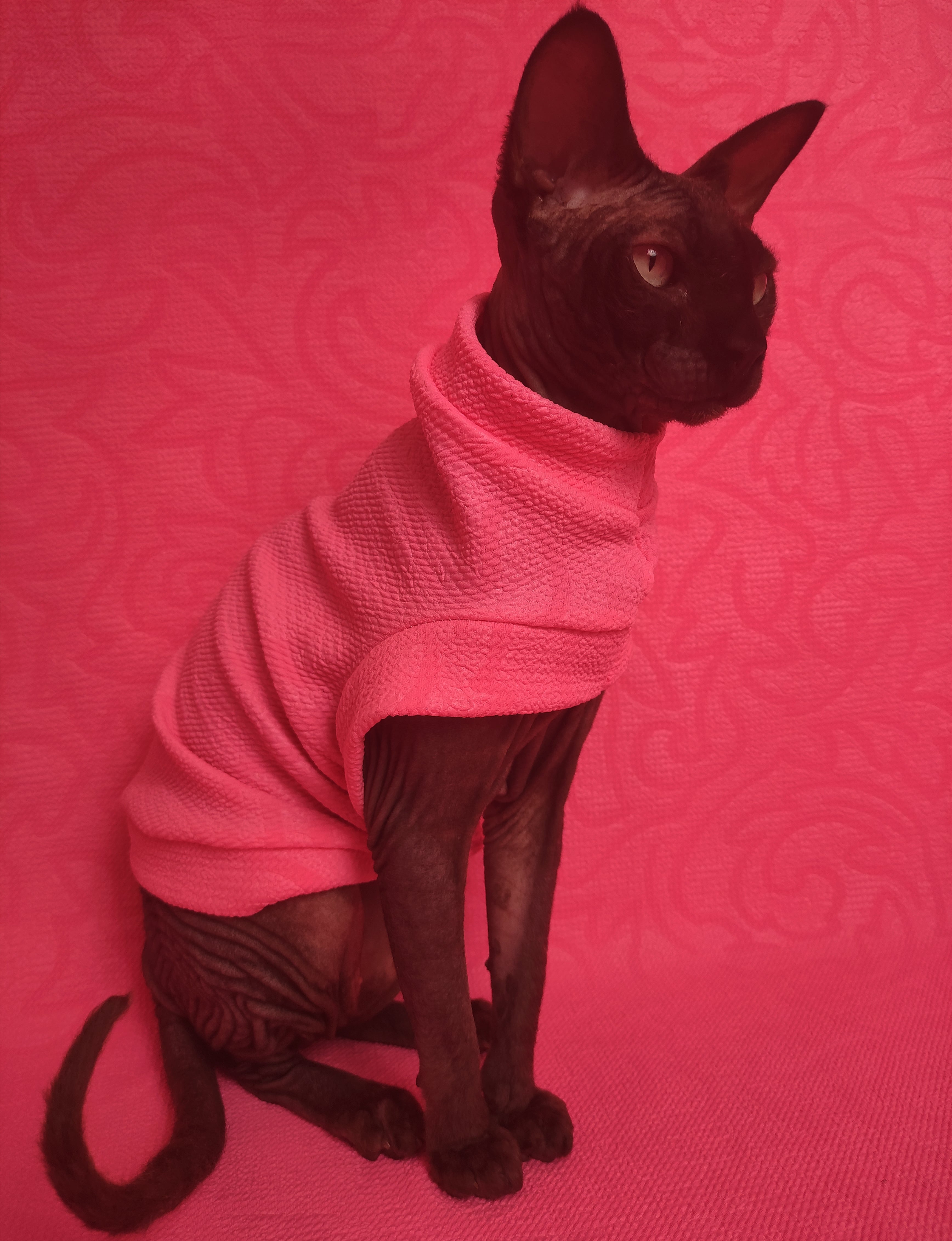 REGULAR size is for most adult hairless cats age 1 to 18. BAMBINO size fits hairless kittens age 6 months to 1 year and smaller adult cats. ANKLE BITER size fits kittens 15 weeks to 6 month olds. LIL NIPPER size fits hairless kittens age 8 weeks to 15 week olds for when they are with the breeder or for the trip home. Custom orders are welcome for larger and smaller cats - pricing is the same - $27.50