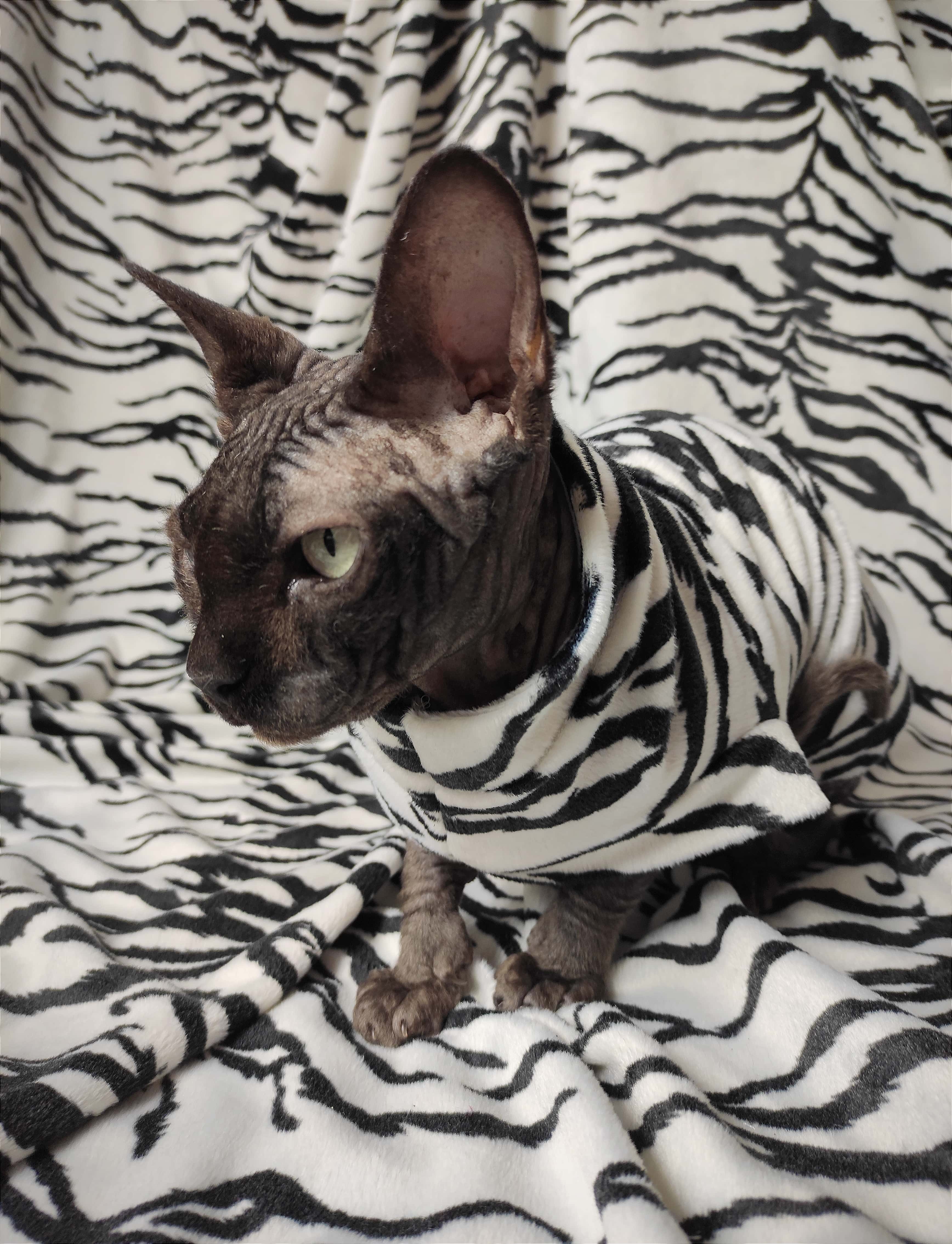 REGULAR size is for most adult hairless cats age 1 to 18. BAMBINO size fits hairless kittens age 6 months to 1 year and smaller adult cats. ANKLE BITER size fits kittens 15 weeks to 6 month olds. LIL NIPPER size fits hairless kittens age 8 weeks to 15 week olds for when they are with the breeder or for the trip home. Custom orders are welcome for larger and smaller cats - pricing is the same - $27.50