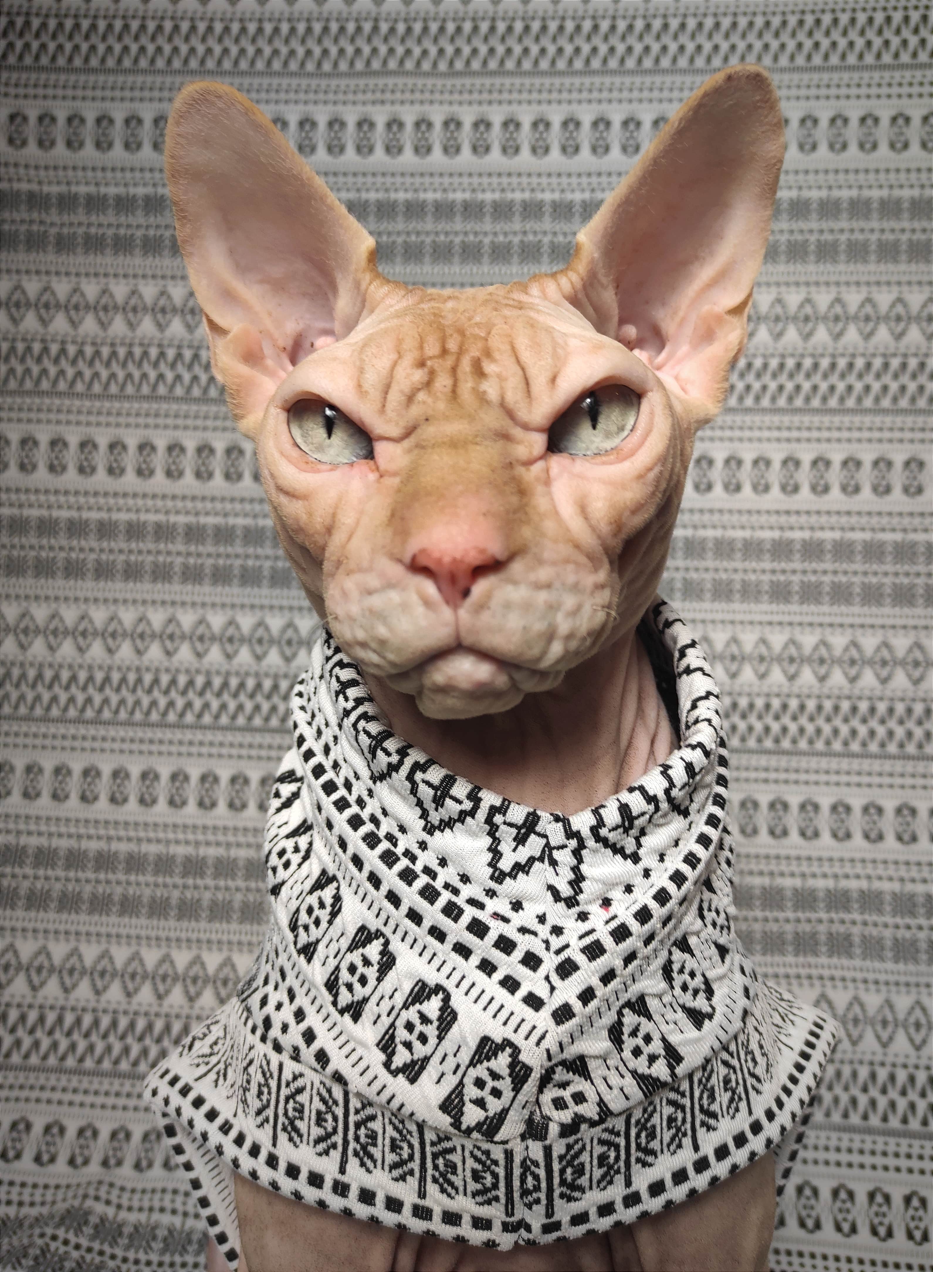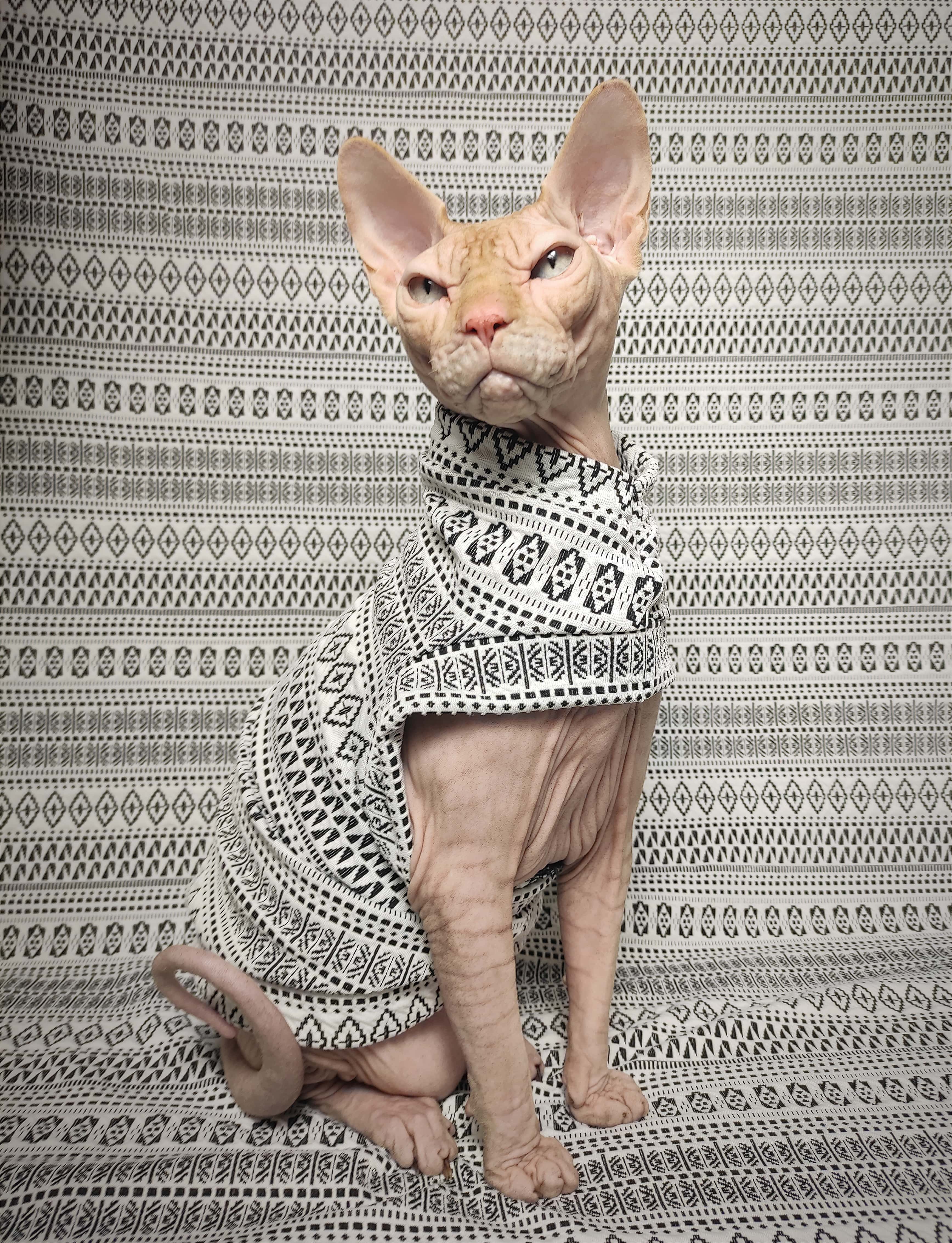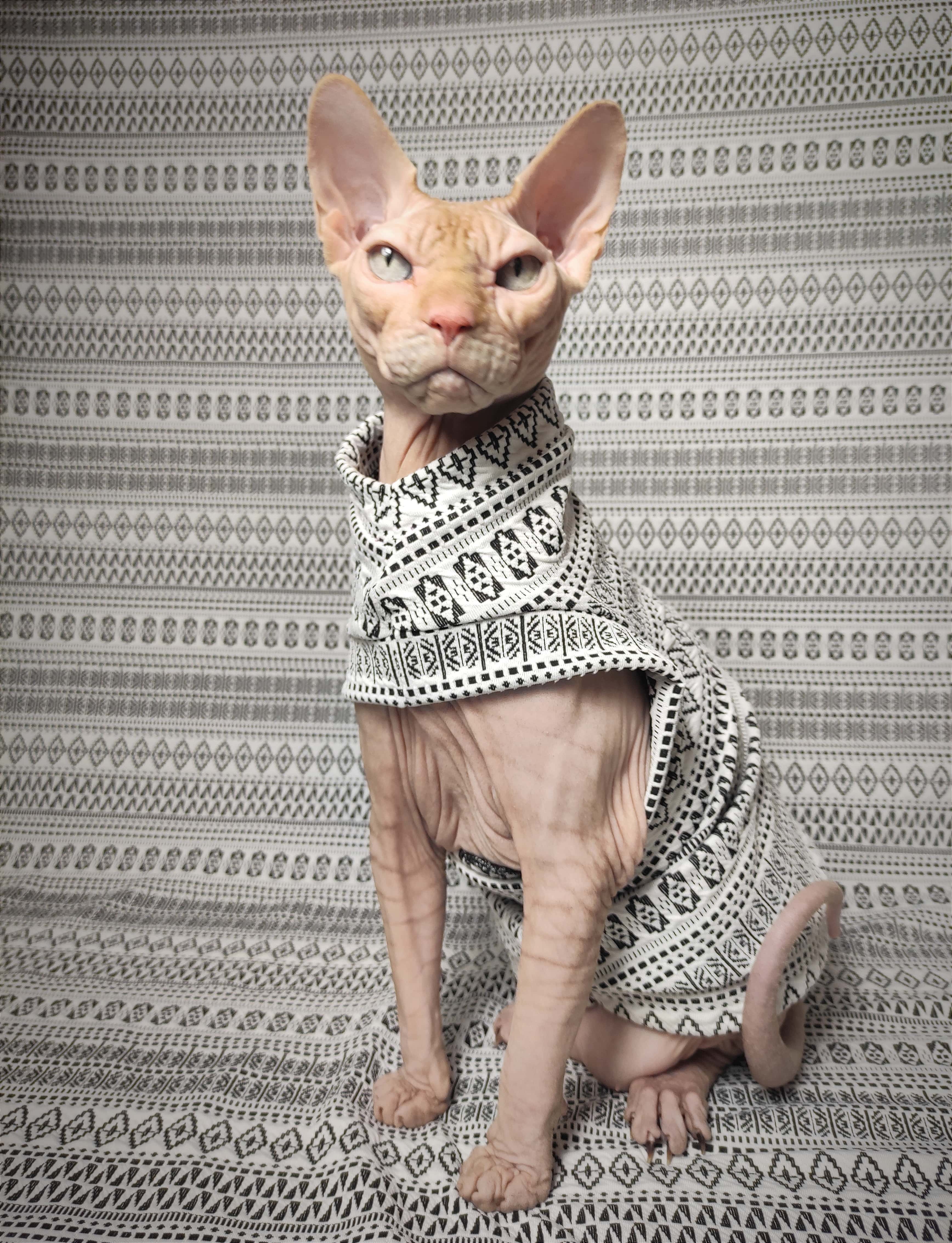 REGULAR size is for most adult hairless cats age 1 to 18. BAMBINO size fits hairless kittens age 6 months to 1 year and smaller adult cats. ANKLE BITER size fits hairless kittens 15 week to 6 month olds. LIL NIPPER size fits hairless kittens age 8 weeks to 15 week olds for when they are with the breeder or for the trip home. Custom orders are welcome for larger and smaller cats - pricing is the same - $27.50
