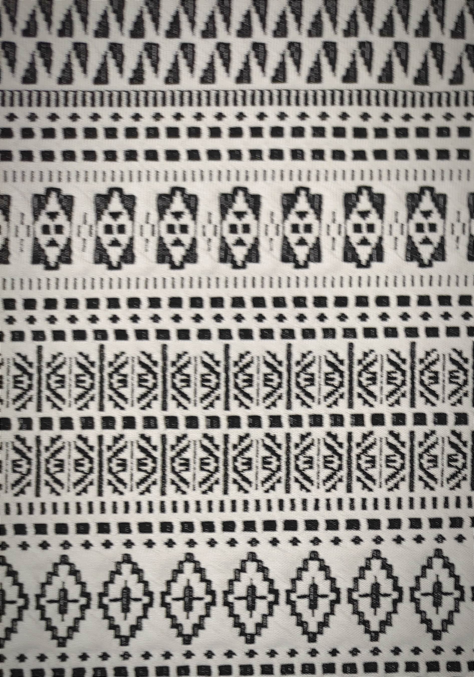 This is a stretchy polyester black and white woven textured Mesoamerican pattern. Regular Size limited to only 9. Bambino Size limited to only 10. Ankle Biter Size limited to 2 and Lil Nipper Size limited to 2. No more will be made when they are gone.
