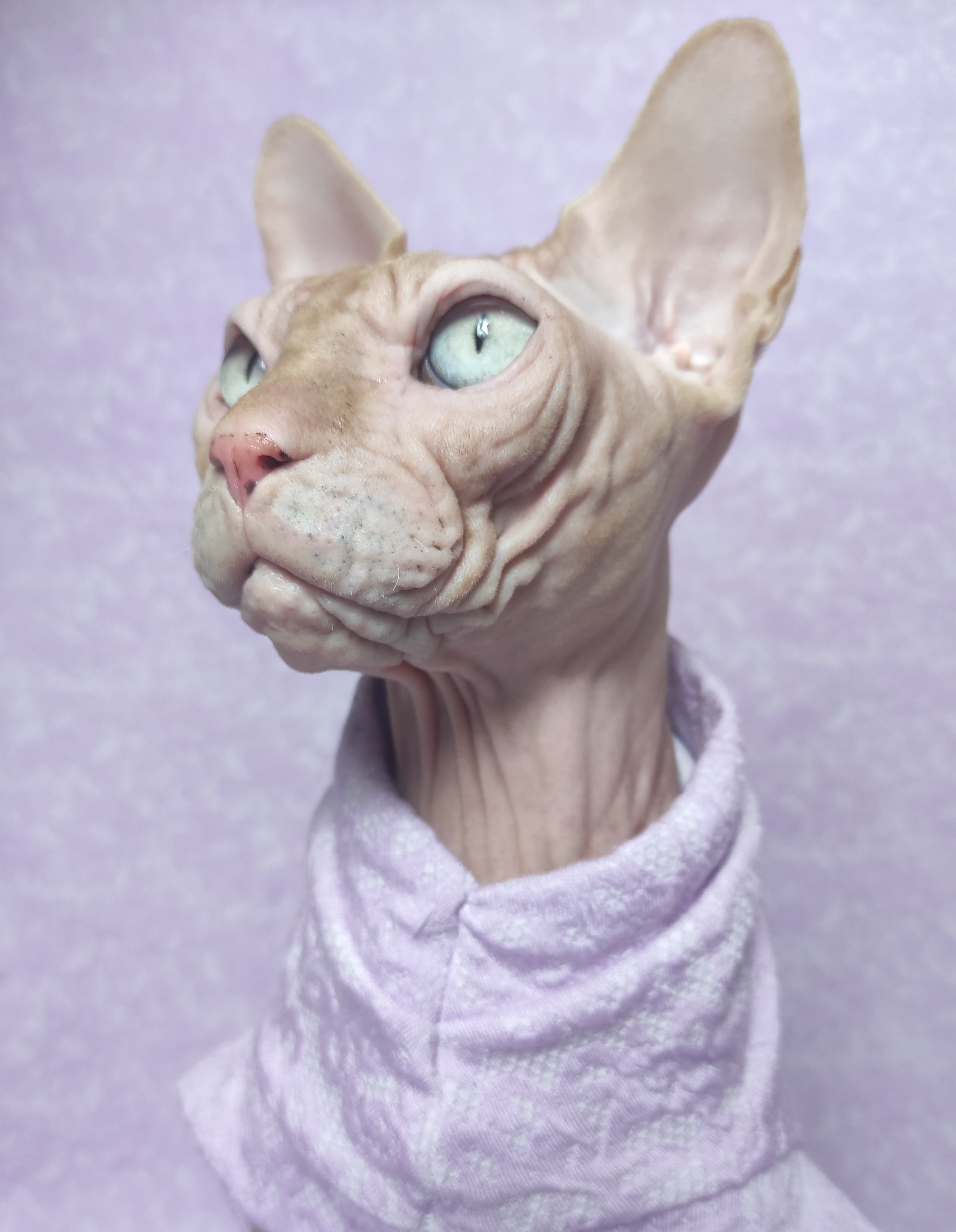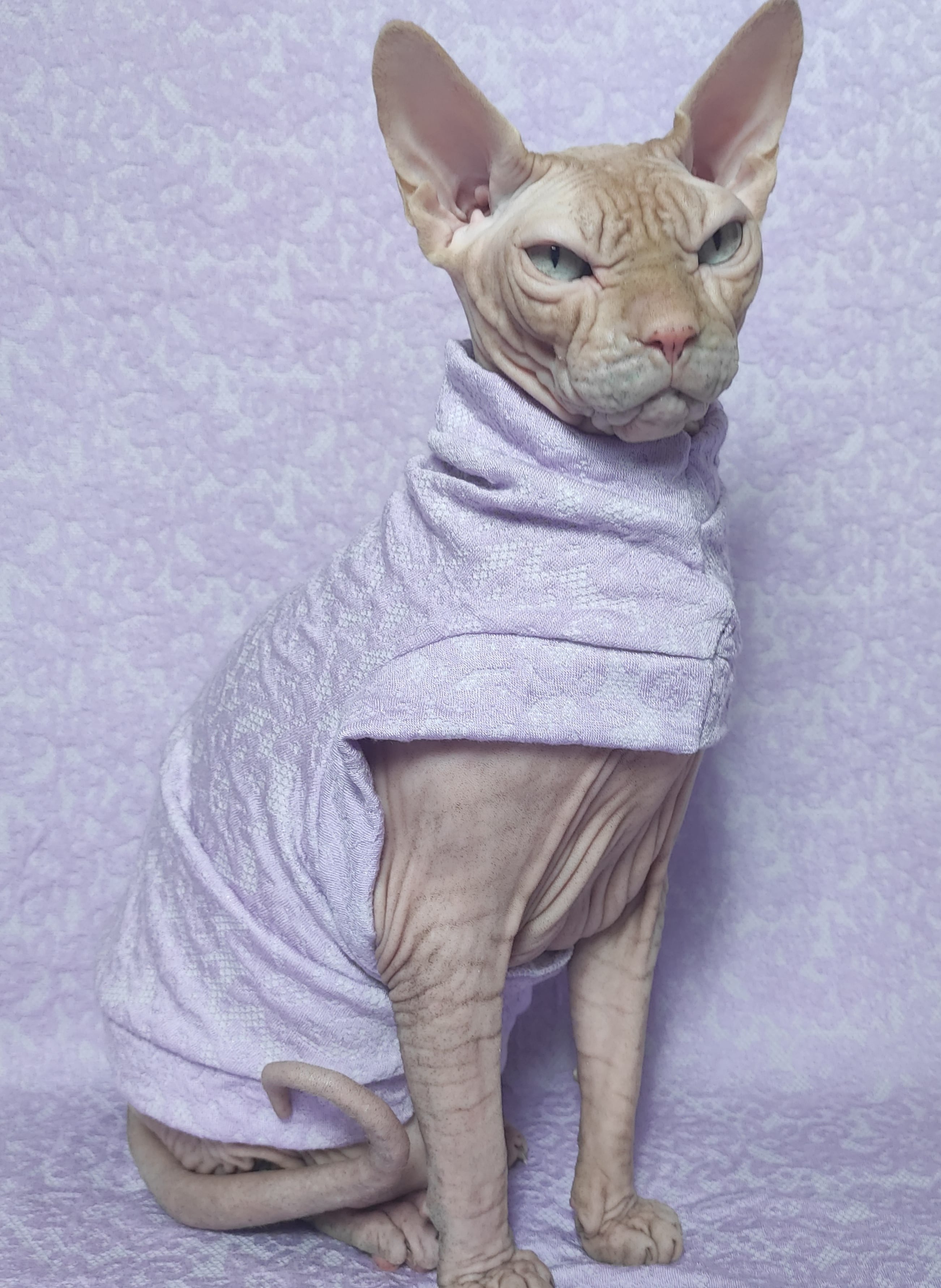REGULAR size is for most adult hairless cats age 1 to 18. BAMBINO size fits hairless kittens age 6 months to 1 year and smaller adult cats. ANKLE BITER size fits kittens 15 weeks to 6 month olds. LIL NIPPER size fits hairless kittens age 8 weeks to 15 week olds for when they are with the breeder or for the trip home. Custom orders are welcome for larger and smaller cats - pricing is the same - $27.50
